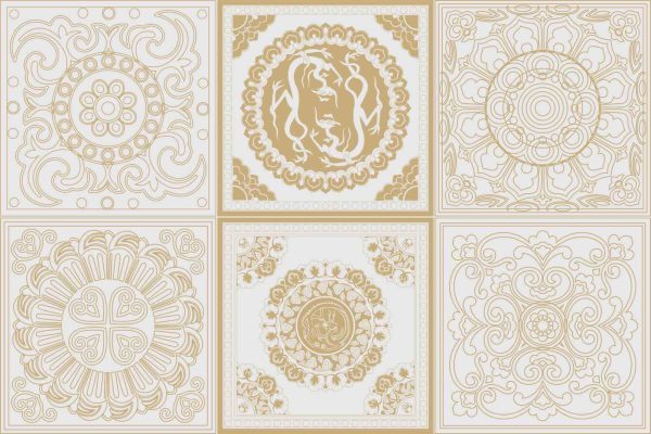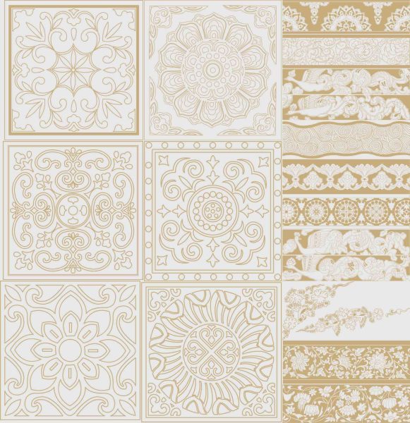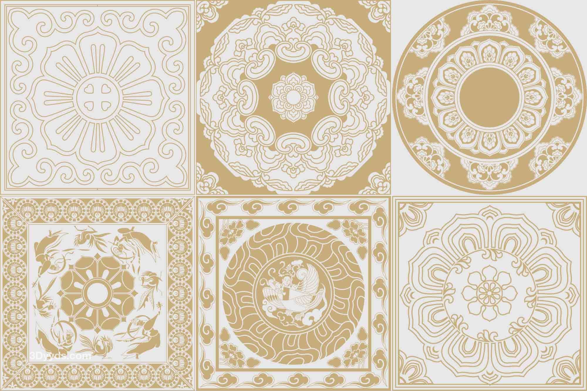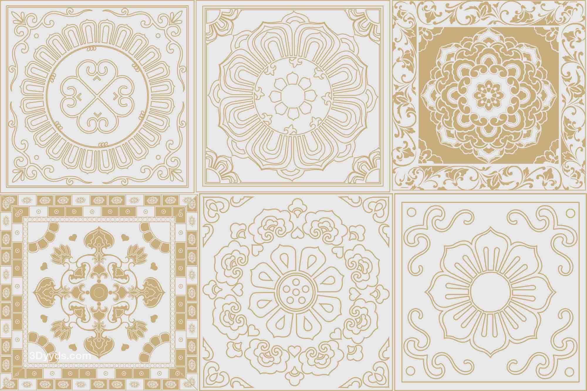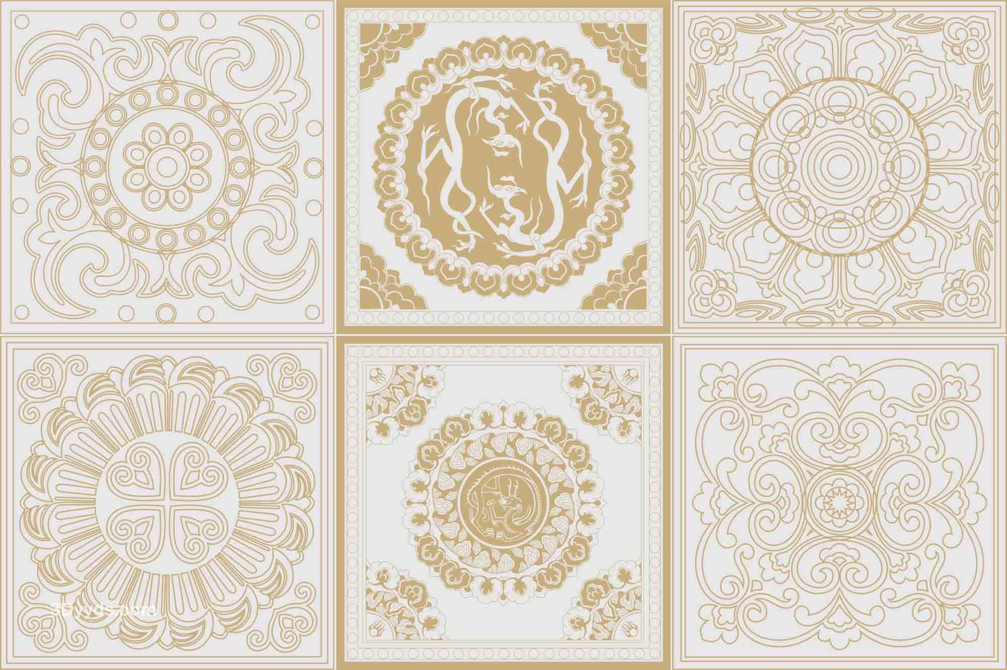 敦煌莫高窟藻井平棋图案纹样线描线稿花纹矢量图片png免抠图素材