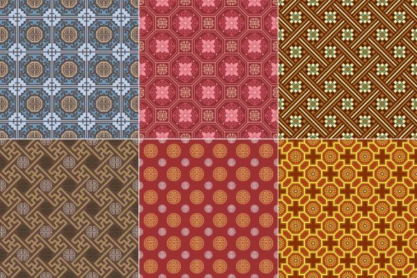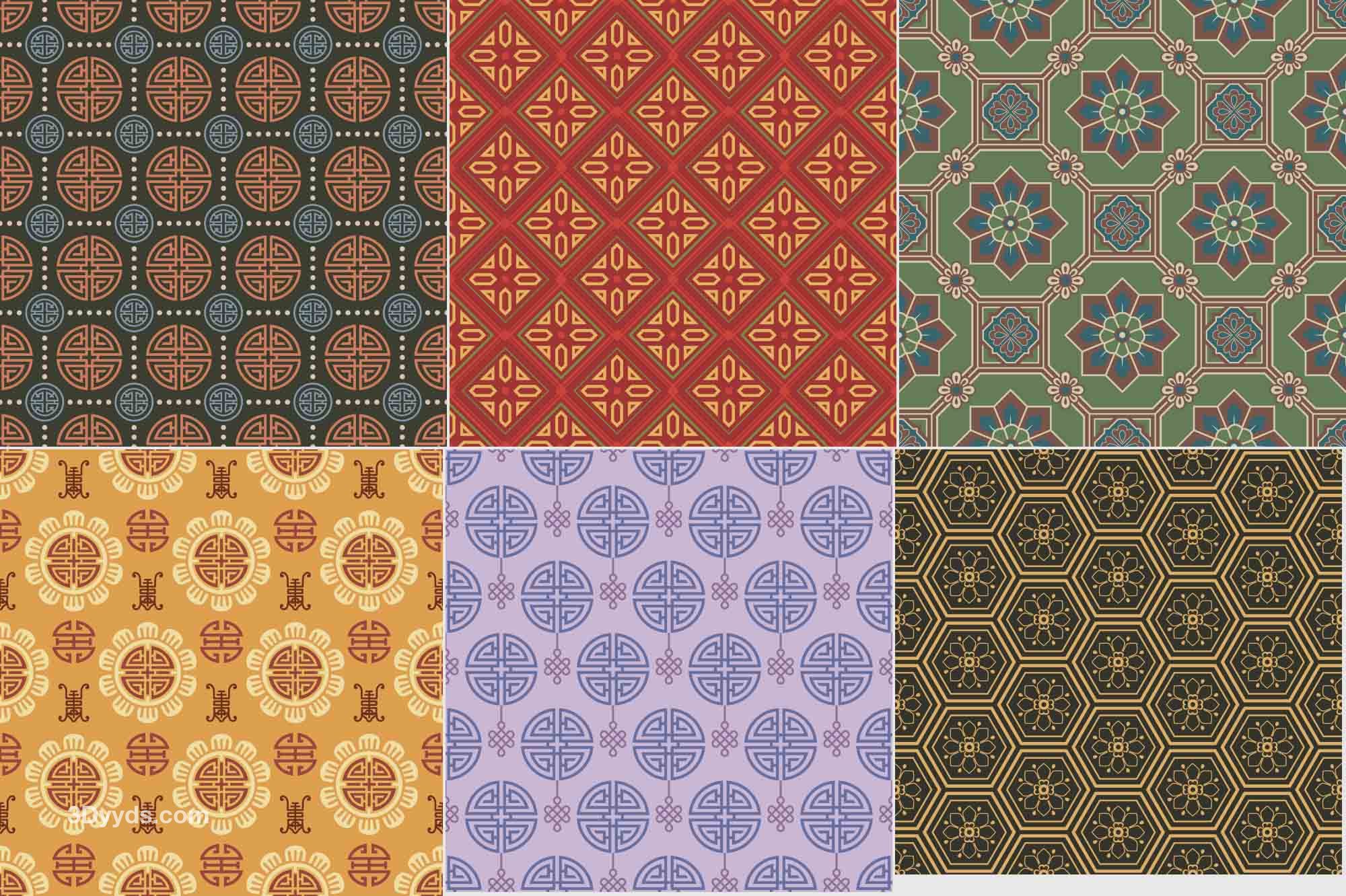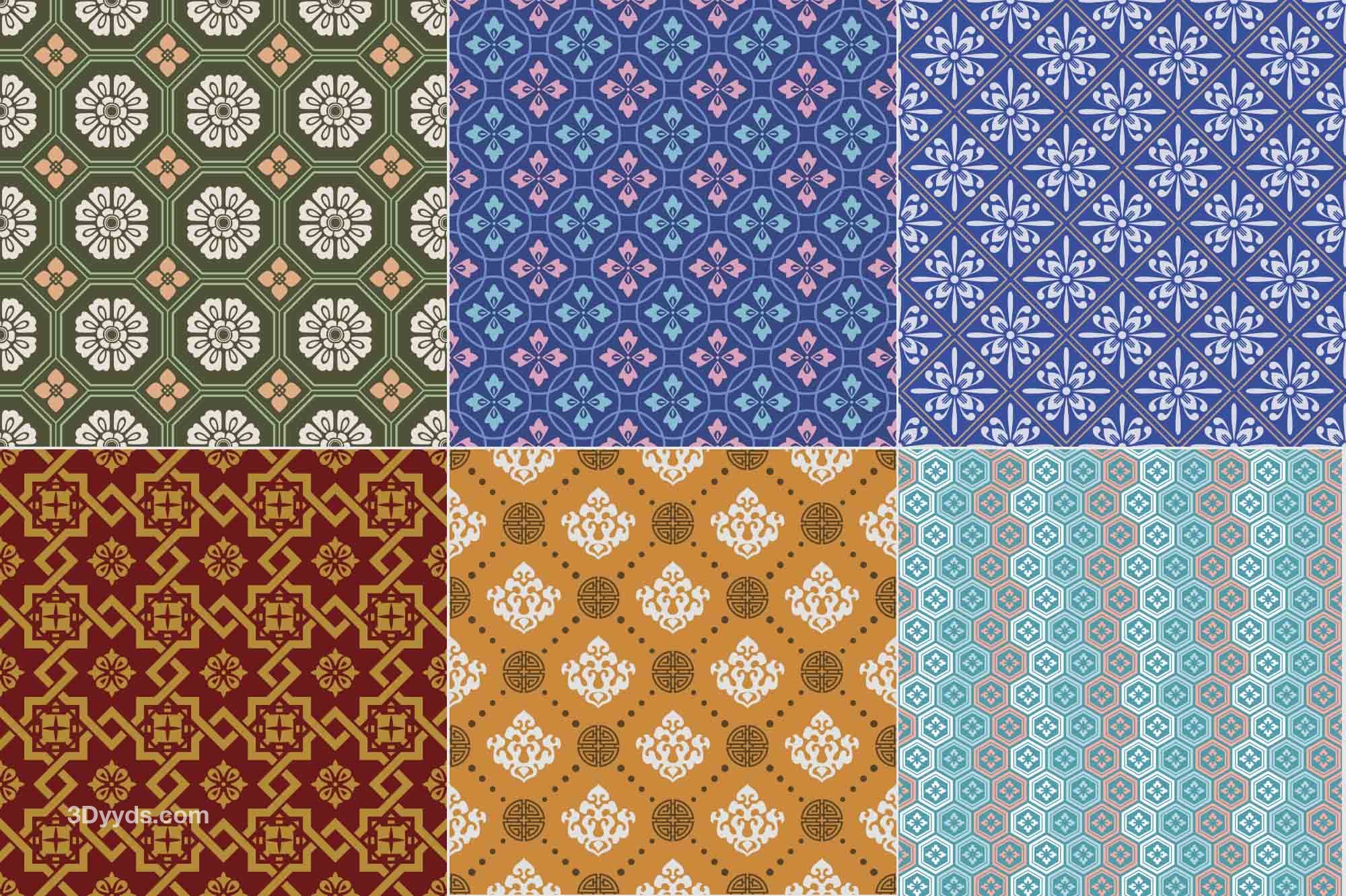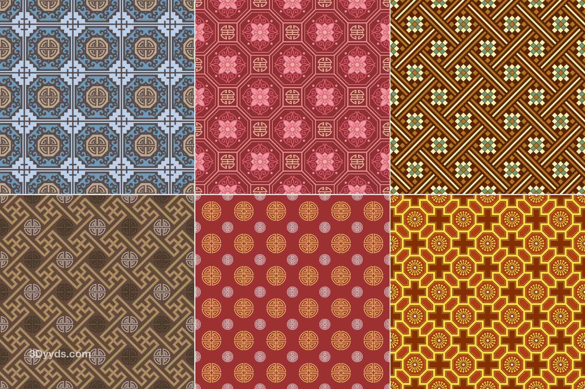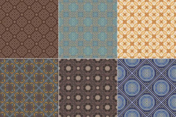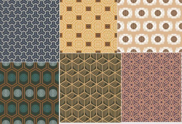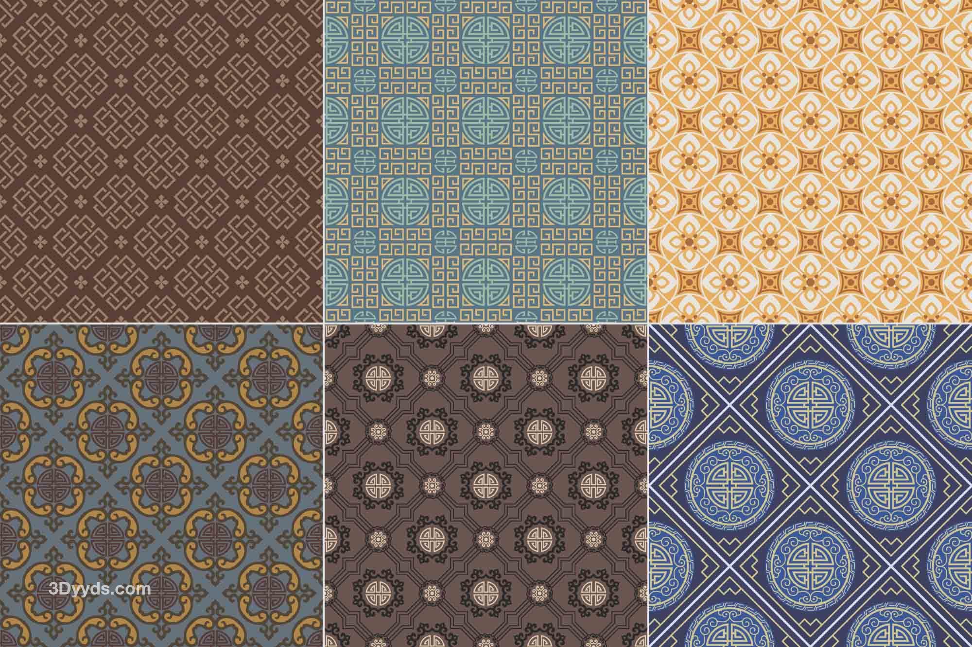 中式古朴古典花纹无缝拼接背景纹理底纹服装印花设计矢量AI素材