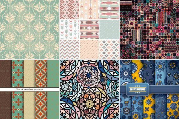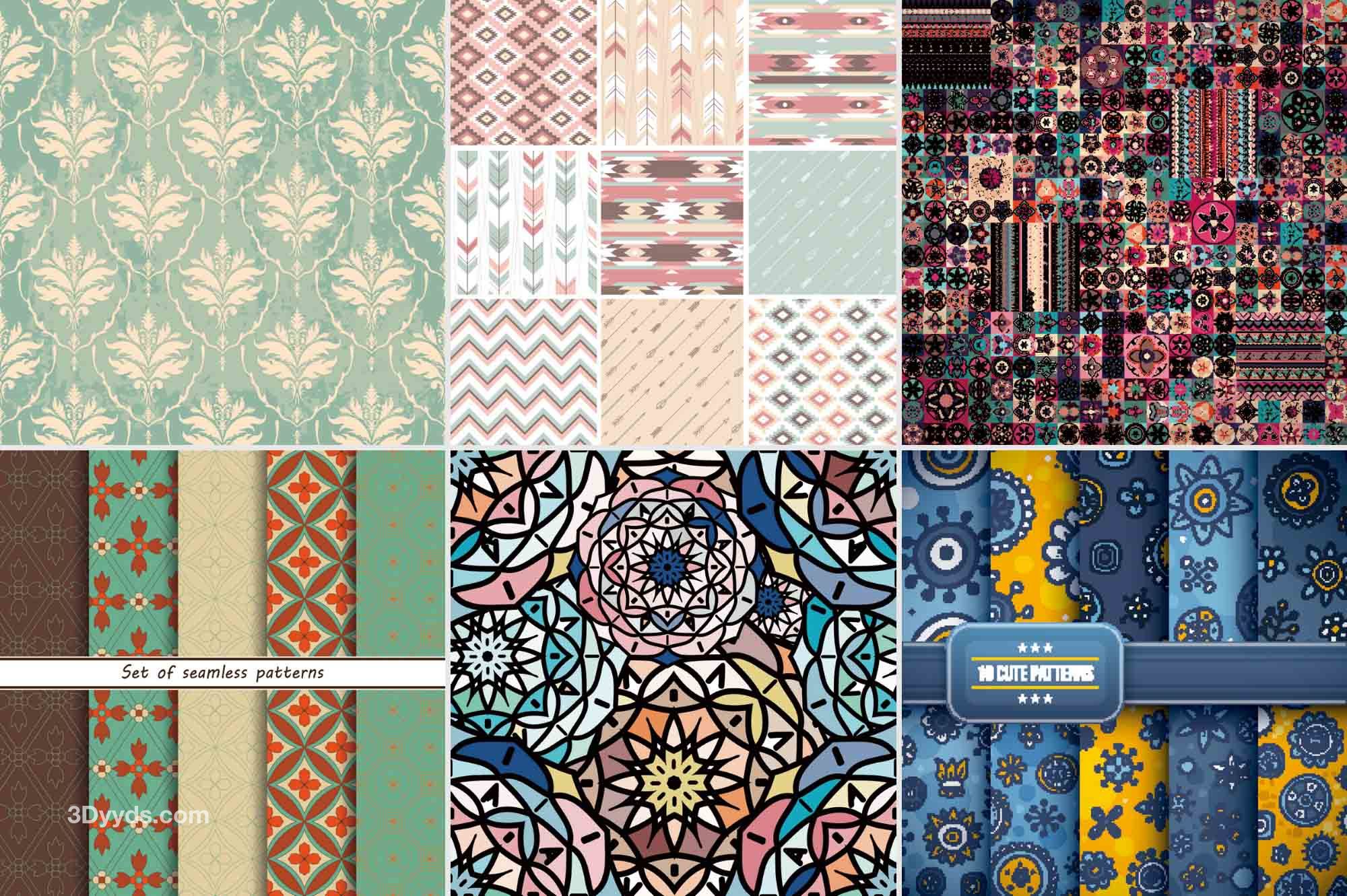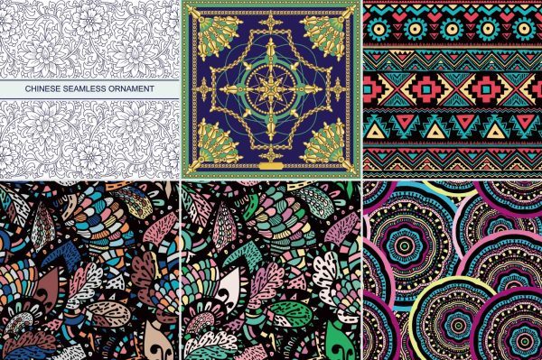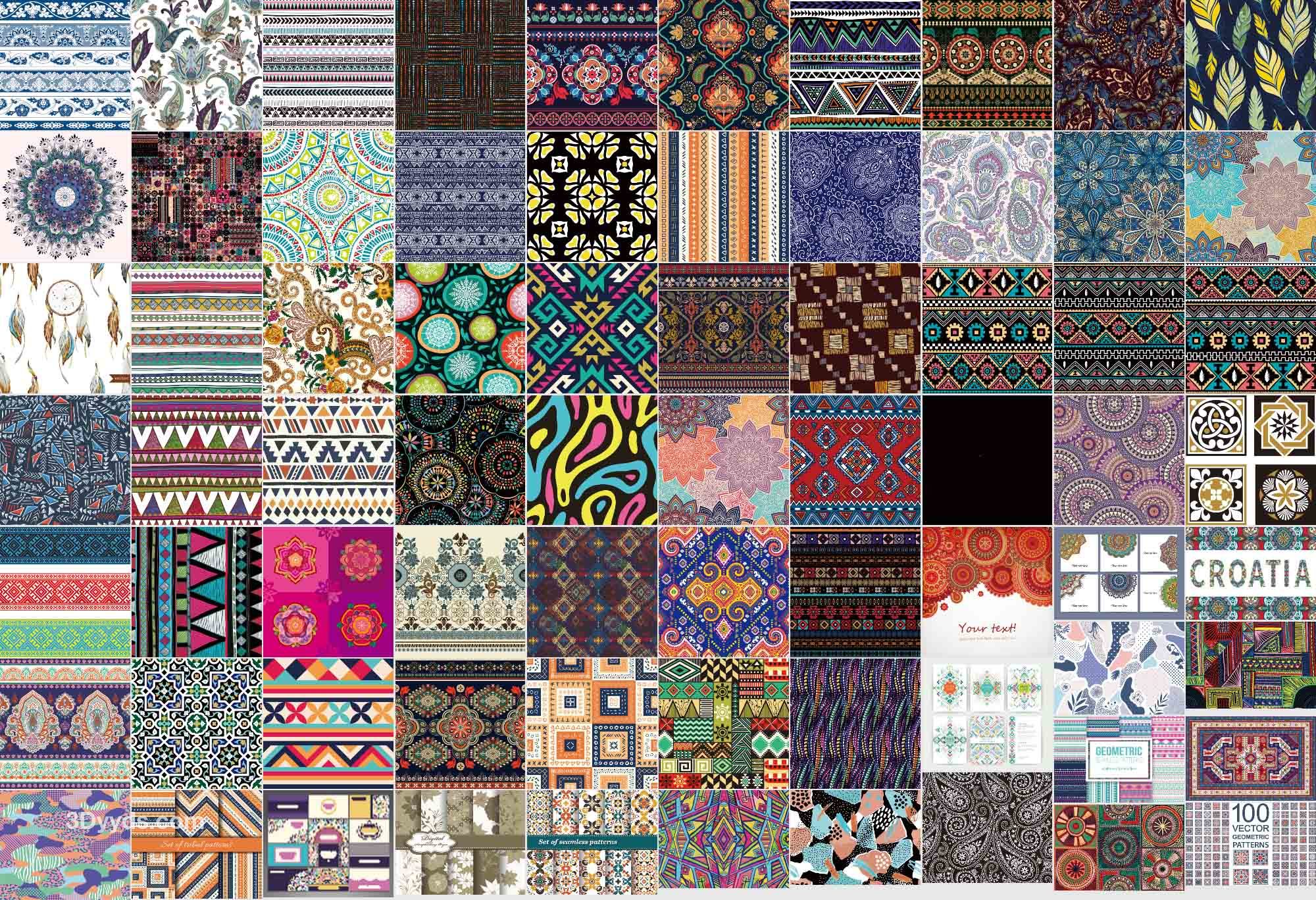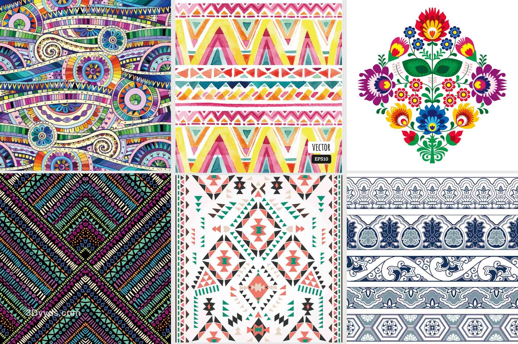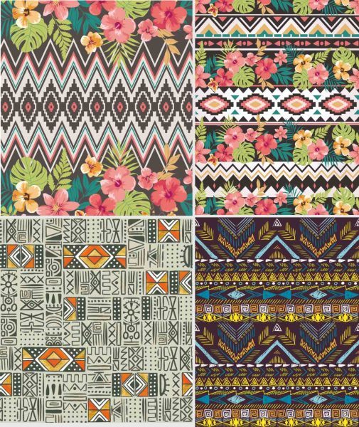 少数民族部落特色花纹波西米亚风格纹理无缝背景图案设计矢量素材