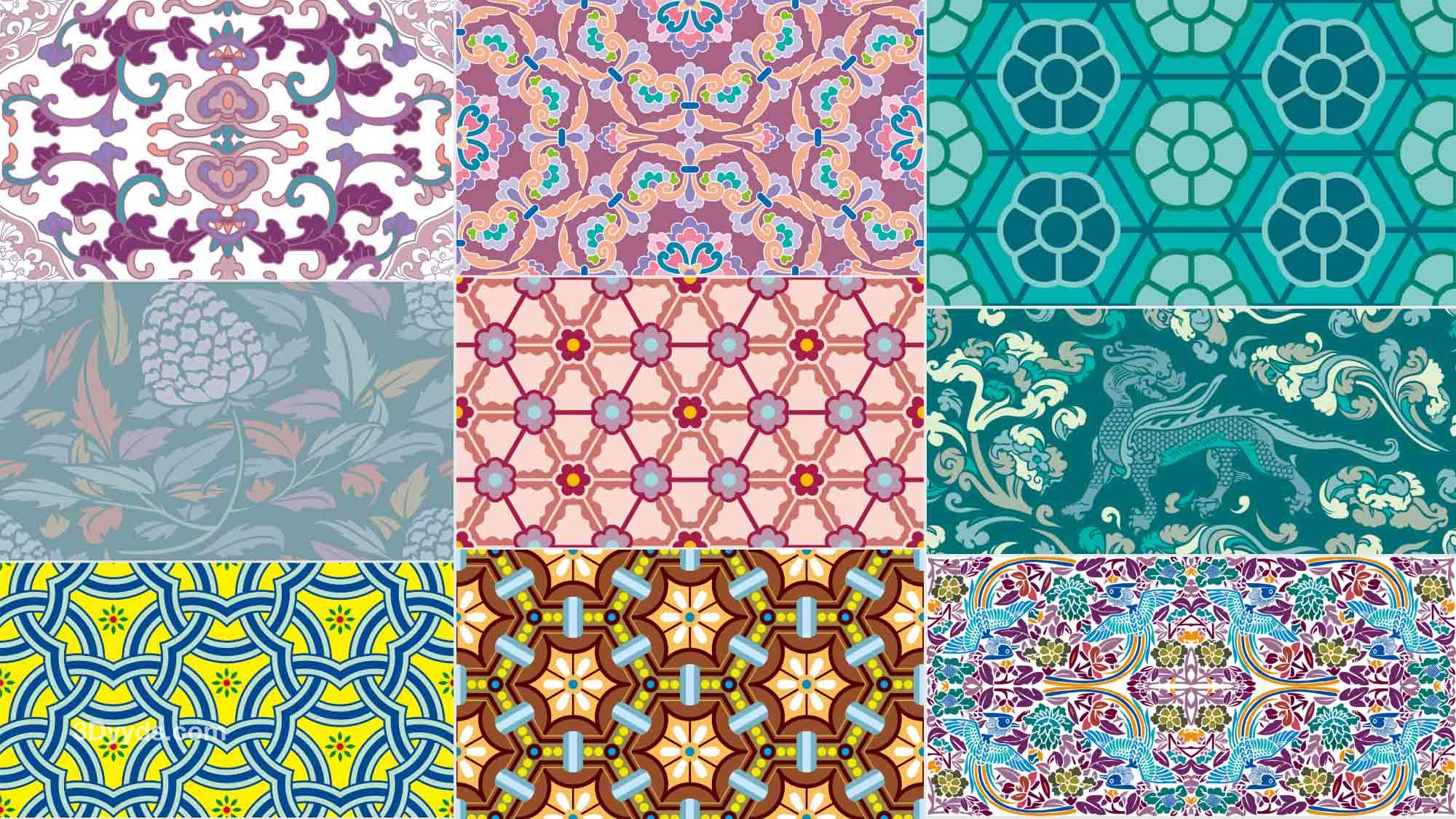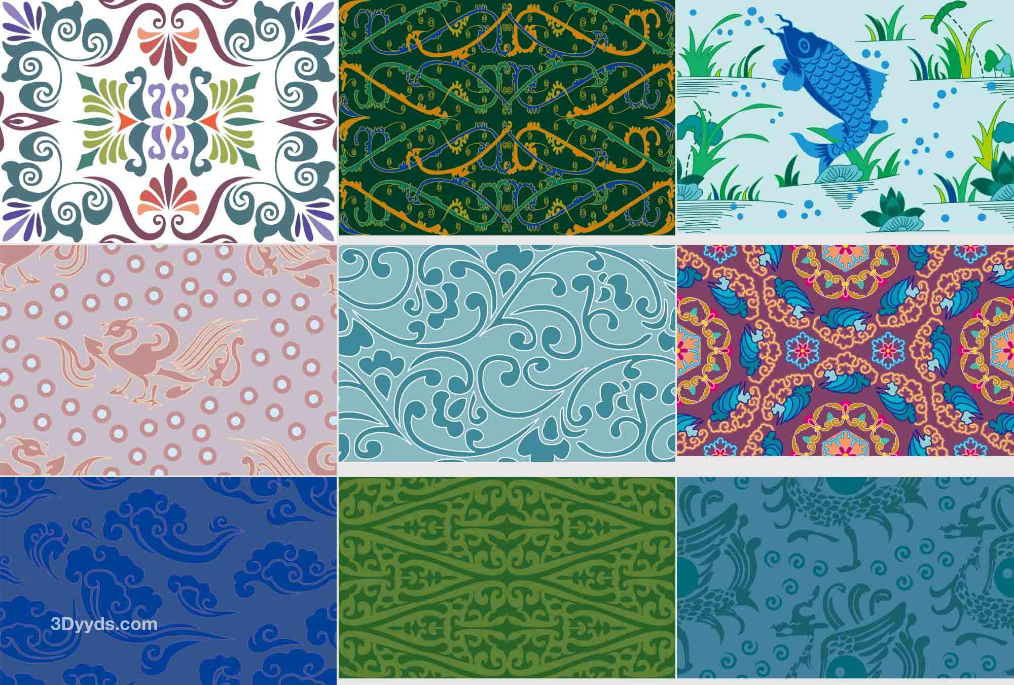 中国风古典中式民间民族复古传统无缝花纹背景包装底纹AI矢量素材
