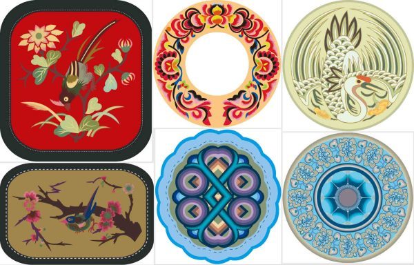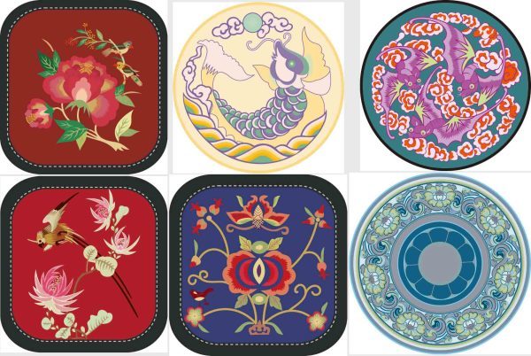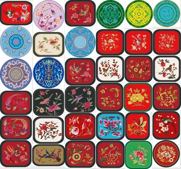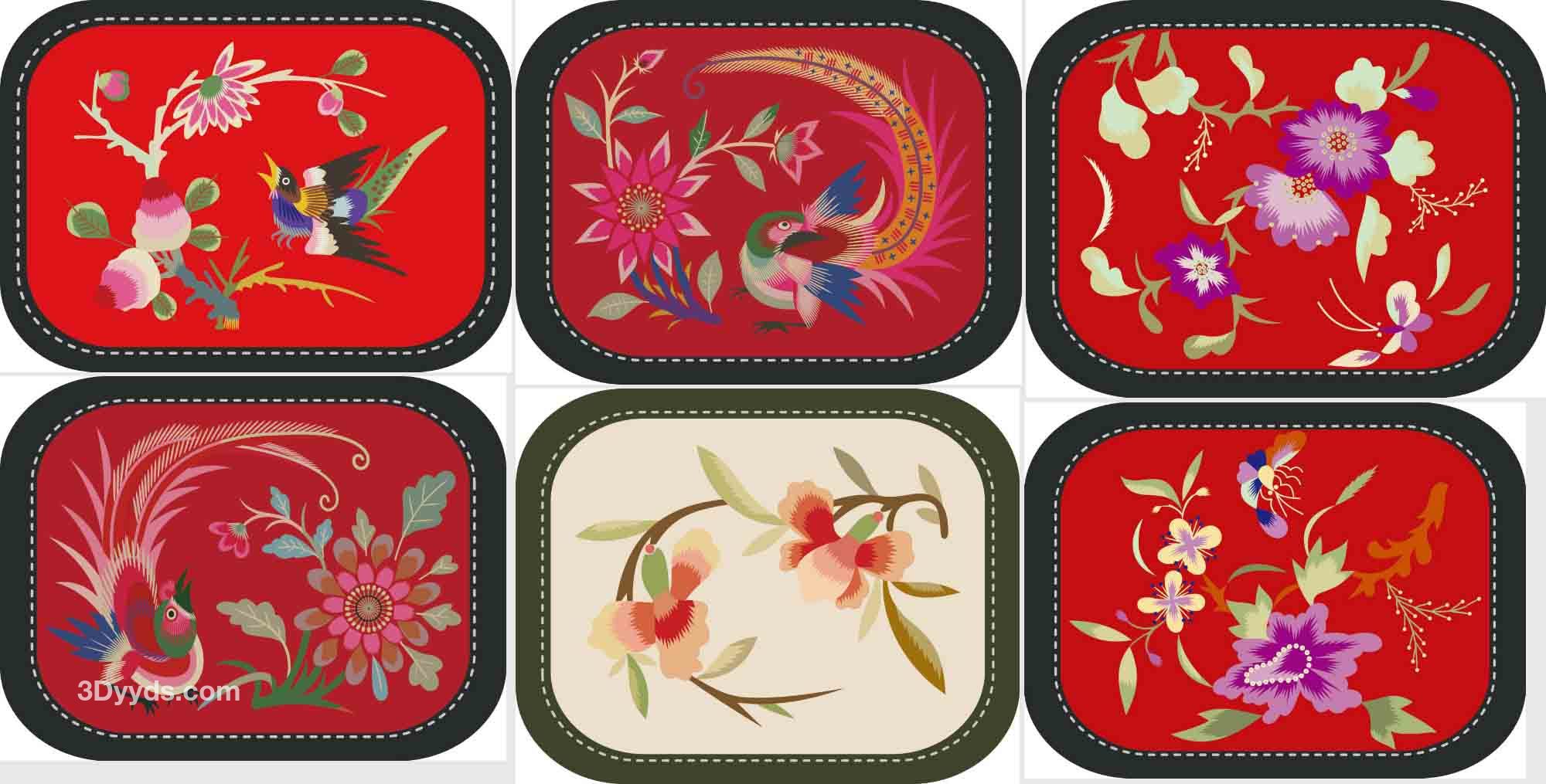 中式古典传统民间戏曲服装饰刺绣花鸟图案古典纹样AI矢量设计素材