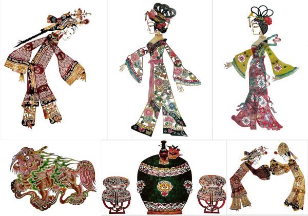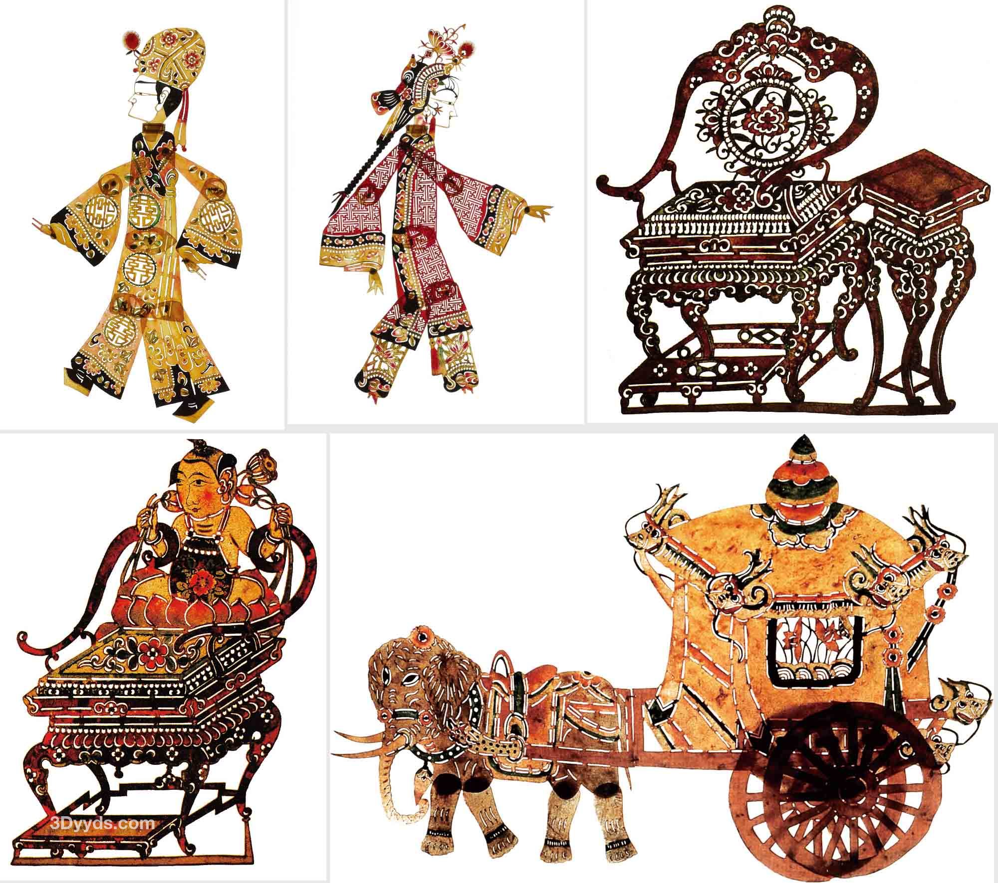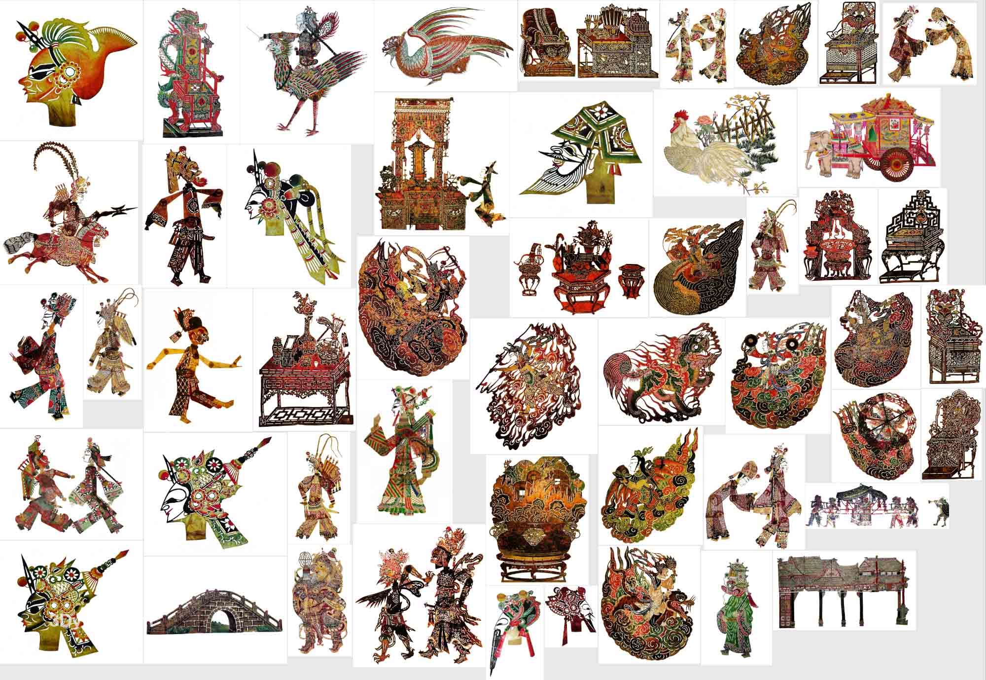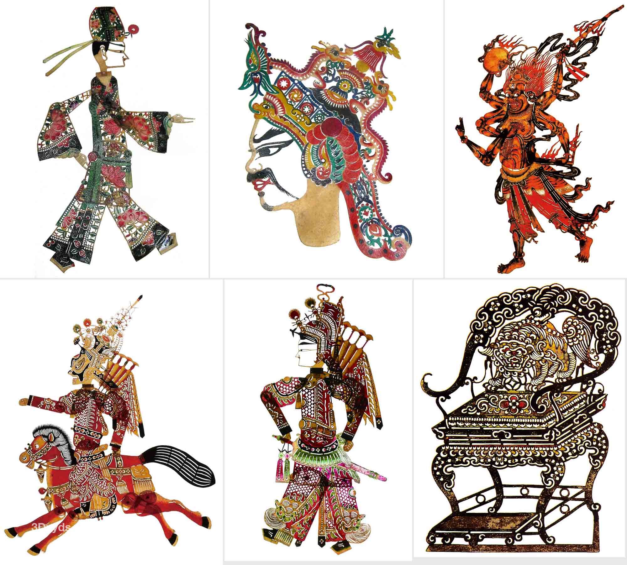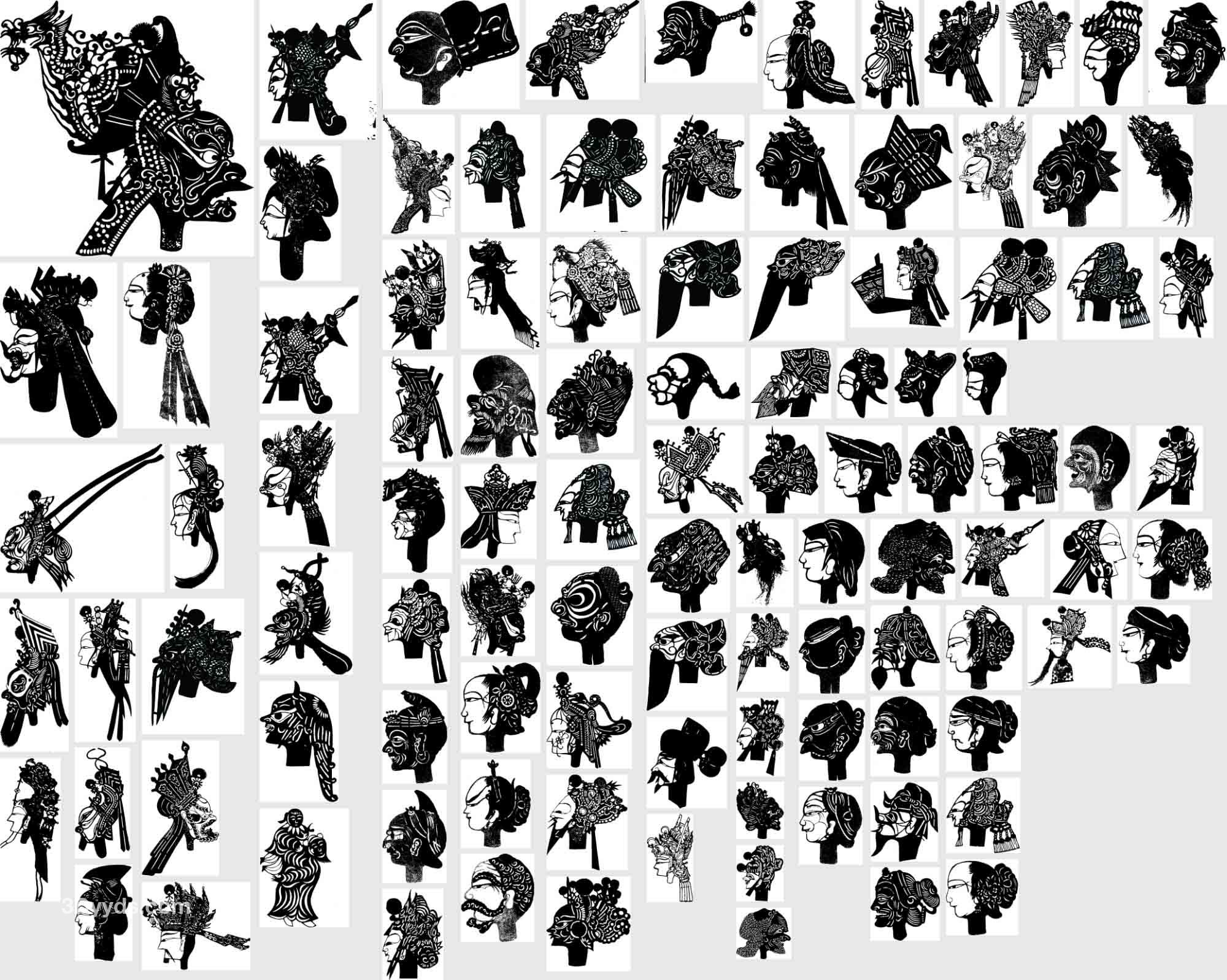 中国古代民间皮影戏传统艺术灯影戏影子戏戏剧人物图案设计素材图