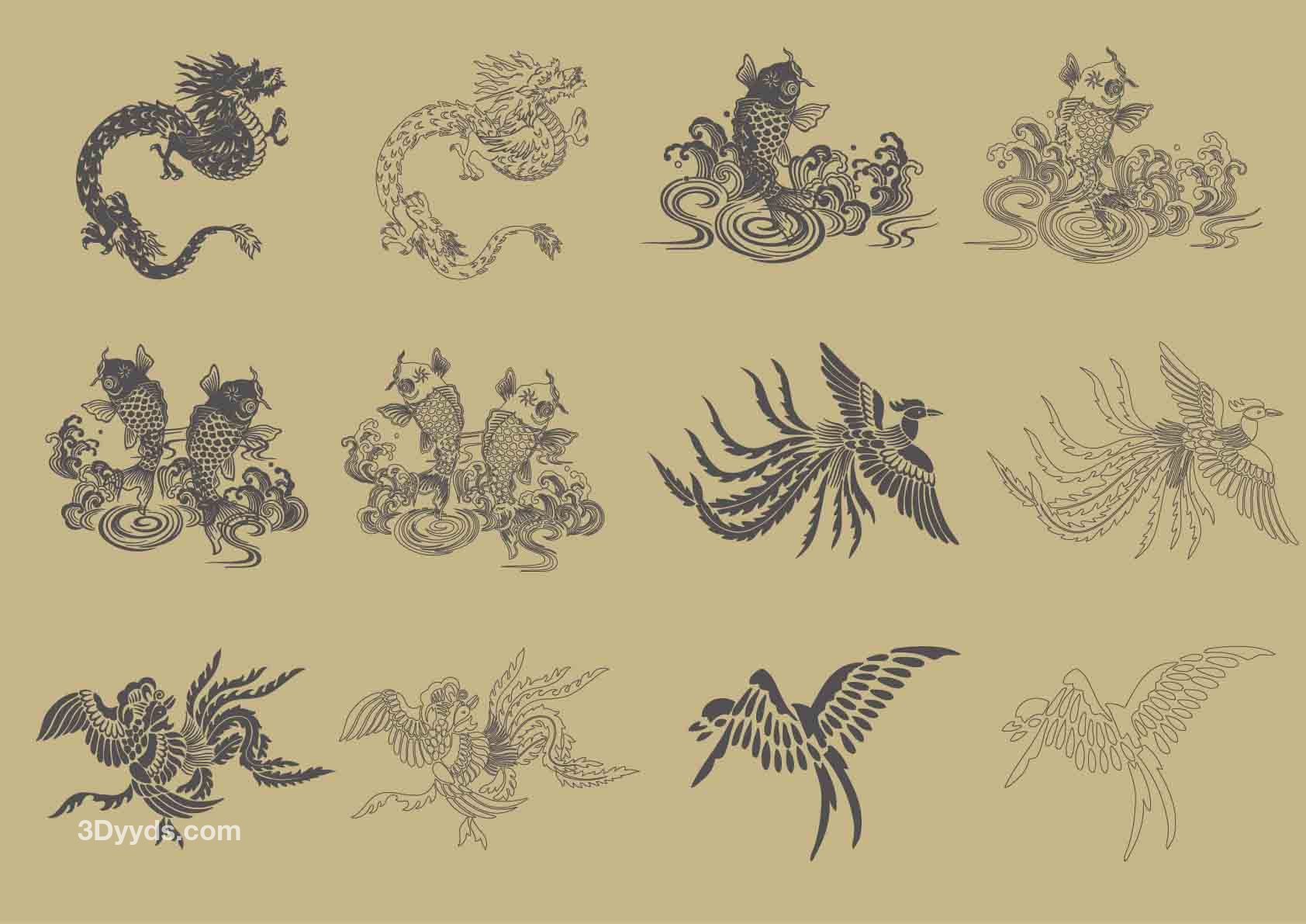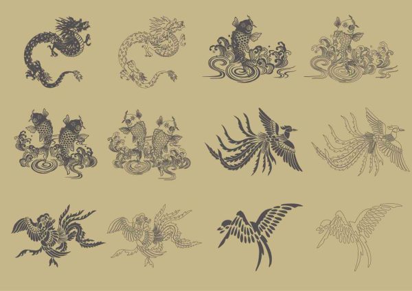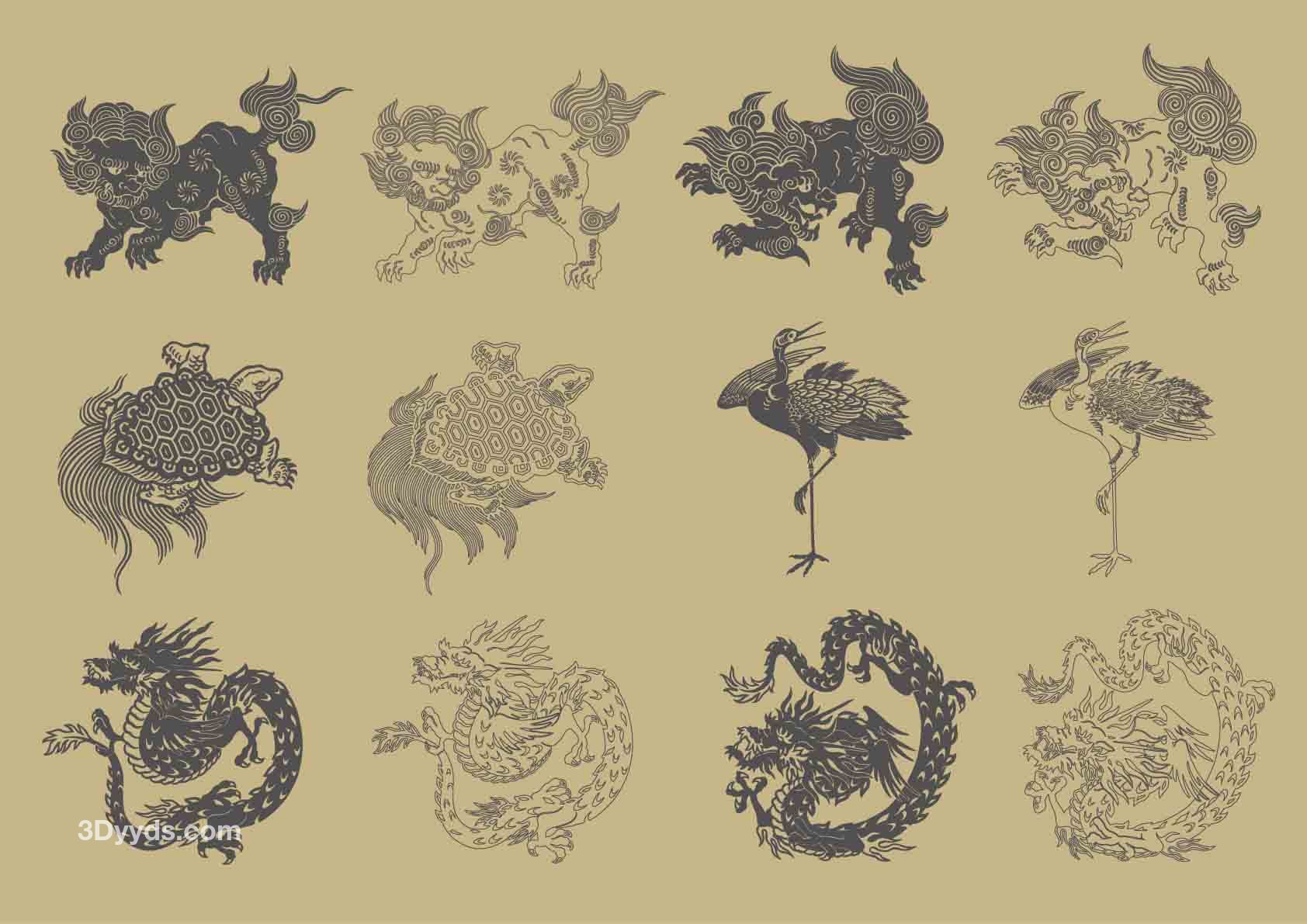 山海经神兽图案中式传统古典麒麟朱雀玄武纹样AI矢量设计素材PNG