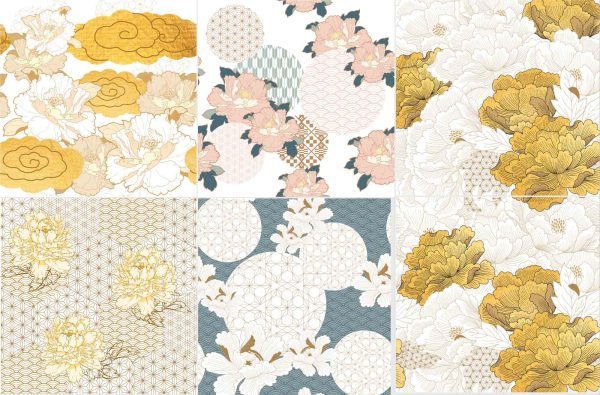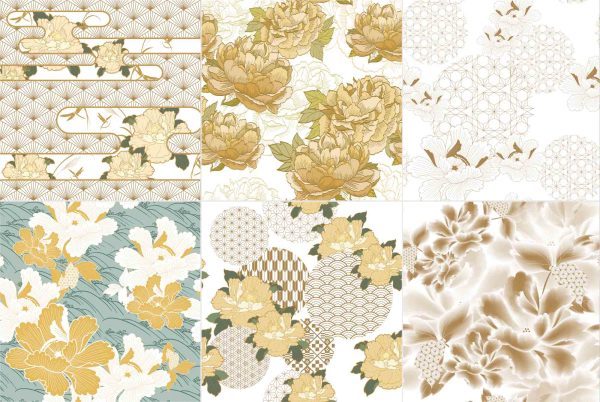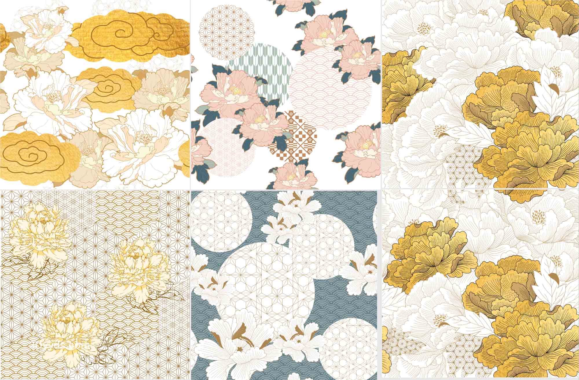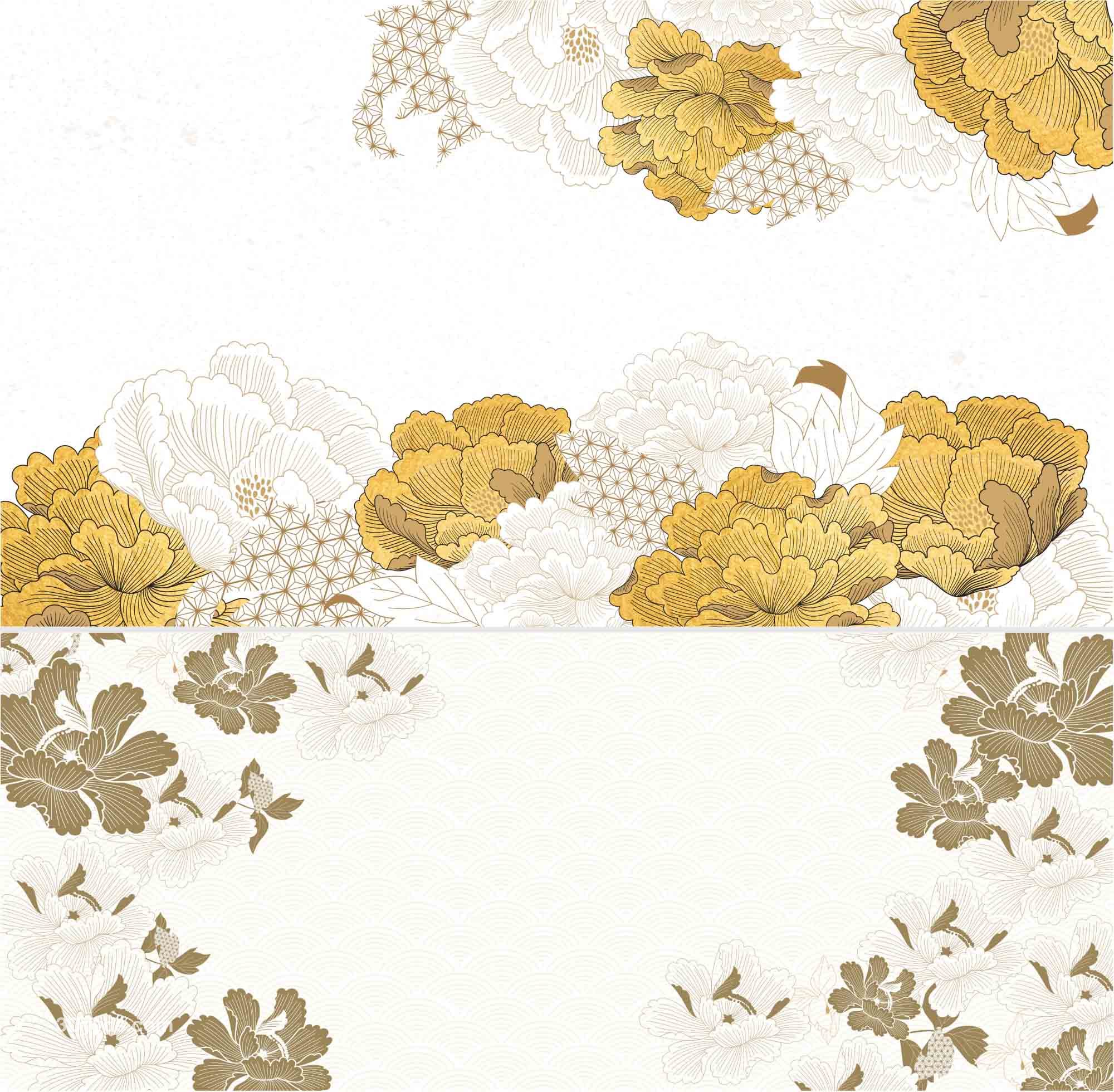 传统古典复古手绘植物牡丹花卉印花纹理背景包装图案矢量素材