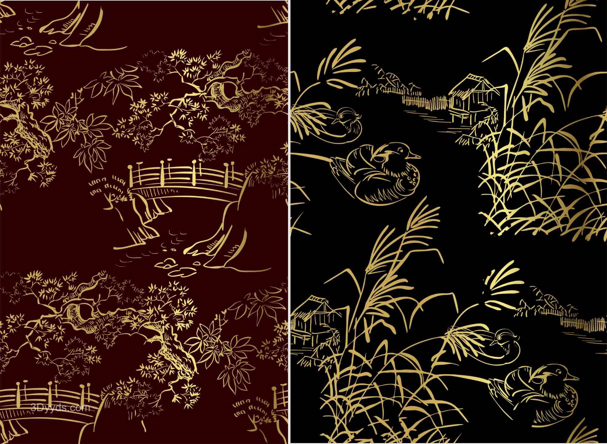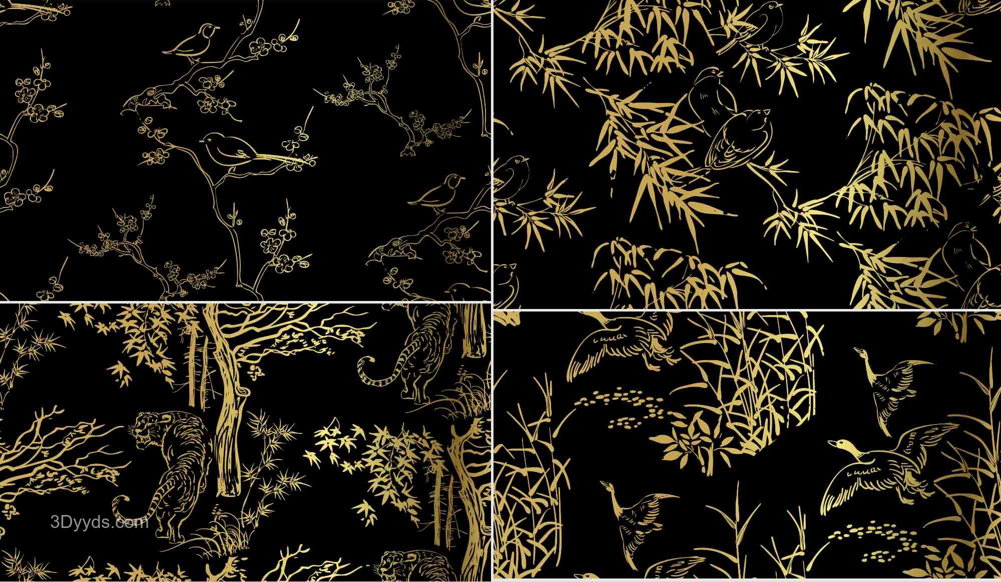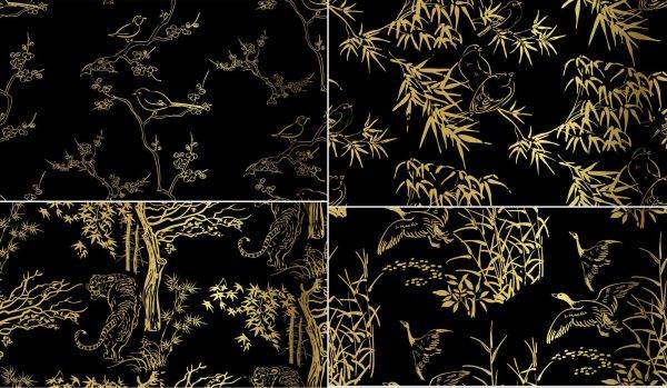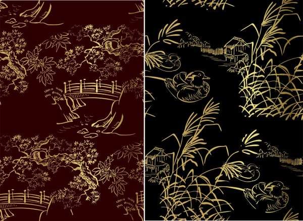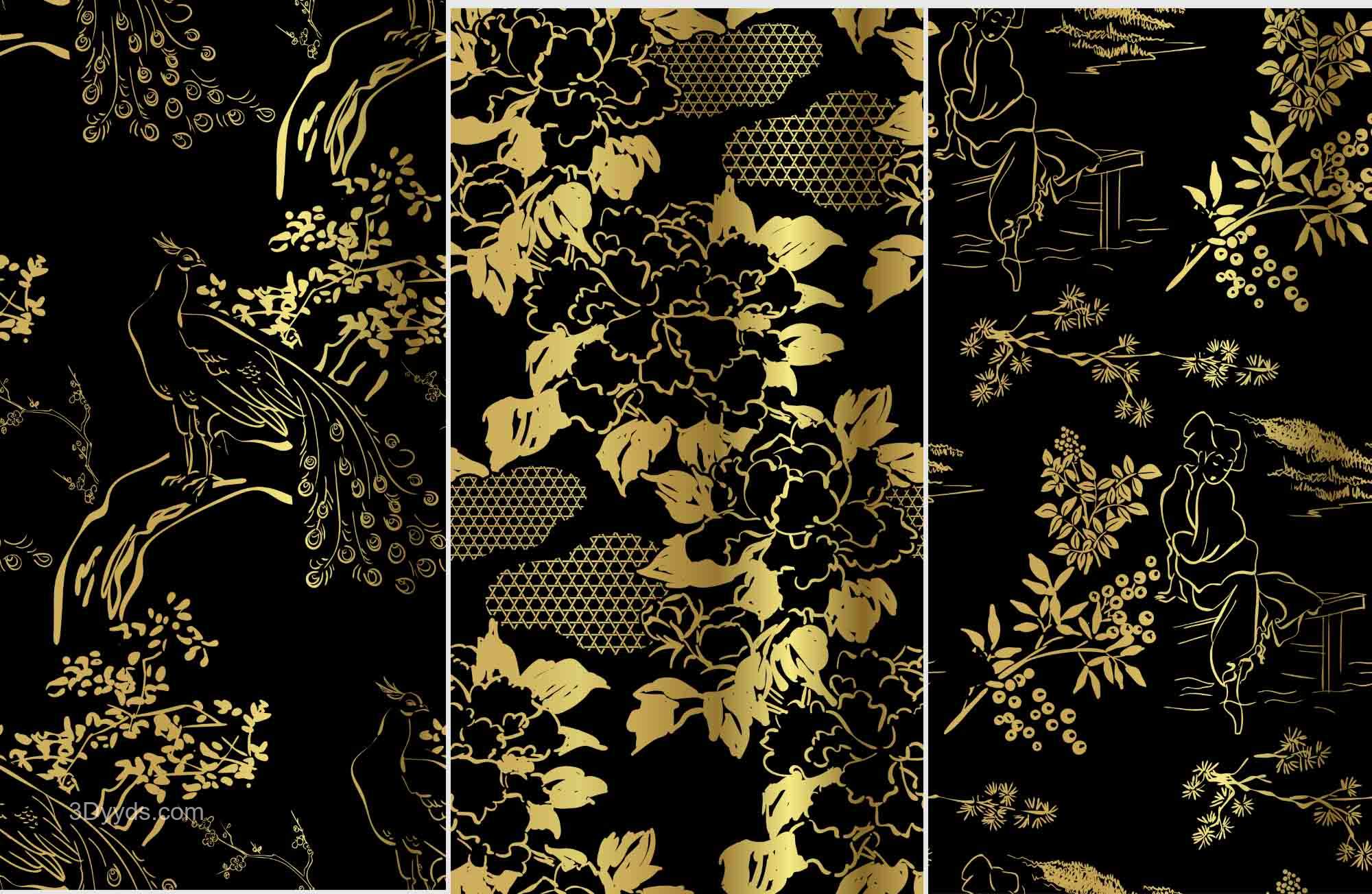 矢量AI手绘传统烫金无缝古典复古植物线描背景包装纹理底纹素材