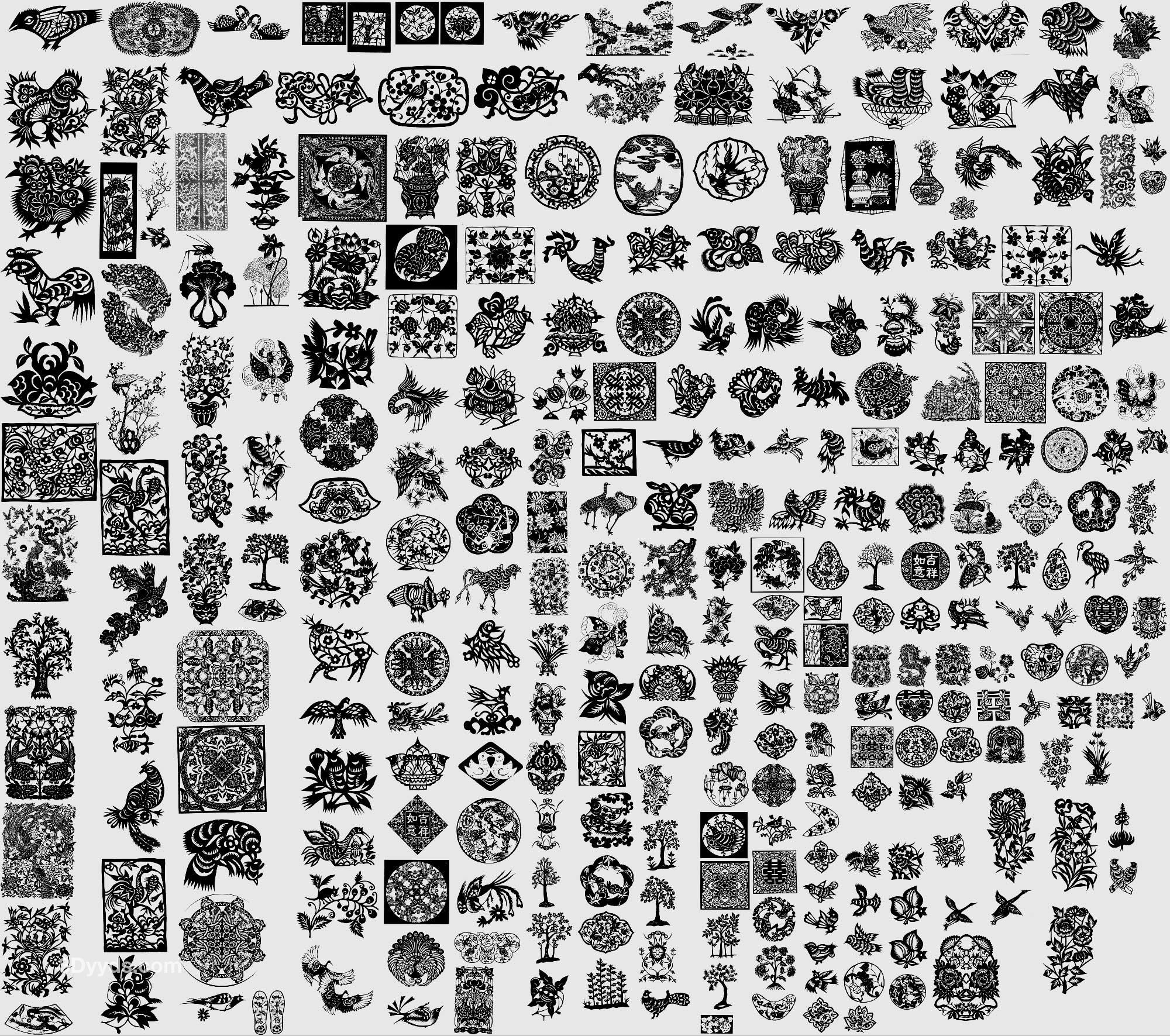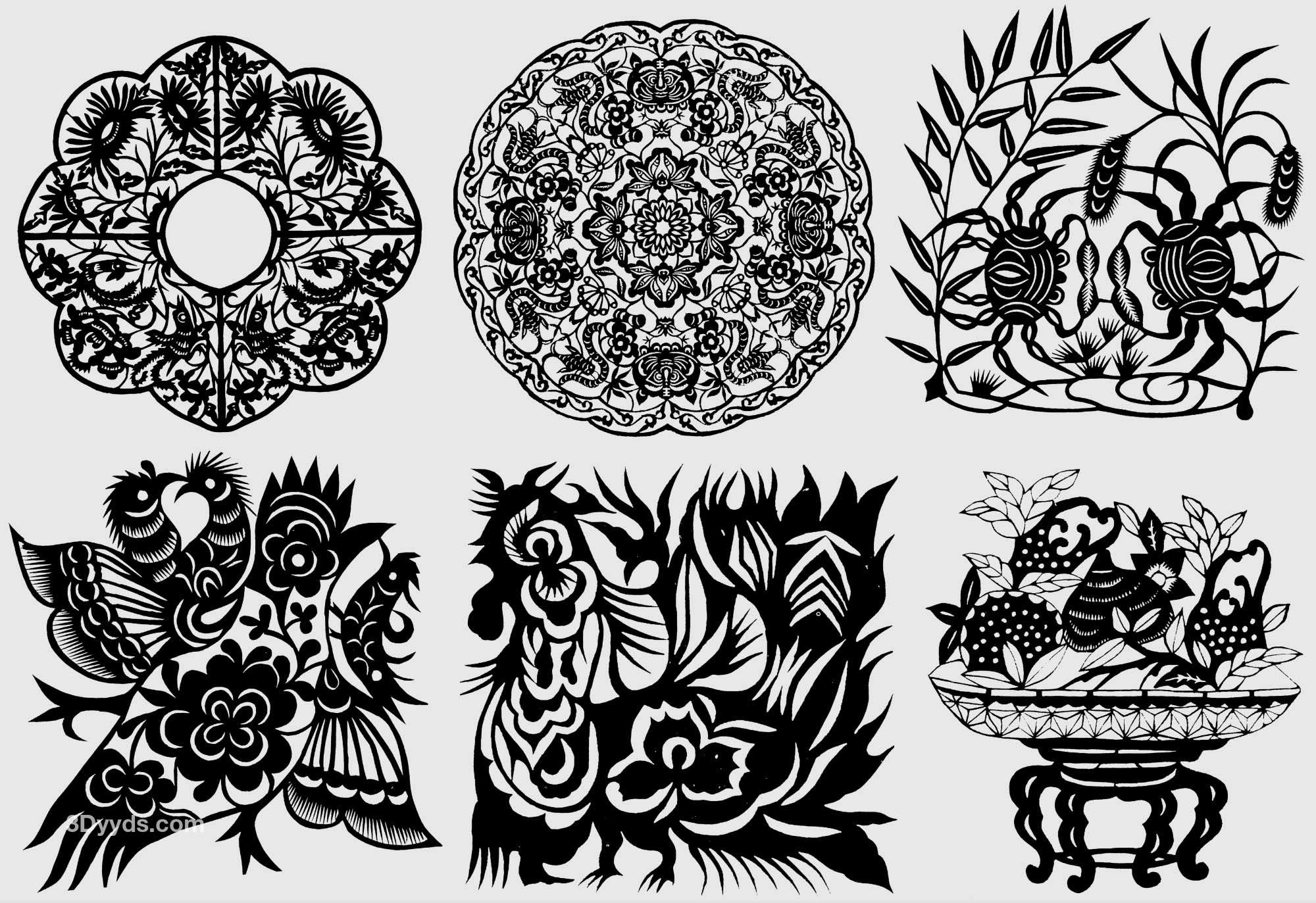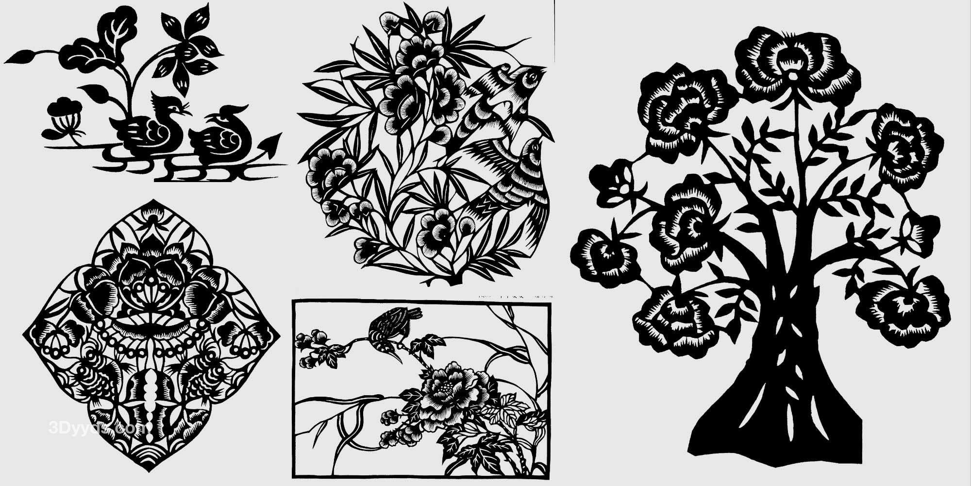 中式传统花鸟花草盆景盆栽植物剪纸窗花纹样矢量素材png免抠图案