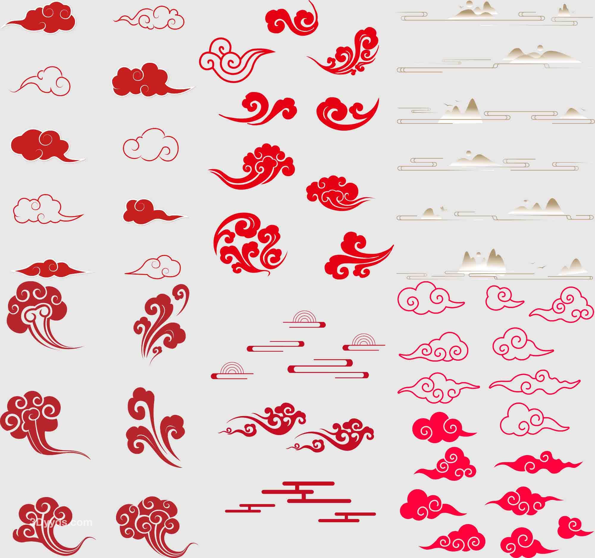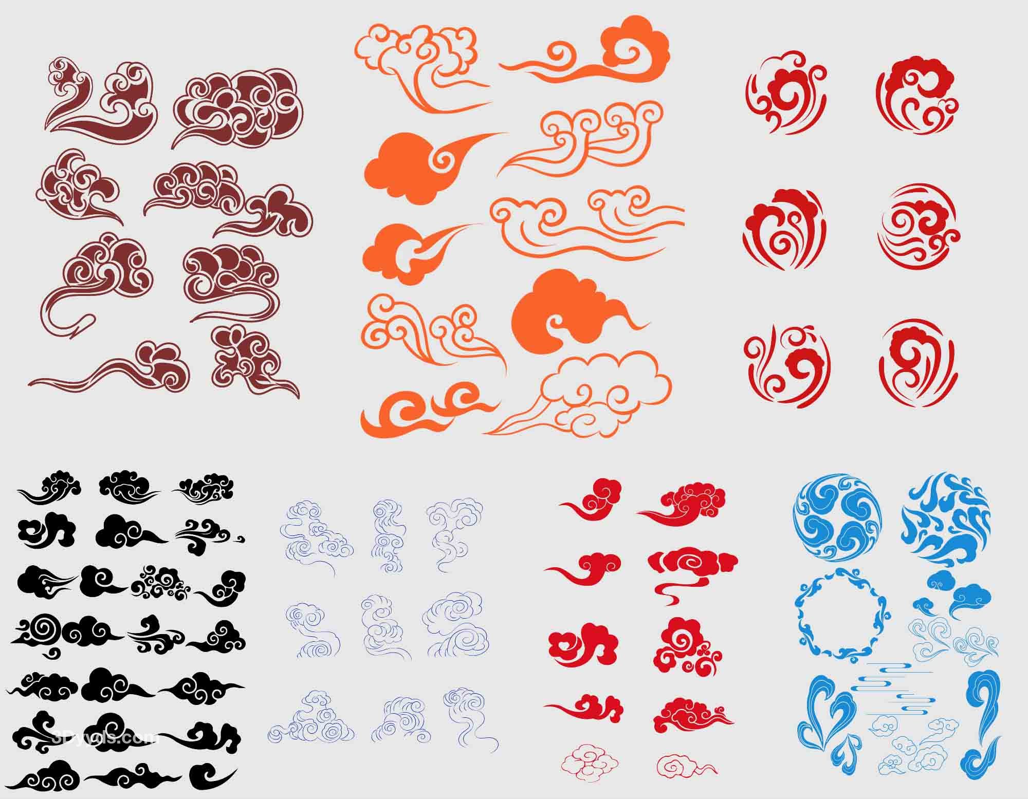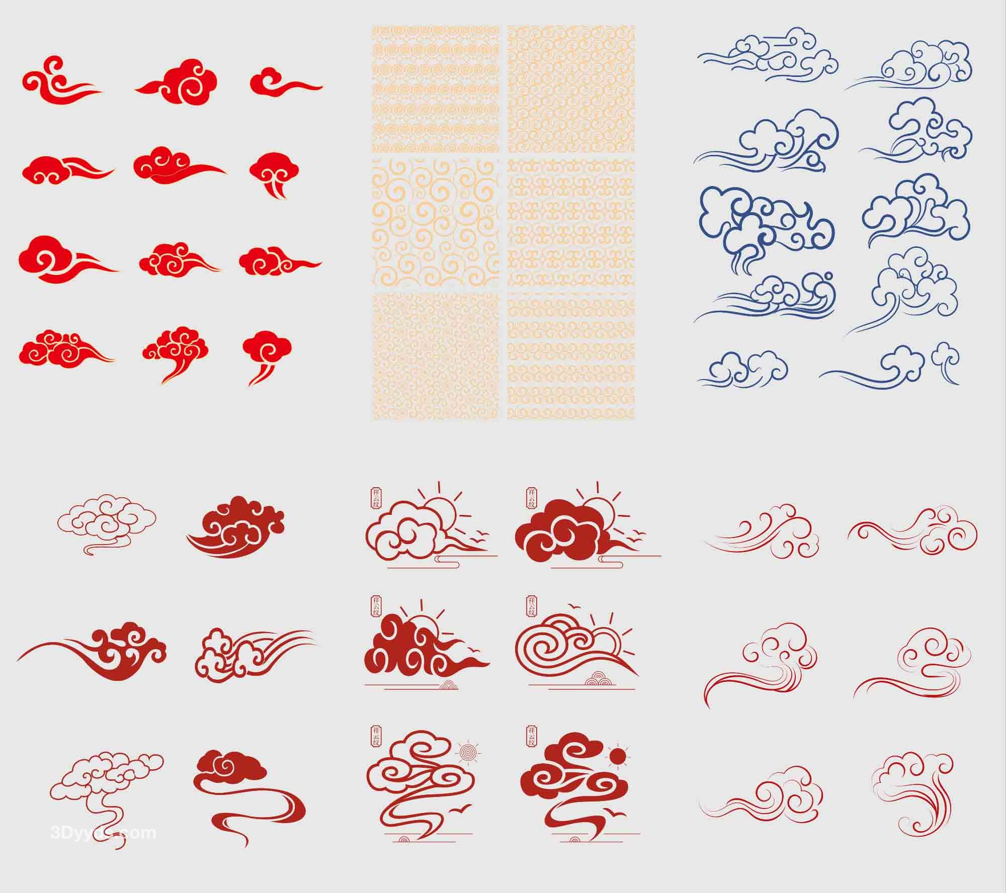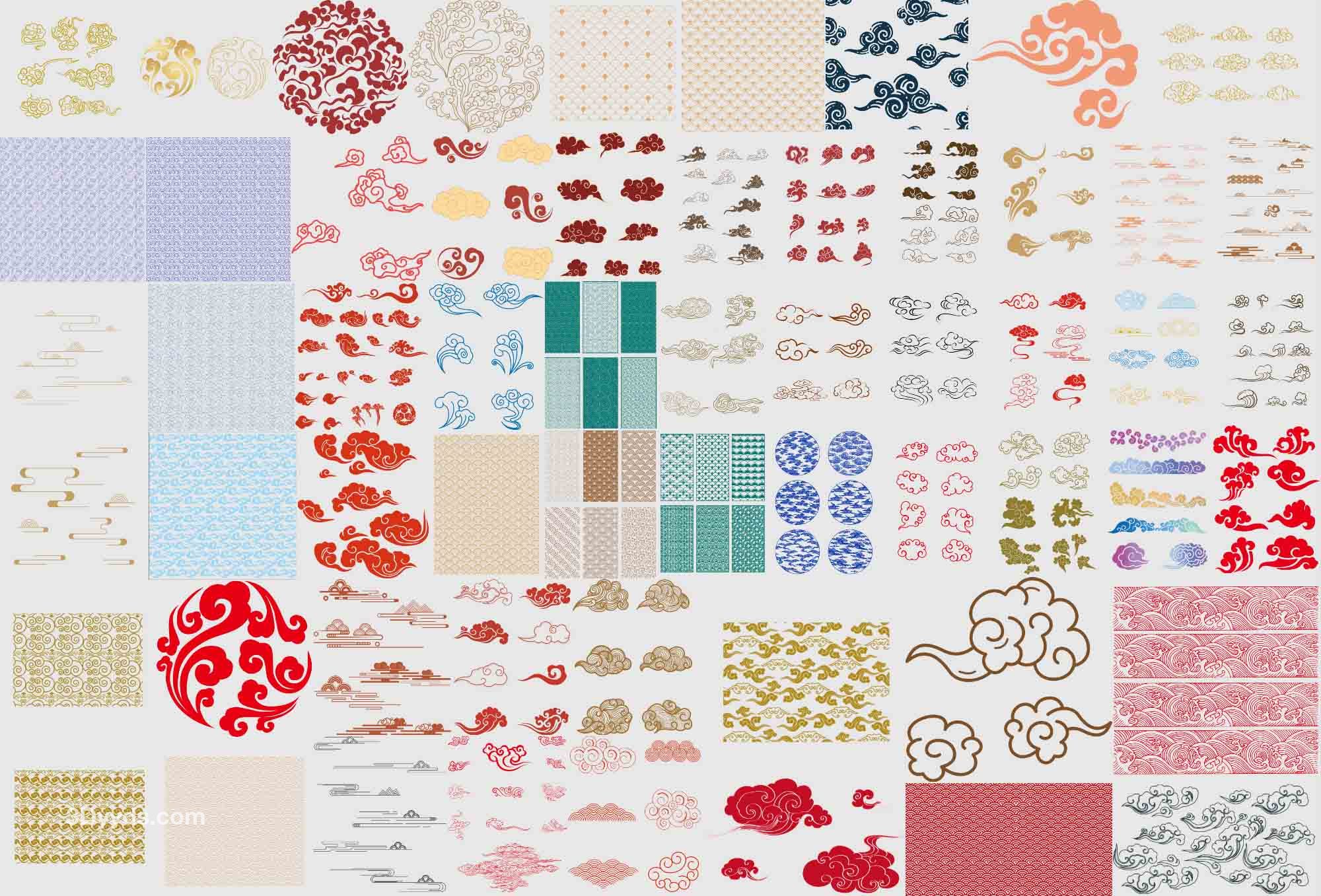 中国风古典式线条祥云纹底纹图案纹理装饰背景素材AI元素PNG免扣