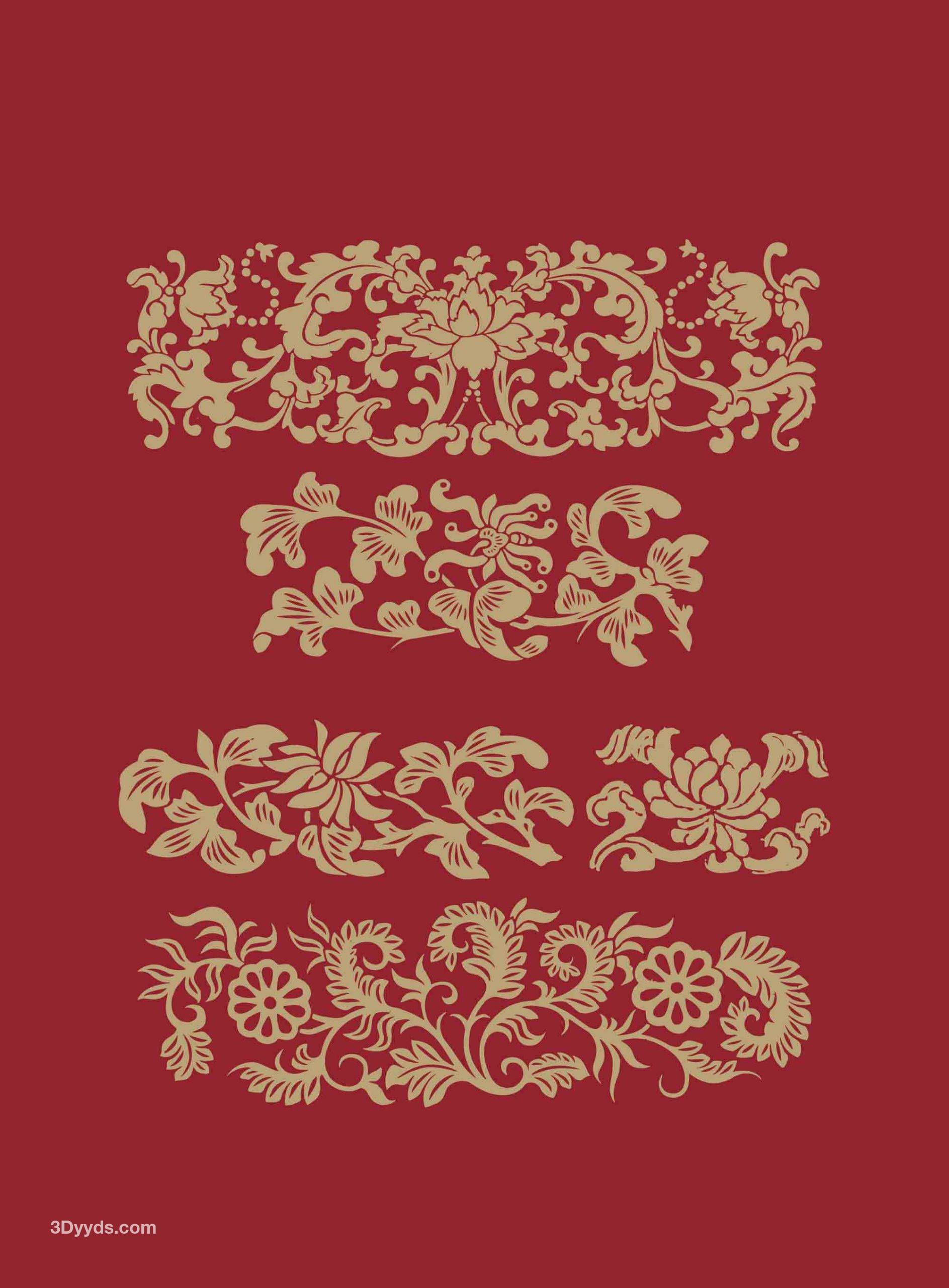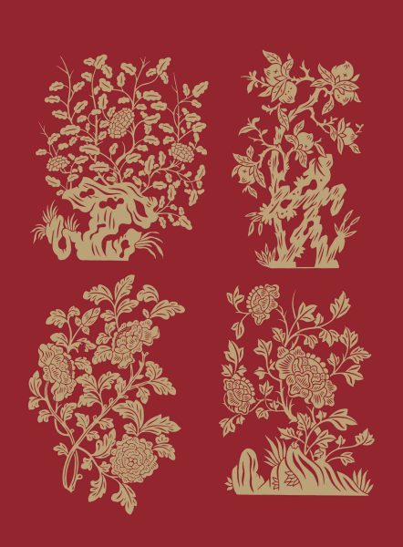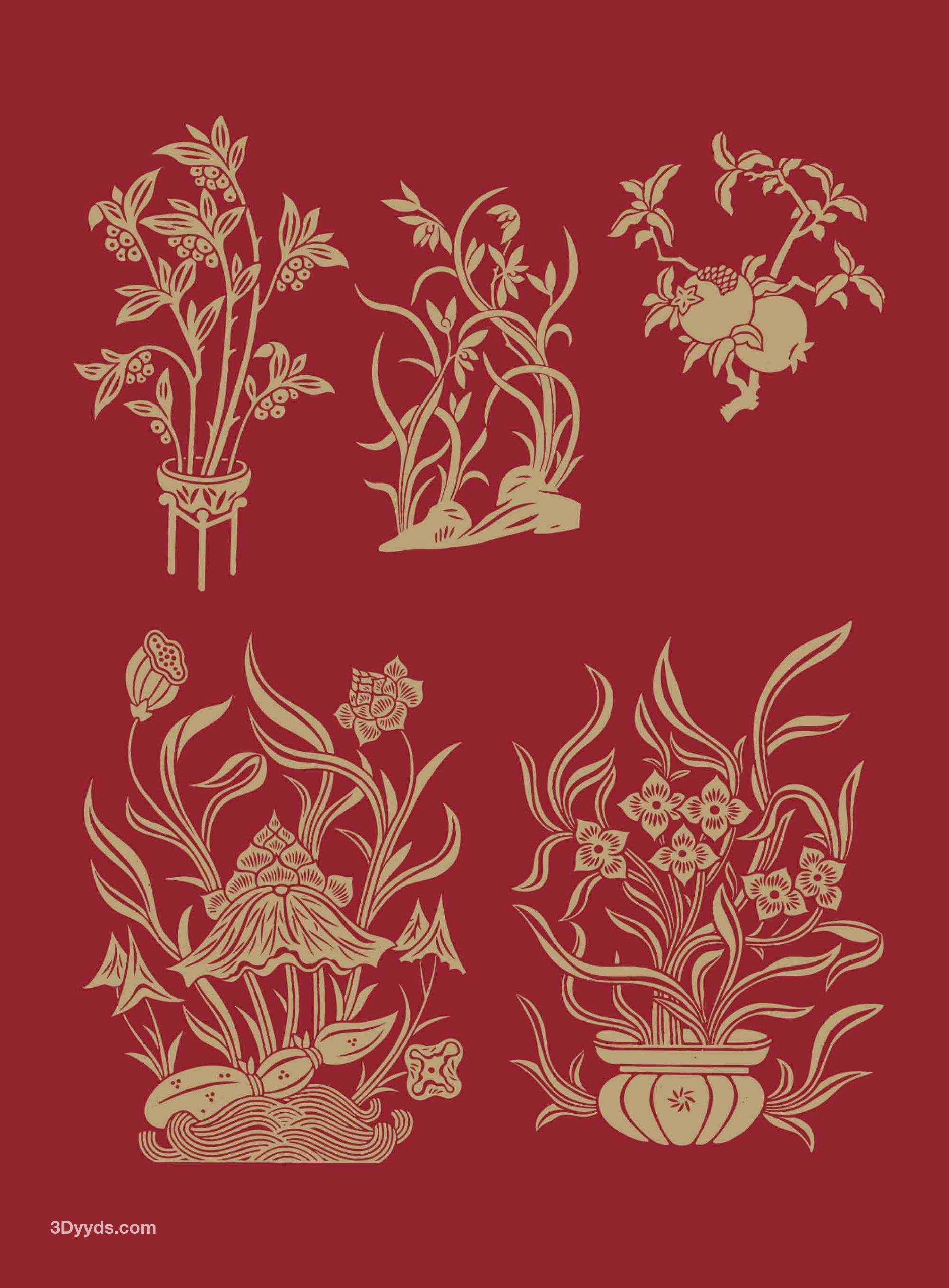 中式传统古典花草树木植物盆栽盆景纹理纹样图片图案矢量素材png