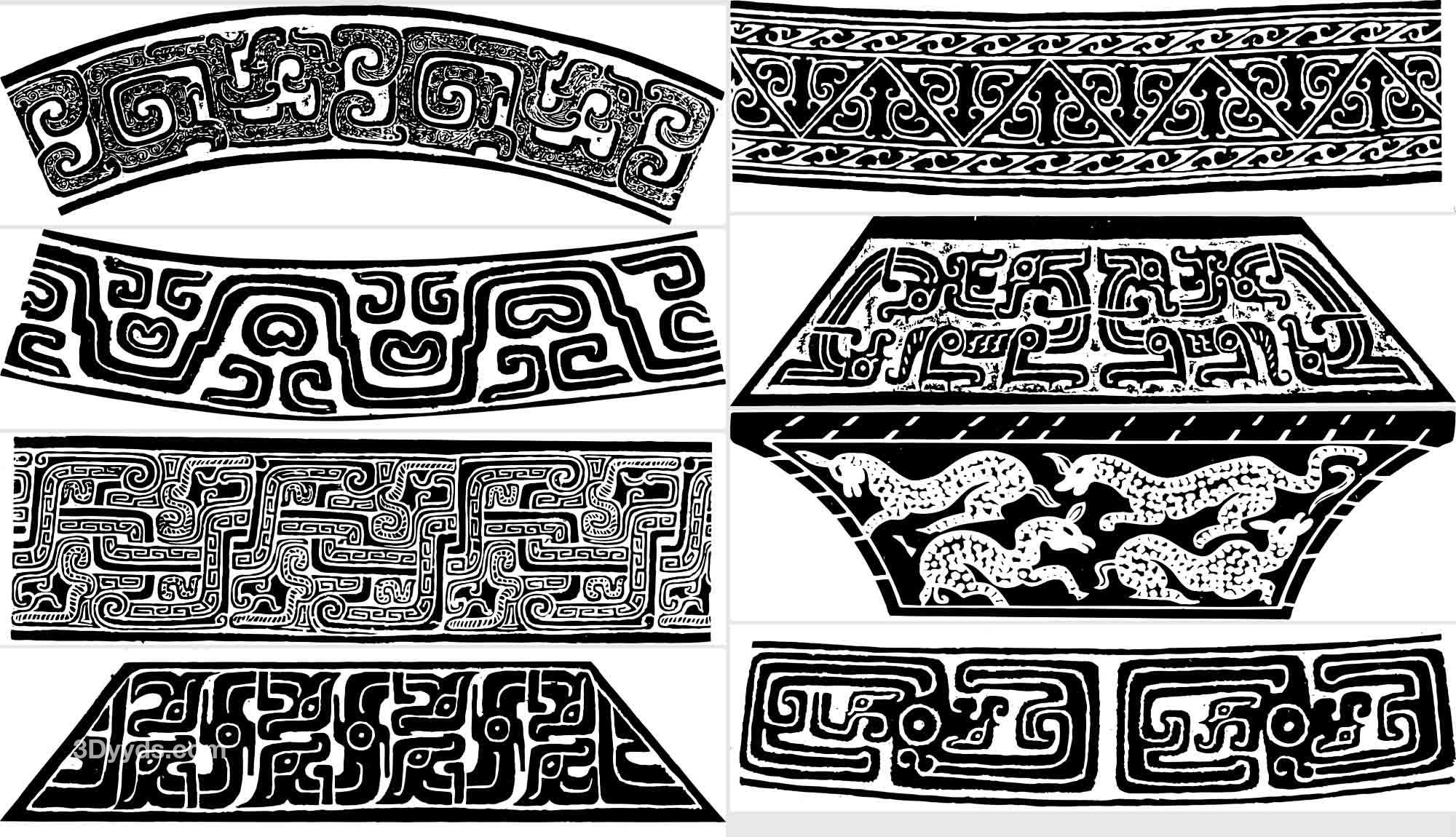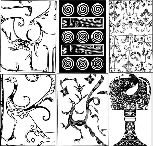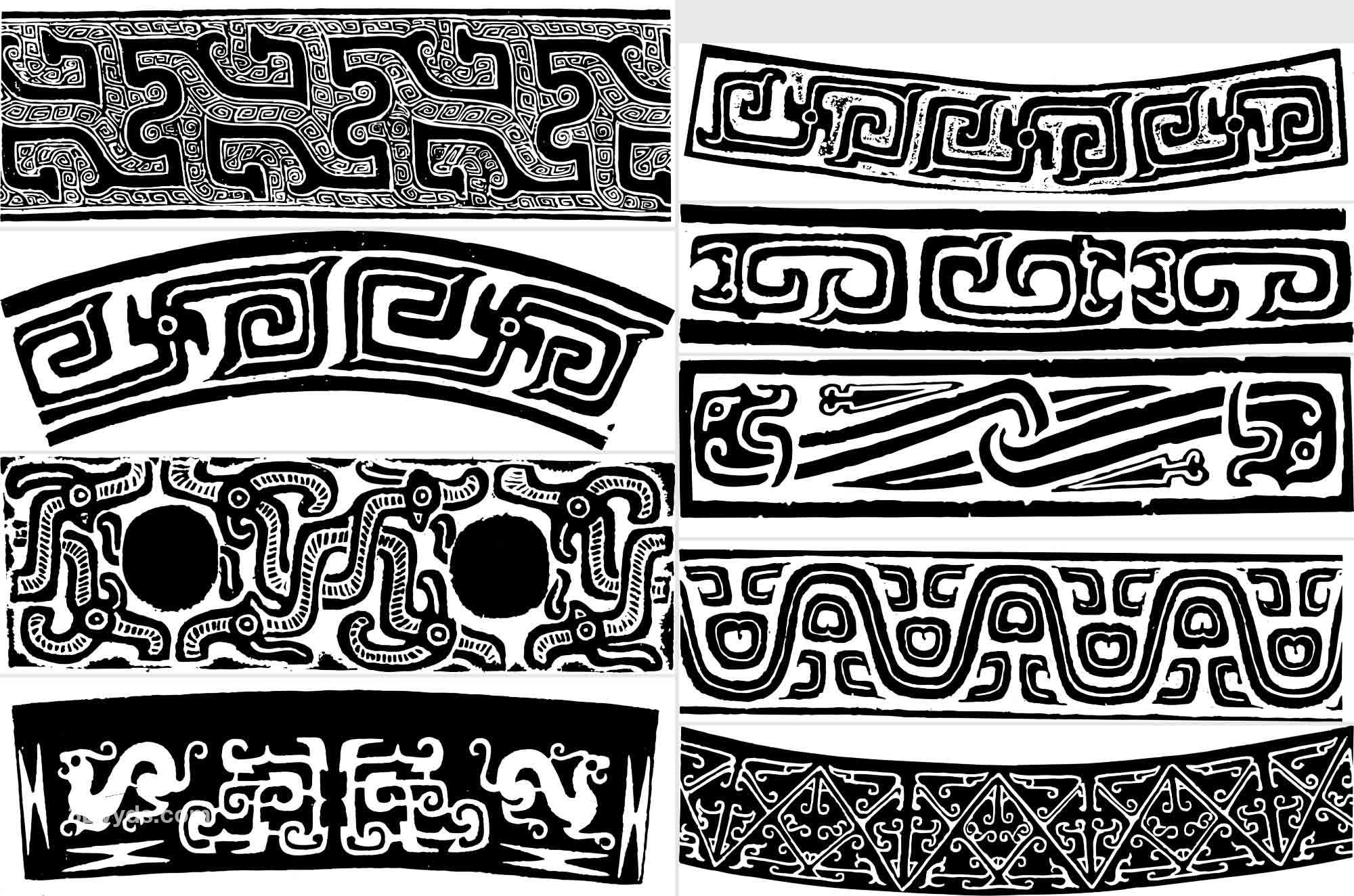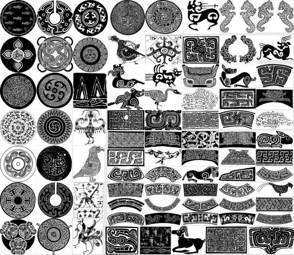 中国古代传统春秋战国青铜器纹样图案拓片AI矢量拓印PNG设计素材