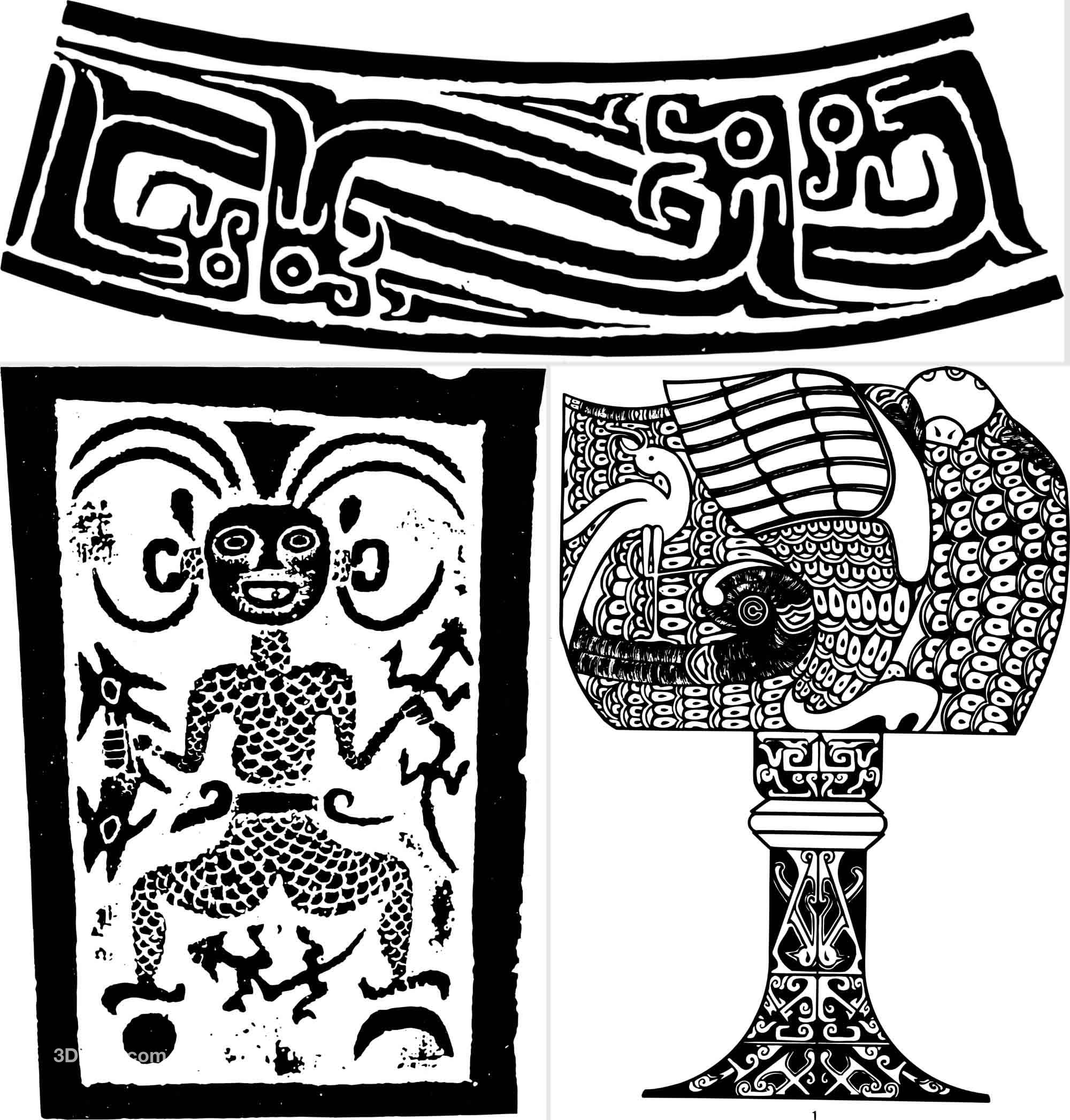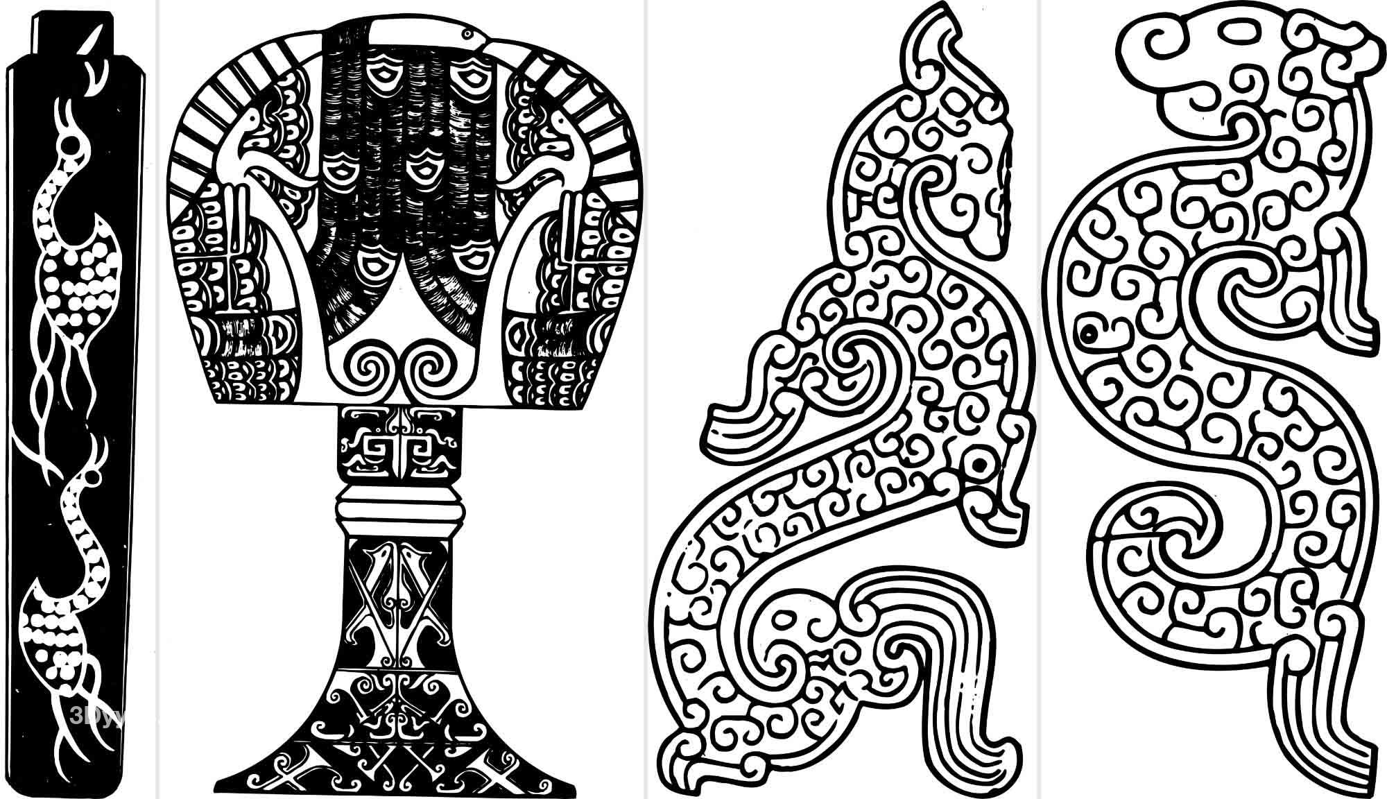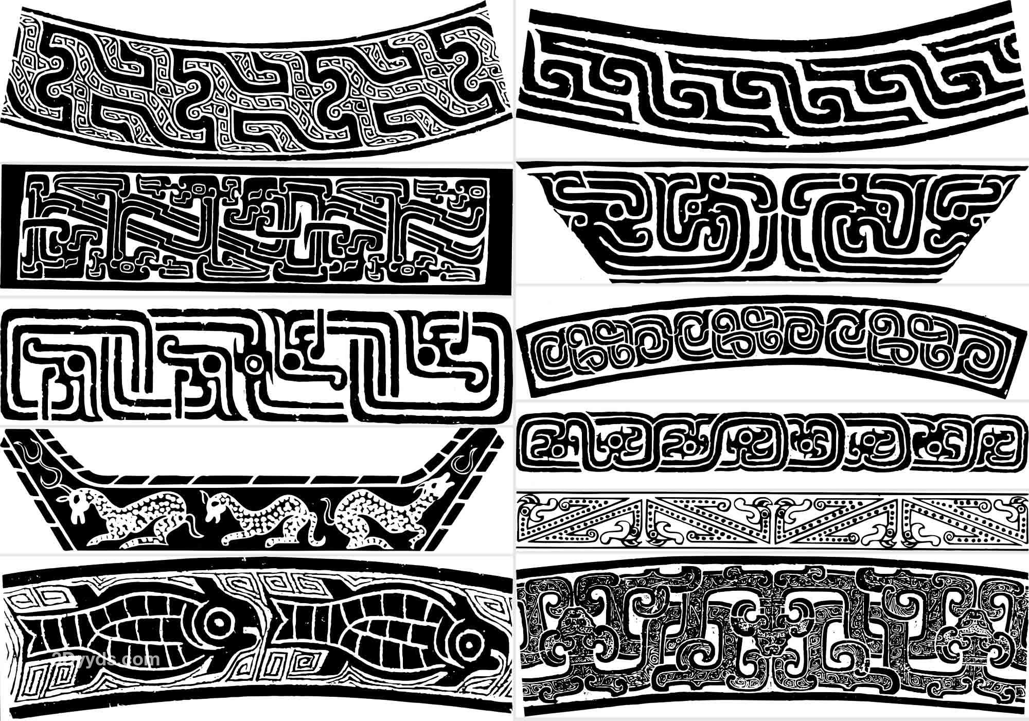 中国古代传统春秋战国青铜器纹样图案拓片AI矢量拓印PNG设计素材