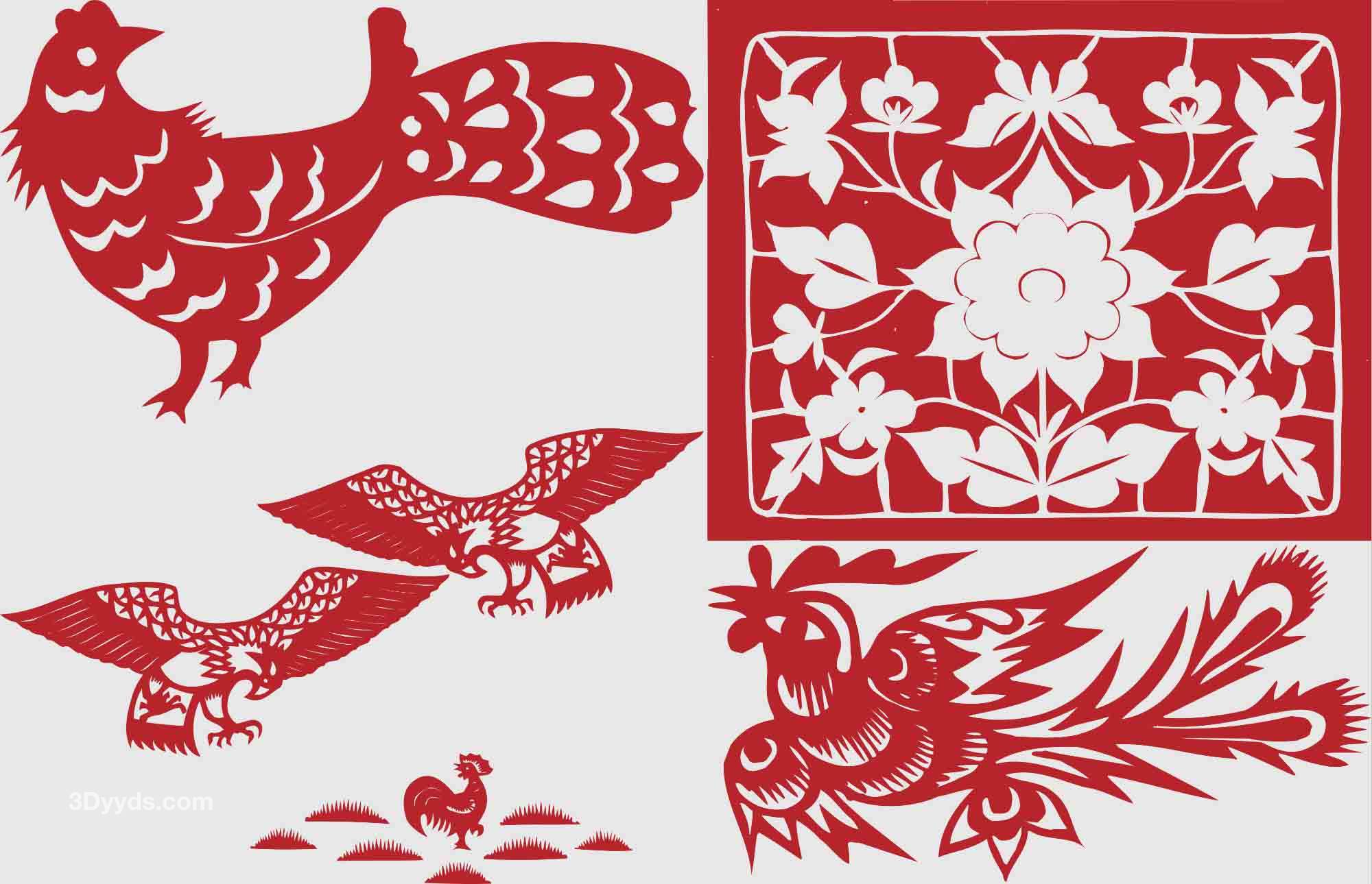 传统民俗中国风吉祥喜庆镂空剪纸窗花图案插画AI矢量PNG设计素材