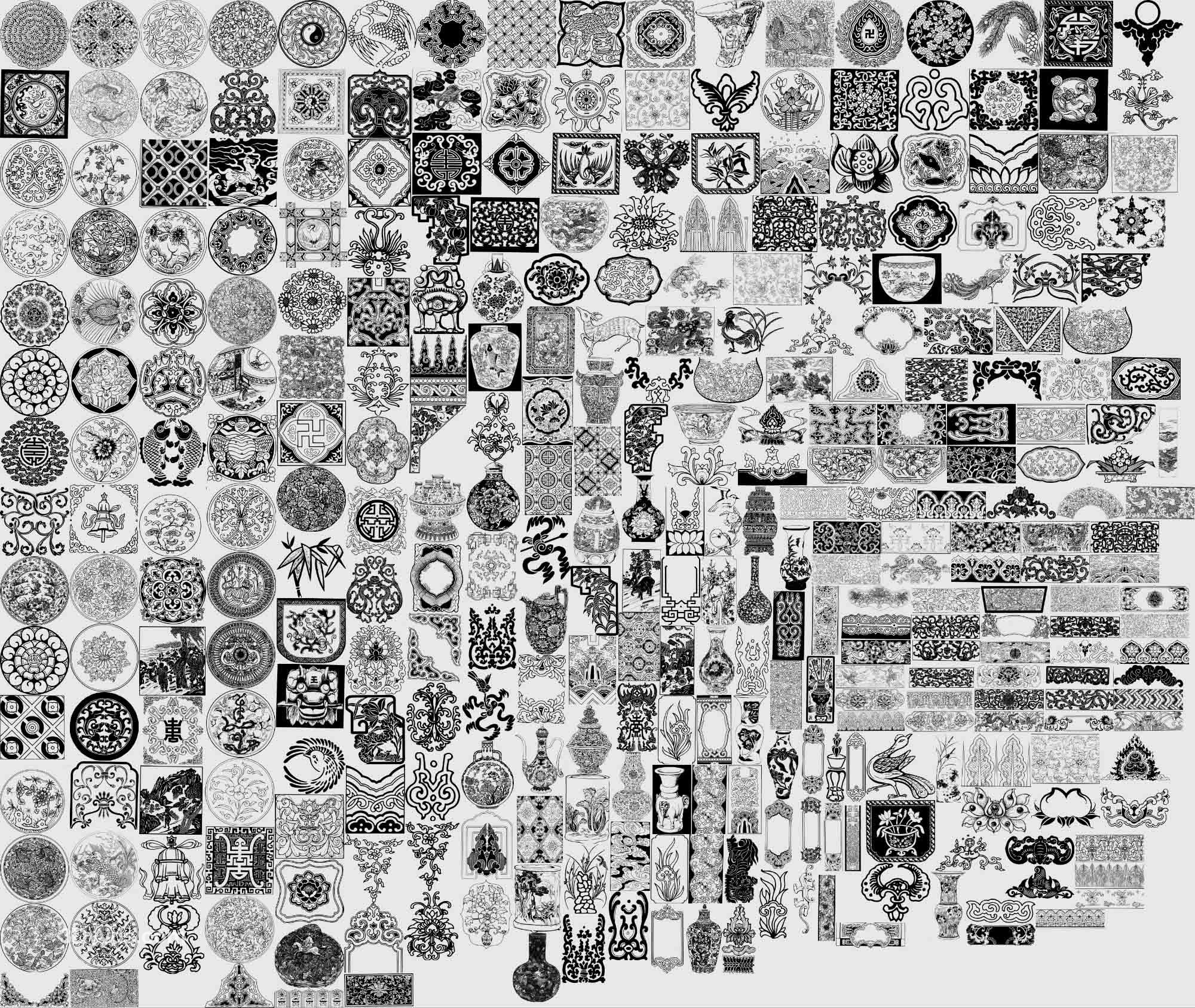文化中国潮古风吉祥清代图案传统喜庆纹样纹饰PNG免扣AI设计素材
