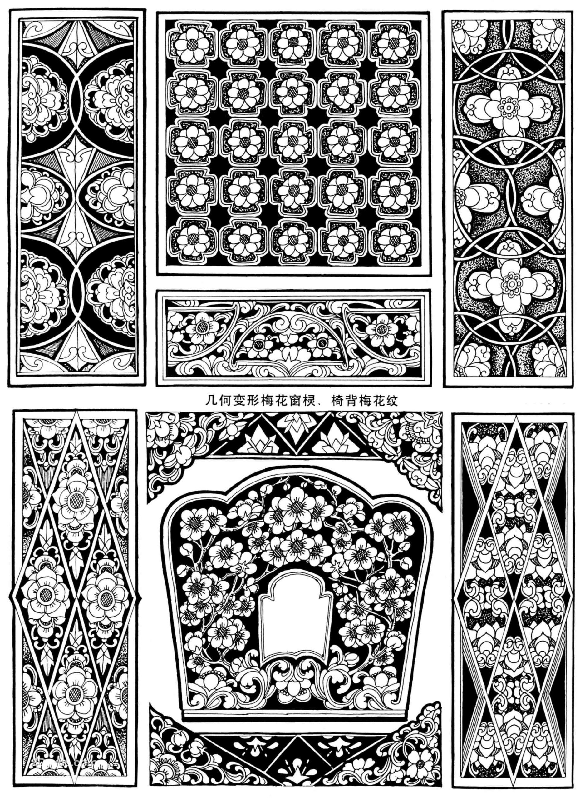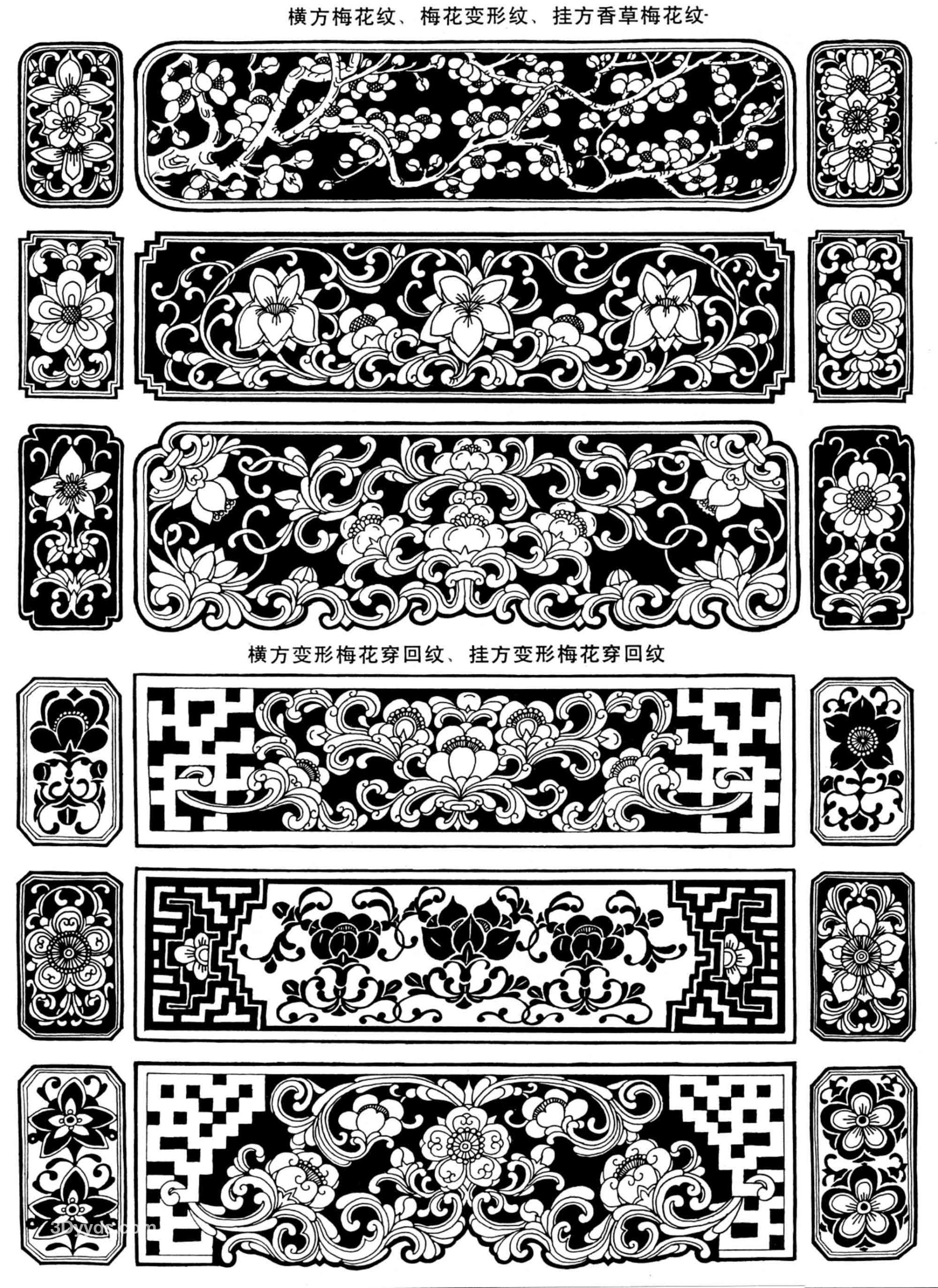 中国传统雕刻木雕石雕中式梅花花纹图案纹样高清图片AI矢量素材