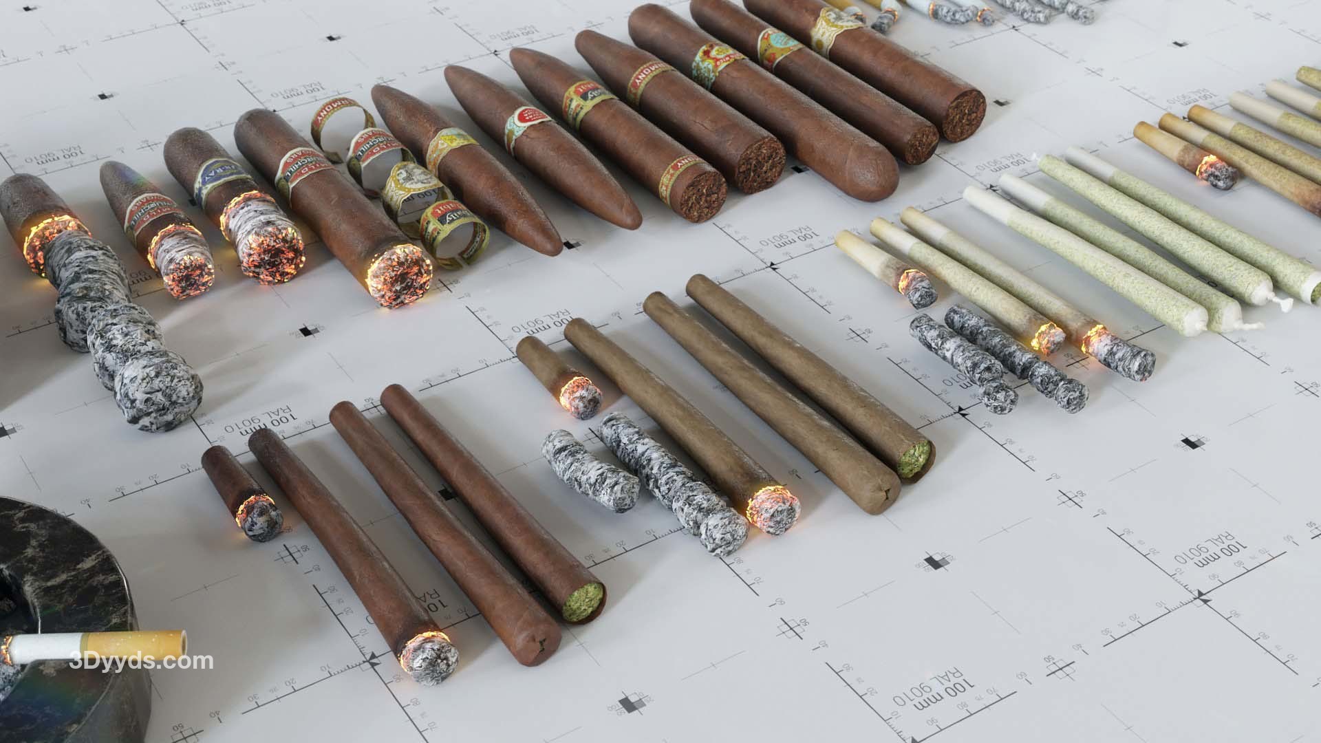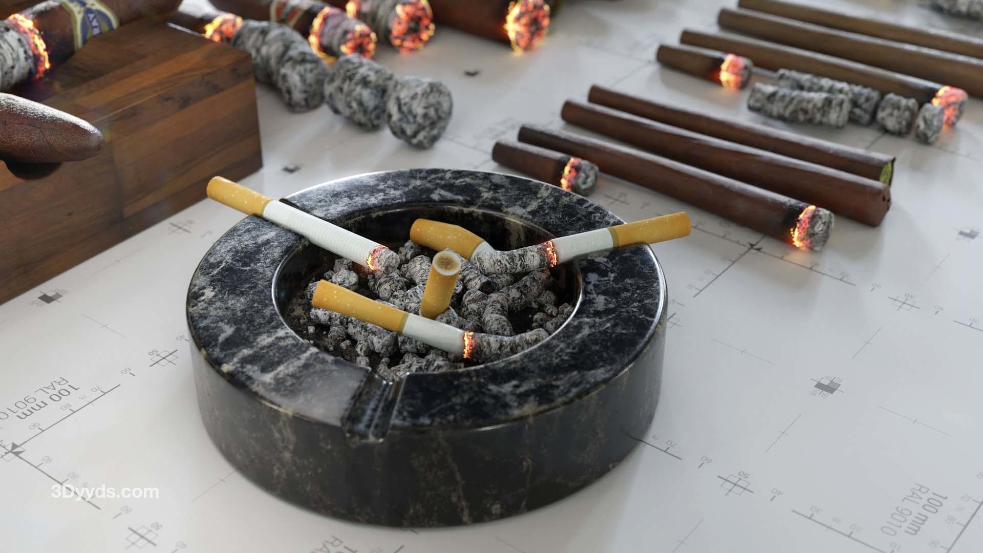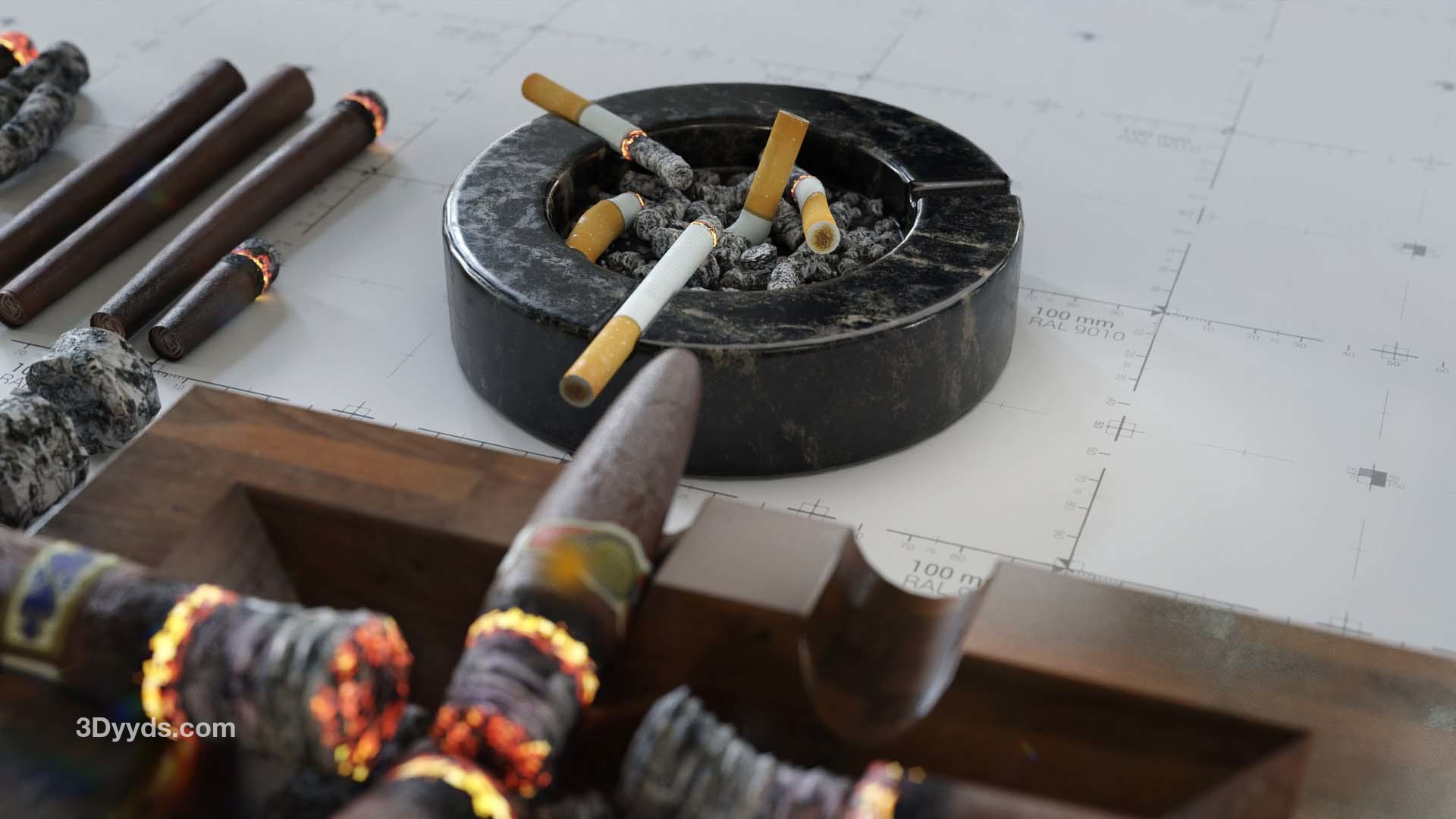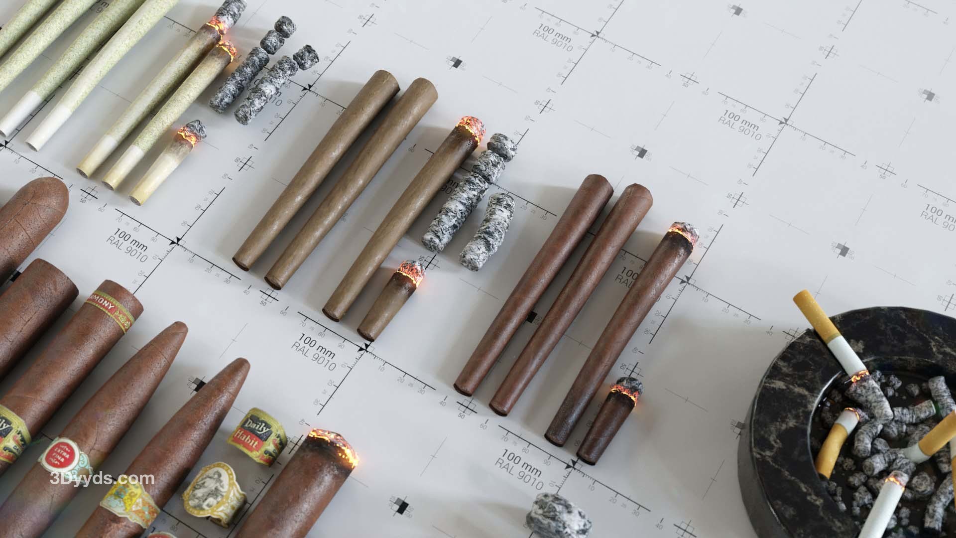 请查看效果图,看看资产和线框是否适合您的需求。雪茄、香烟和可吸烟物在场景中营造出美丽的细节。