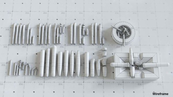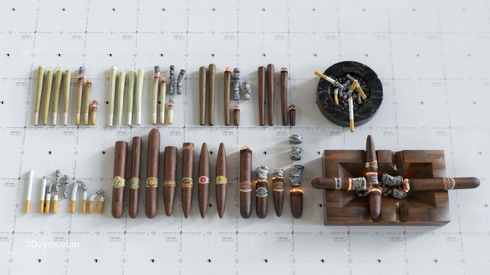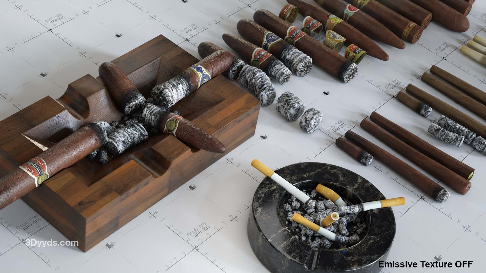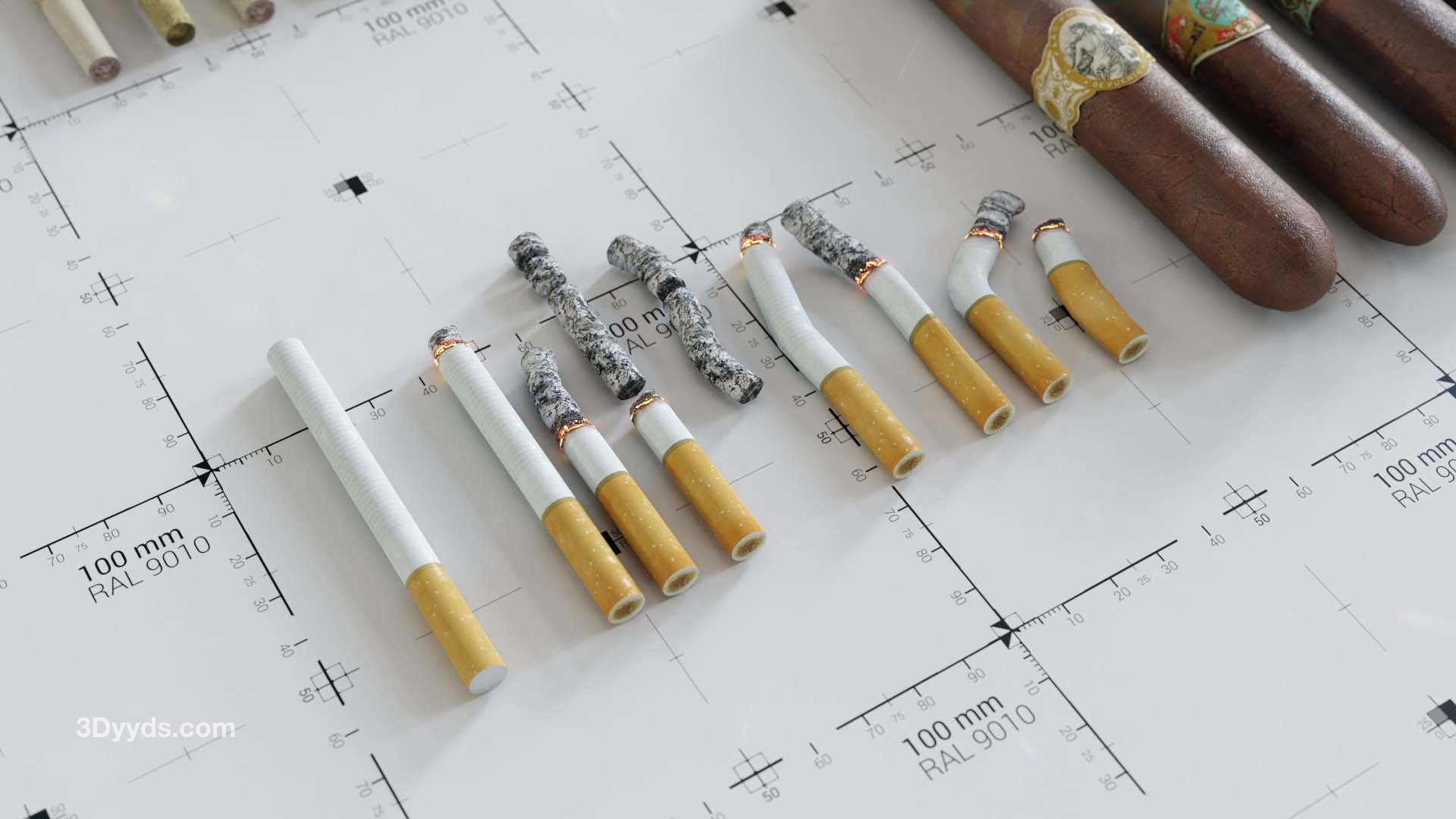 请查看效果图,看看资产和线框是否适合您的需求。雪茄、香烟和可吸烟物在场景中营造出美丽的细节。