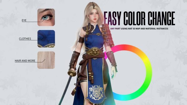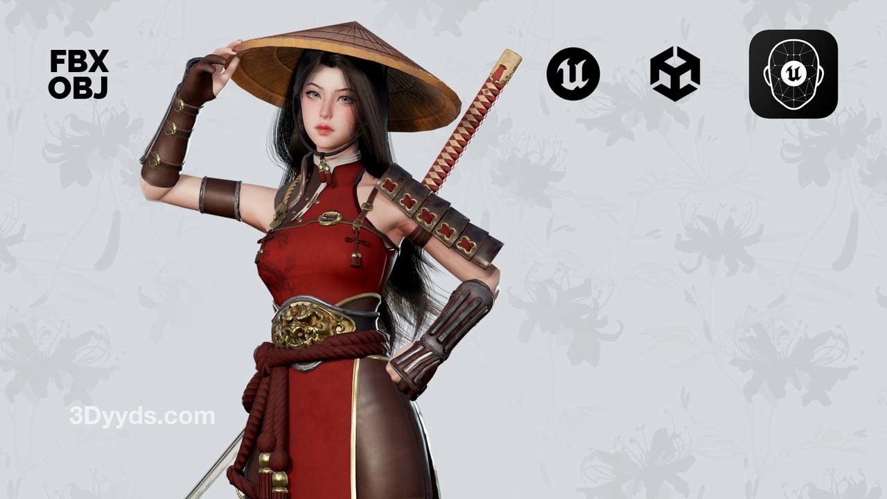 可爱的武士女孩的 3D 模型。她有 ARKit 混合形状、人形装备和许多颜色选项。她将成为 RPG 或格斗游戏的完美角色!