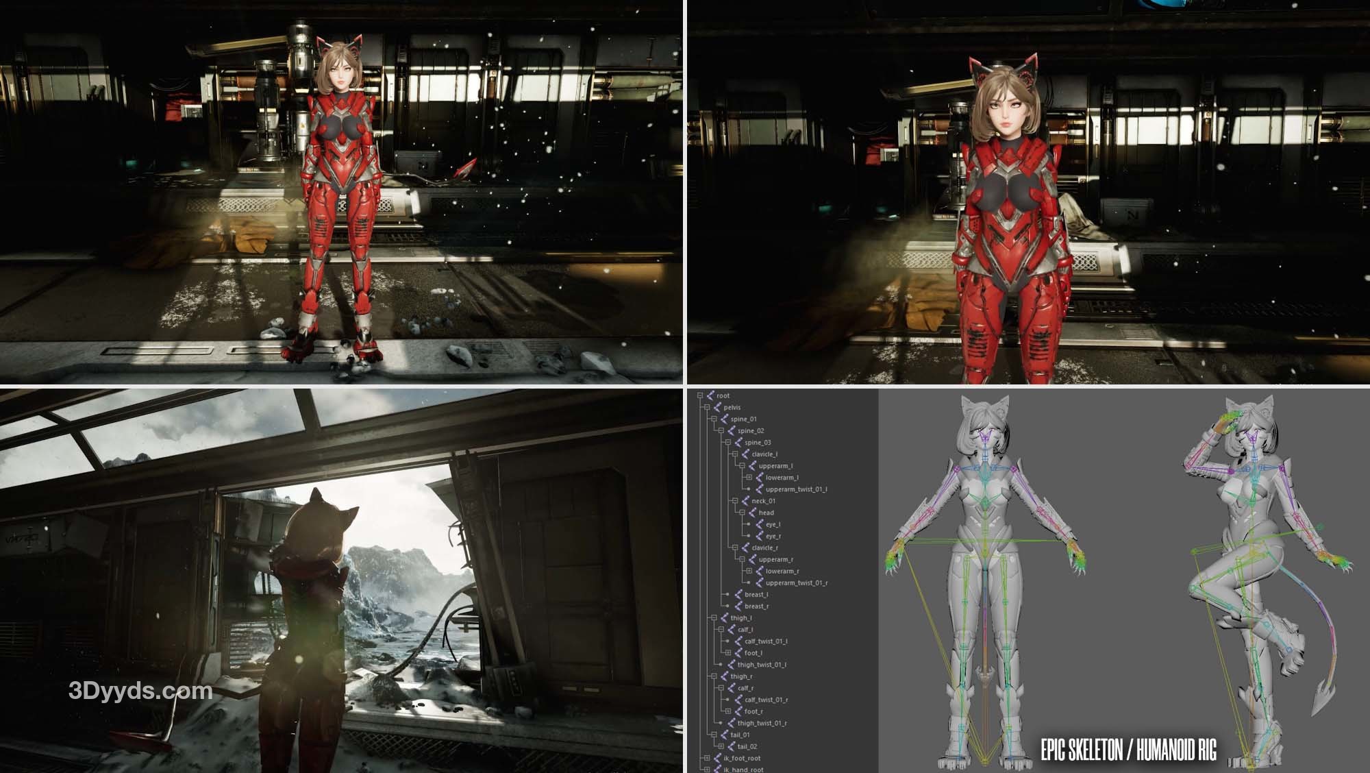 装备有 Epic Skeleton。添加到 Epic 骨架的其他骨骼:eye_l/r、breast_l/r、tail_01-07