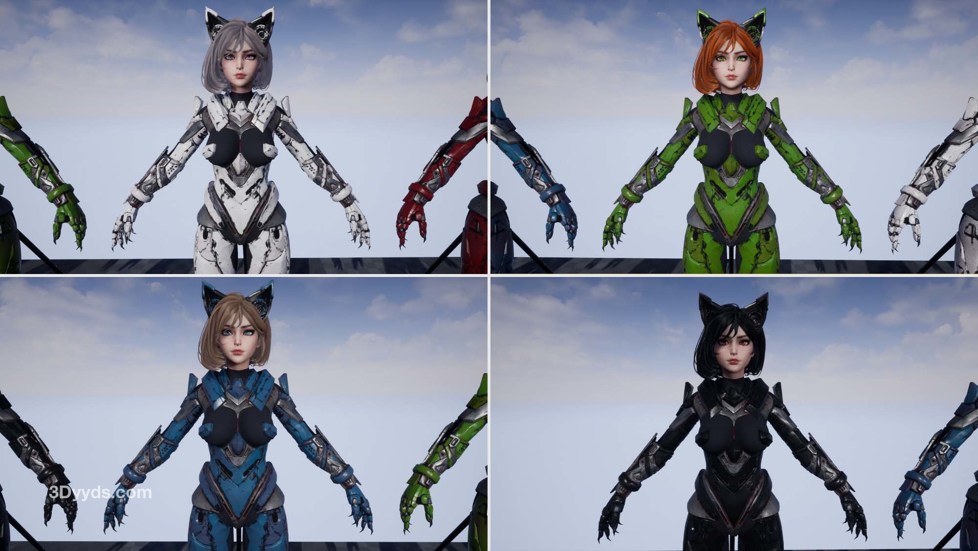 默认情况下,盔甲包含这些颜色:红色、绿色、蓝色、黑色、白色。眼睛:灰色、棕色、紫色、绿色、蓝色、红色。适合头发:棕色、黑色、白色。您也可以更改任何颜色。
