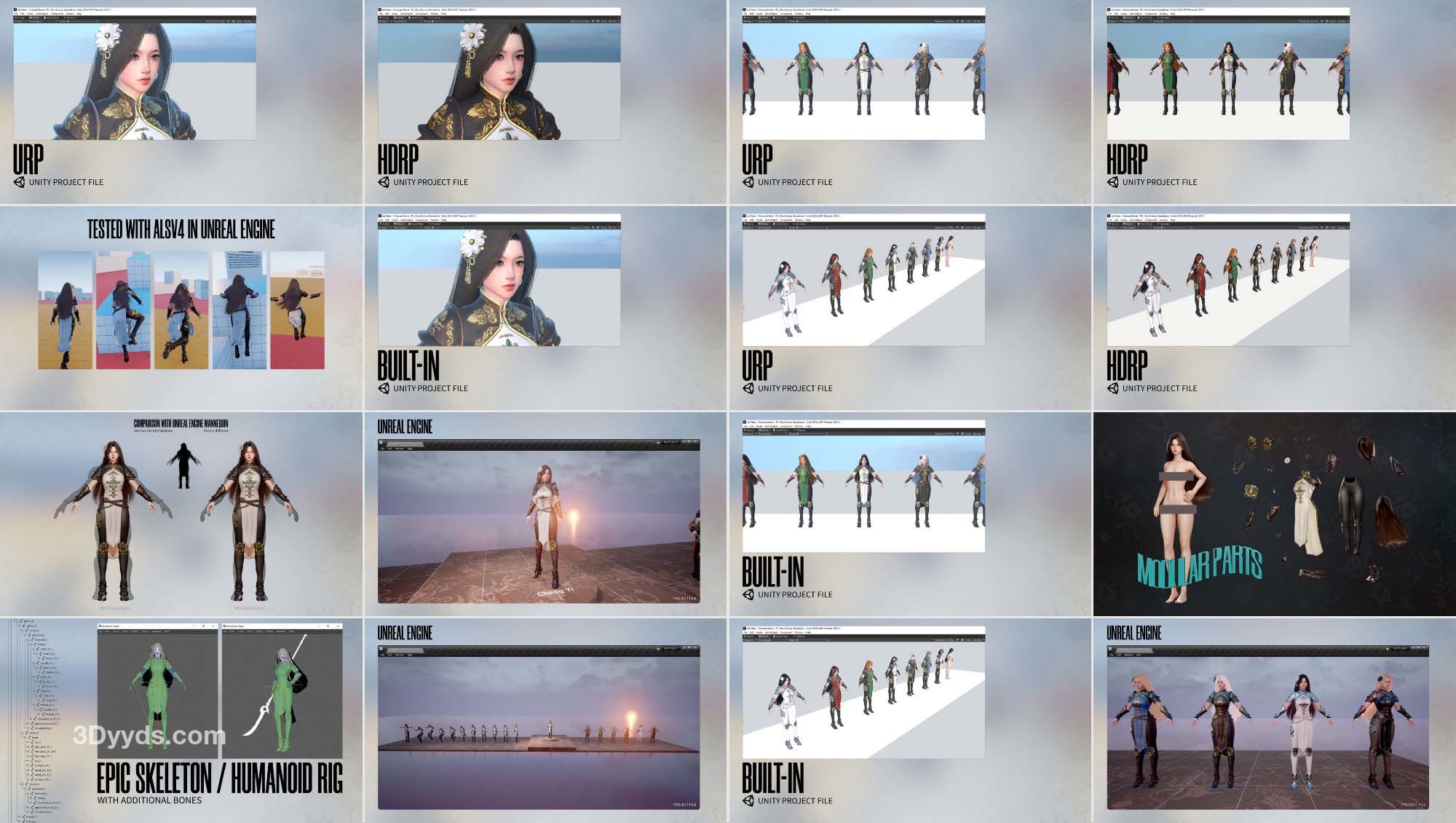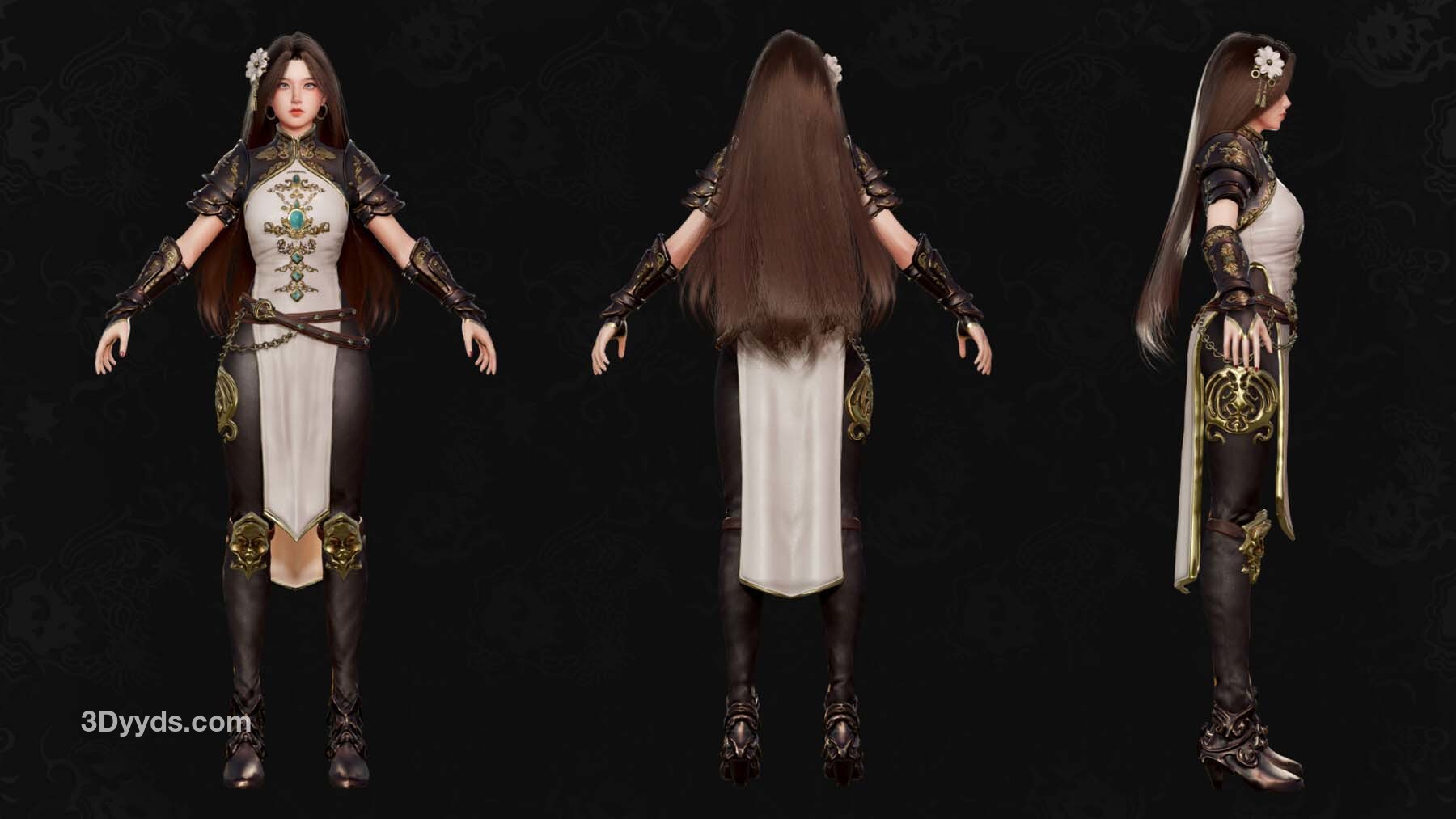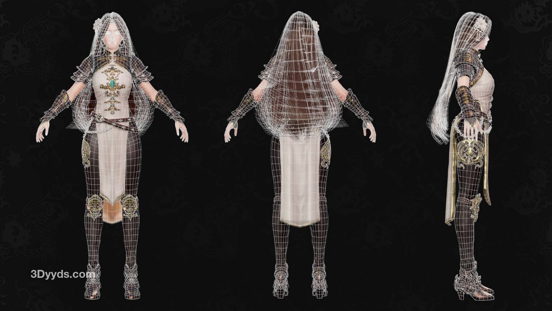 可爱的中国武士少女的 3D 模型。她有 ARKit 混合形状、人形装备和许多颜色选项。她将成为奇幻或 RPG 游戏的完美角色。