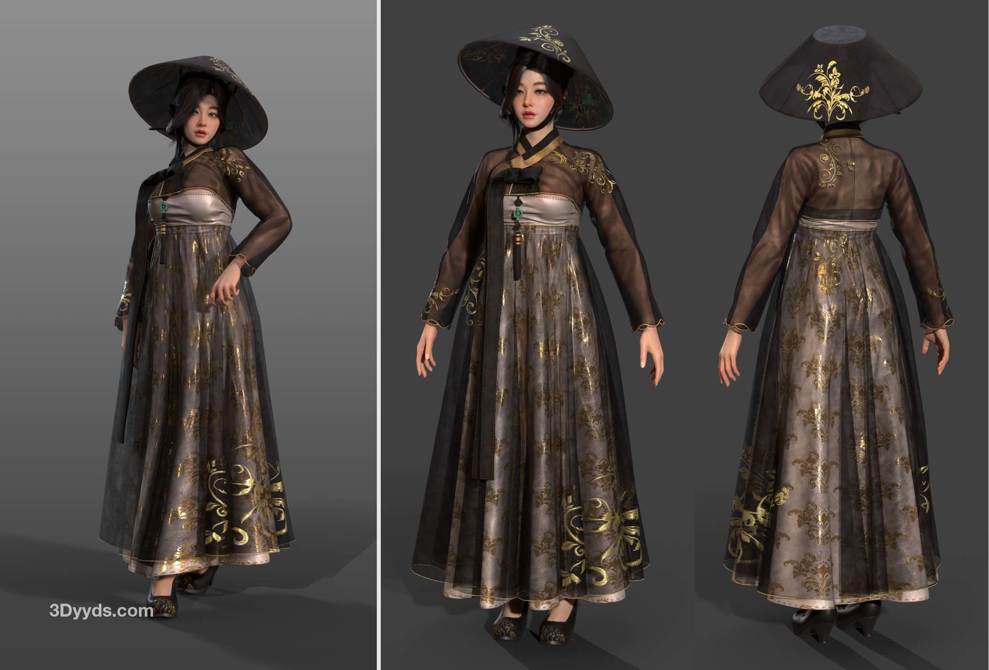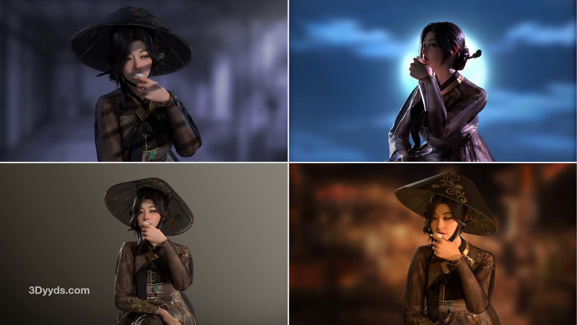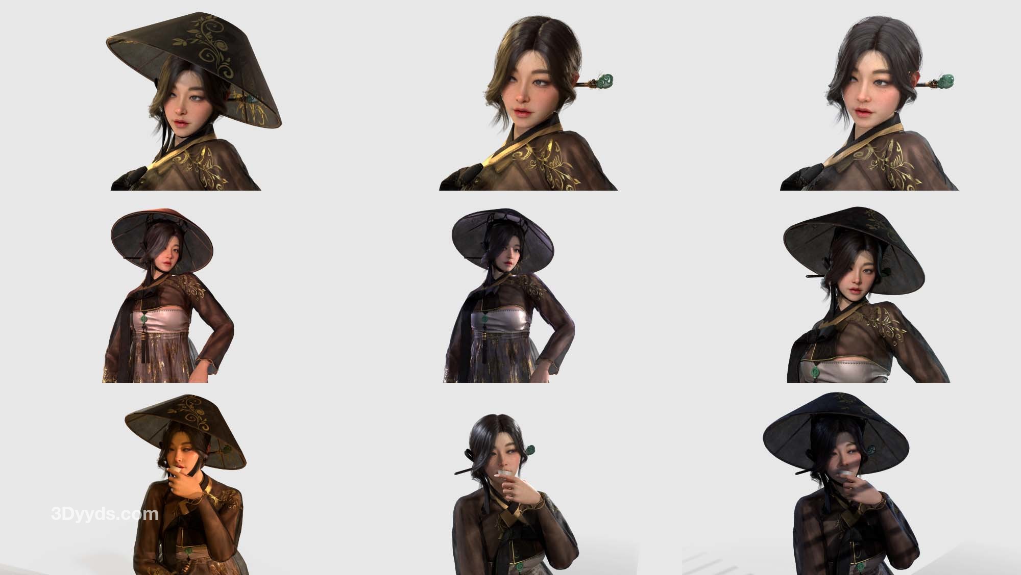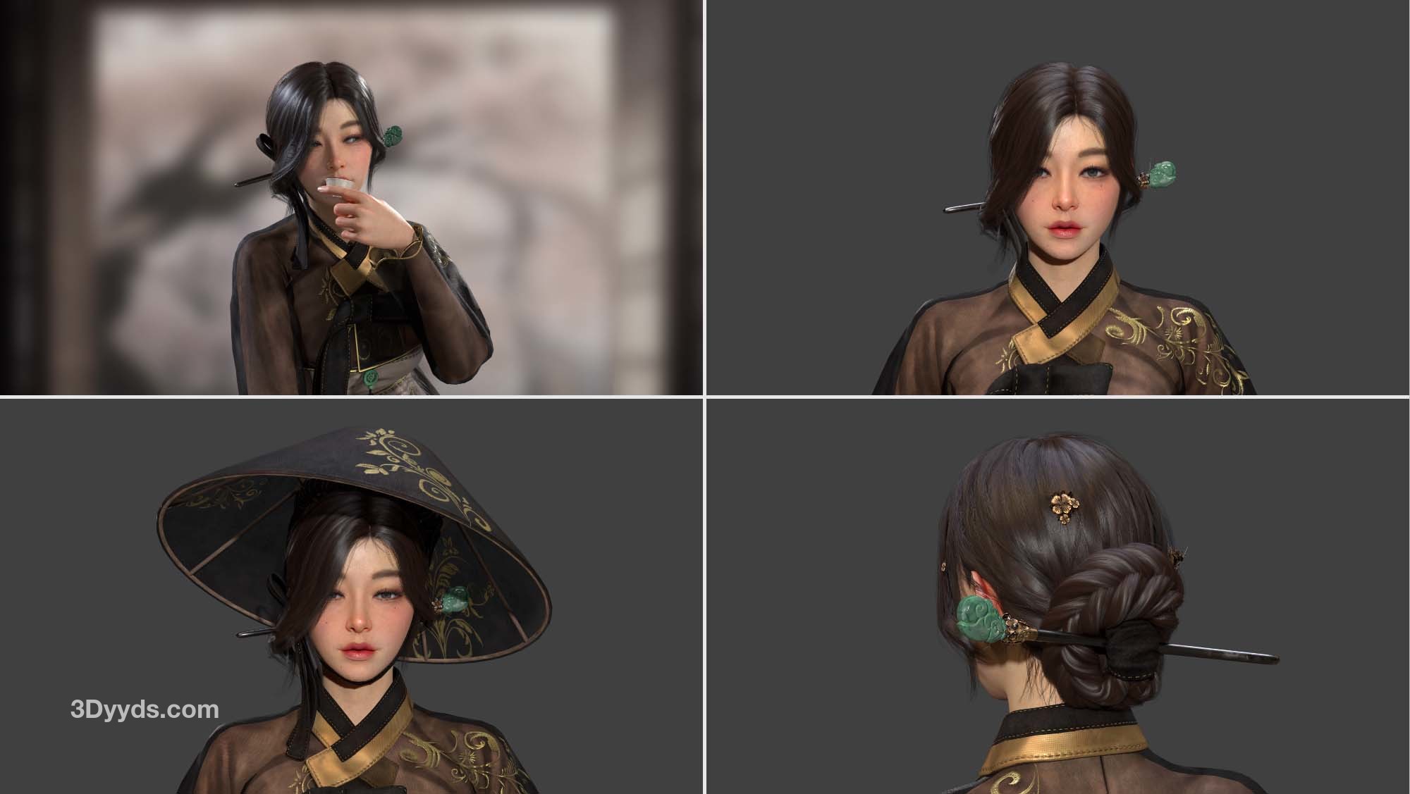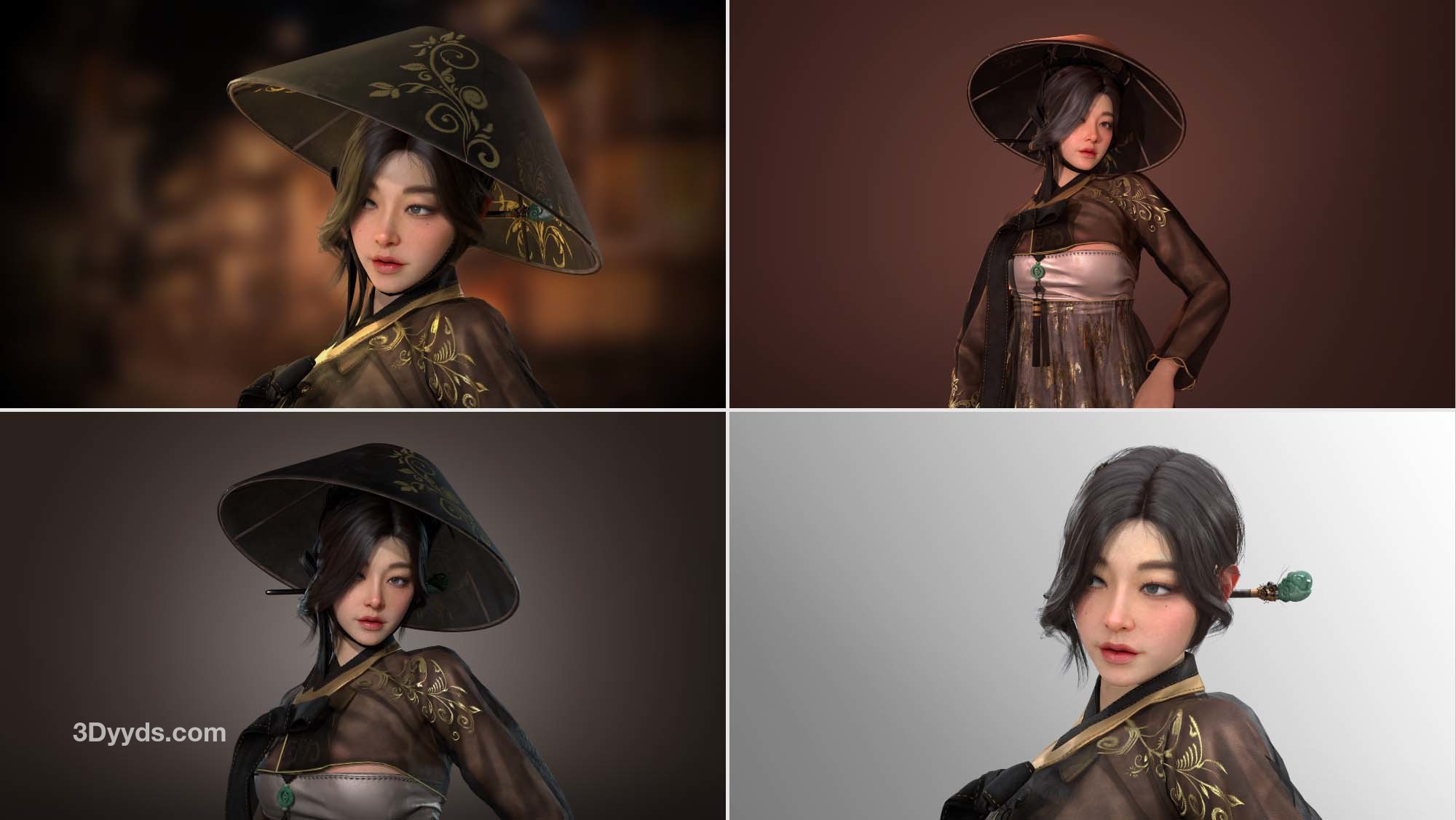中国风3A角色人物亚裔女性古代美女仙侠3D模型FBX八猴OBJ