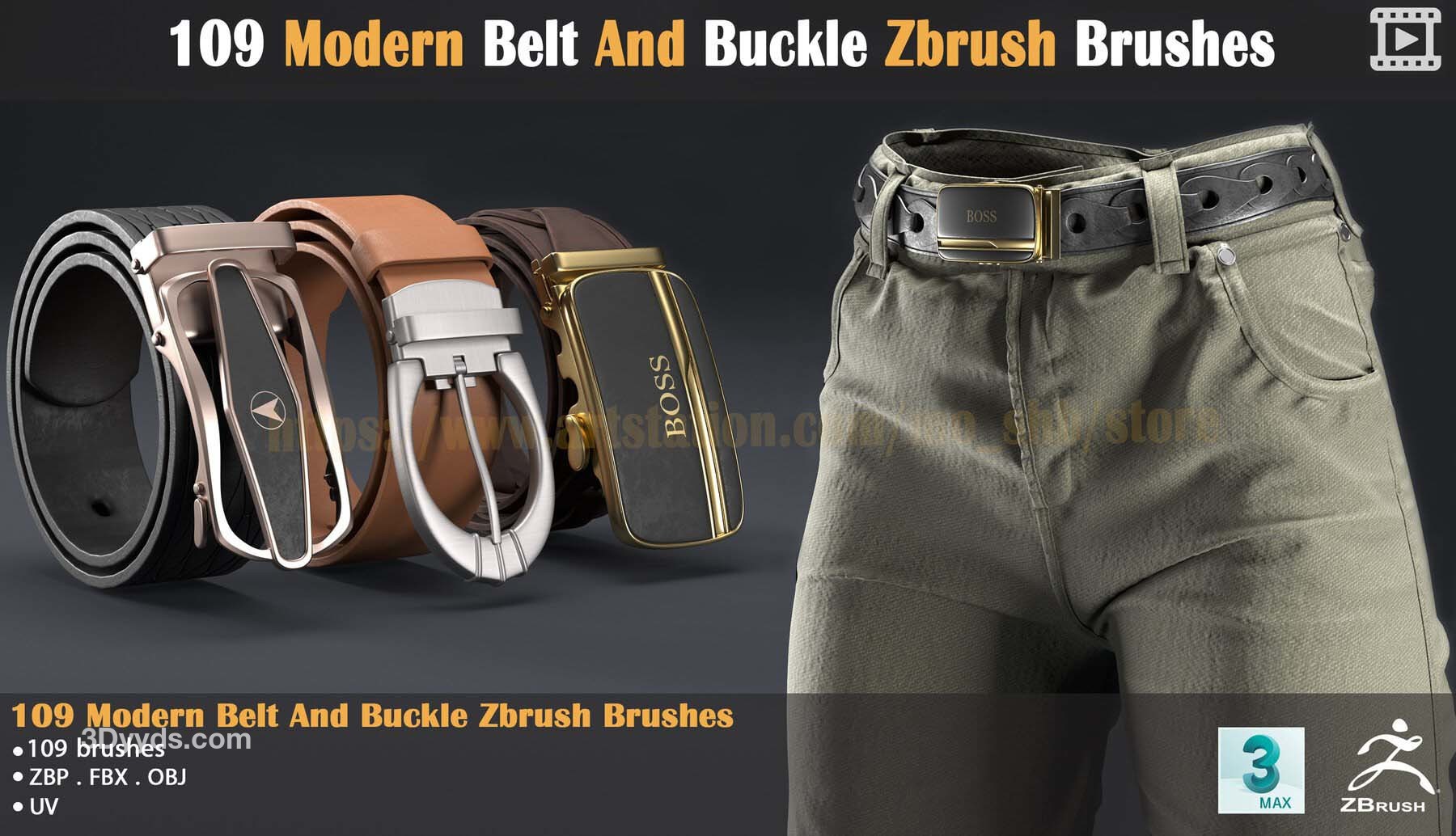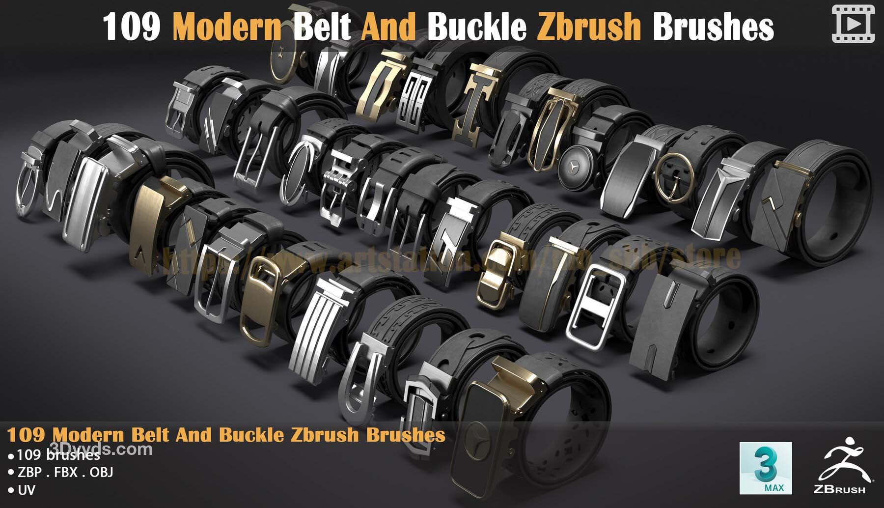 zbrush109款皮带扣皮革腰带zbp笔刷FBX模型OBJ素材ZB建模雕刻