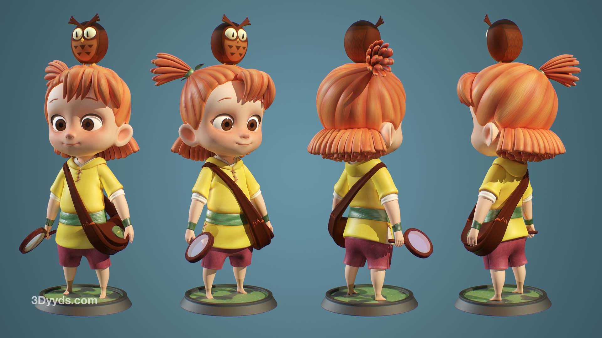 MAX卡通可爱女孩人物角色3D模型blender渲染fbx建模ZB雕刻obj素材