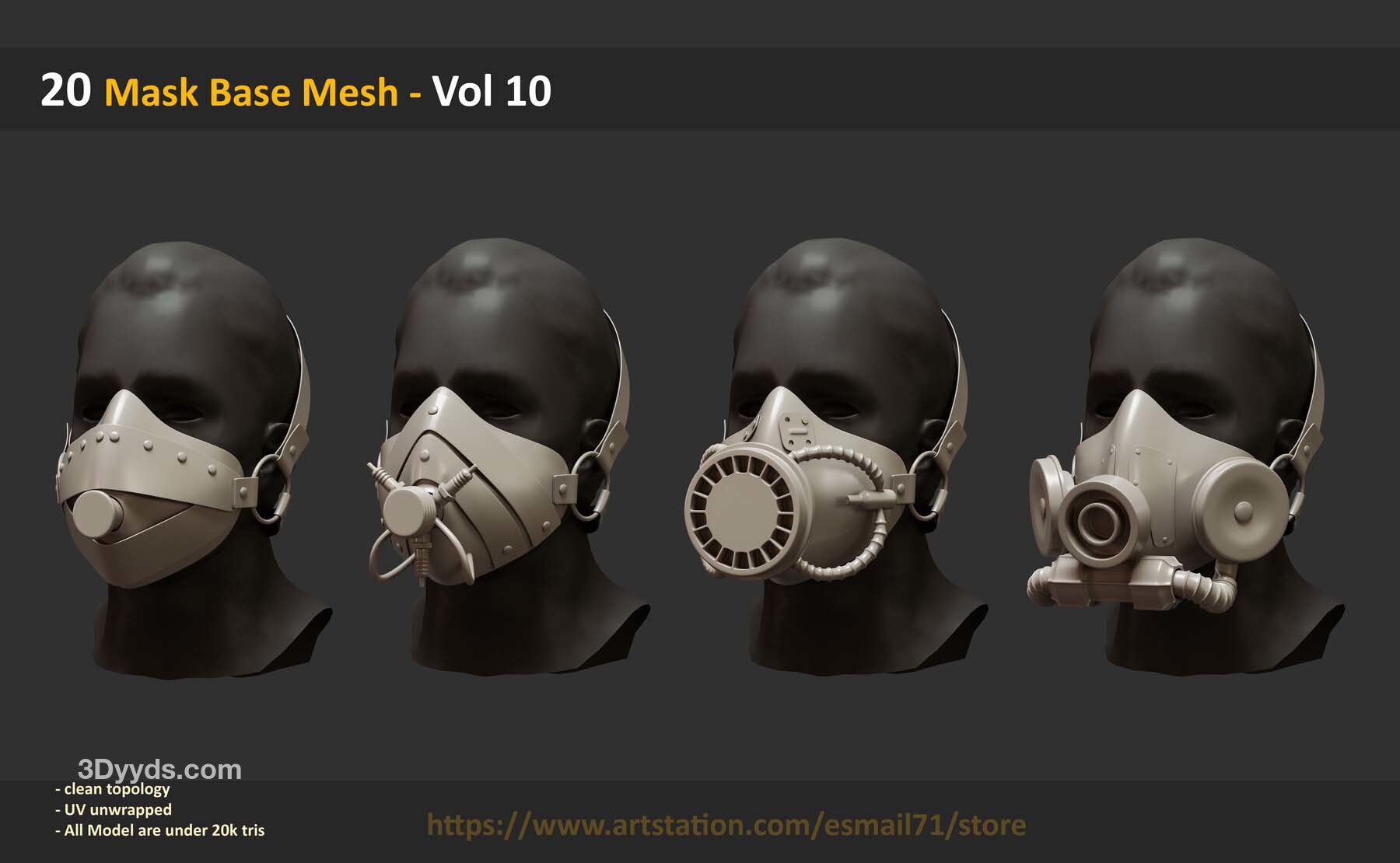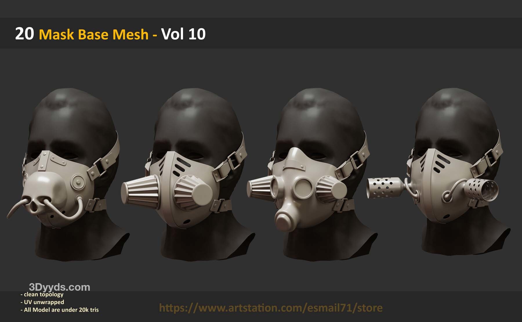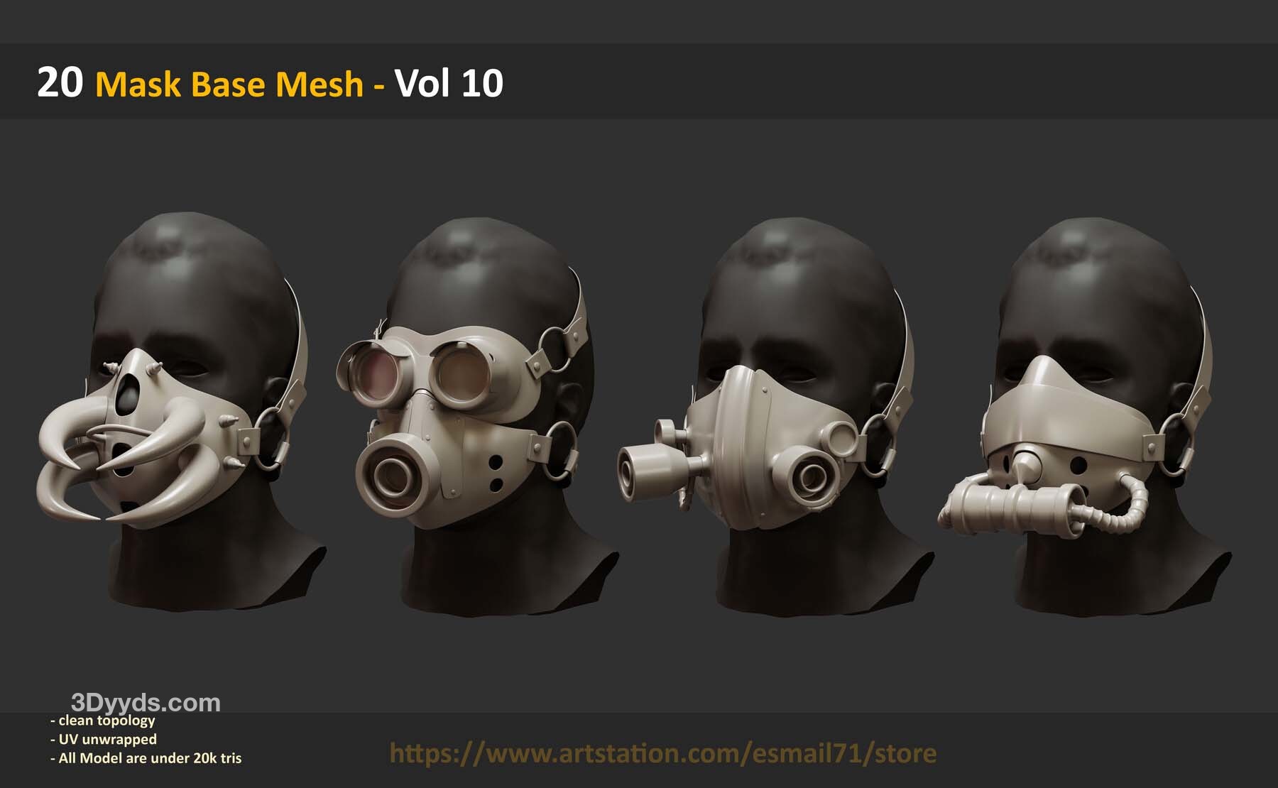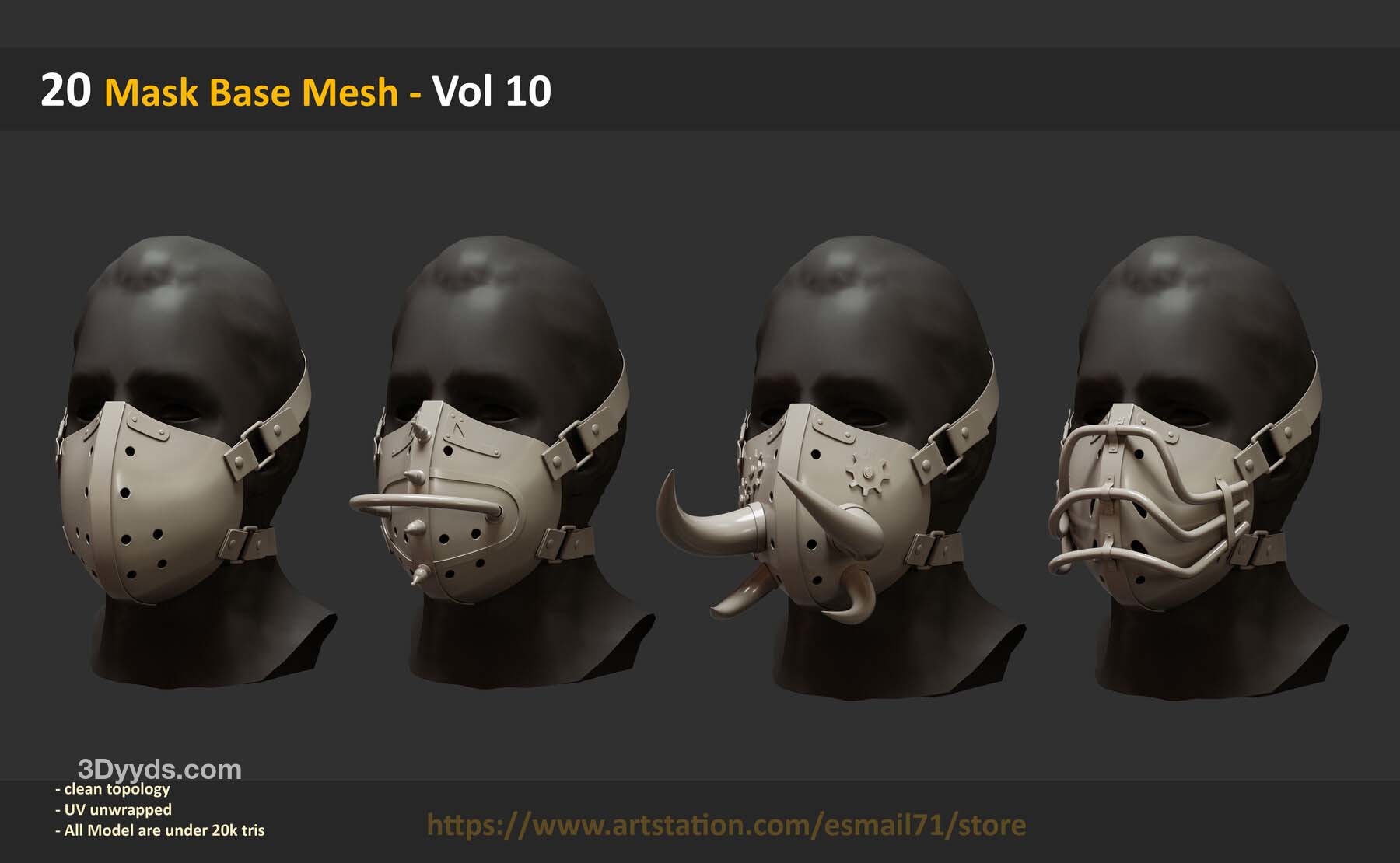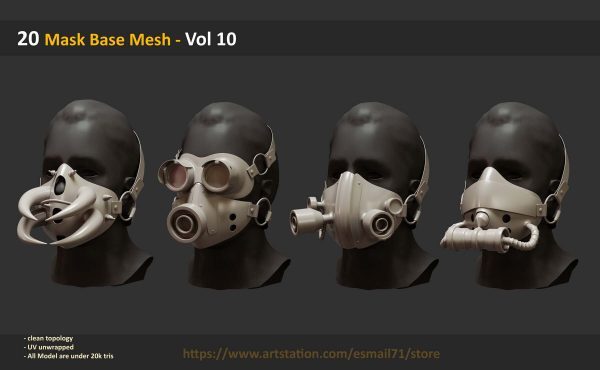 此包包括 20 个可用作基础网格的 Mask 对象 :
