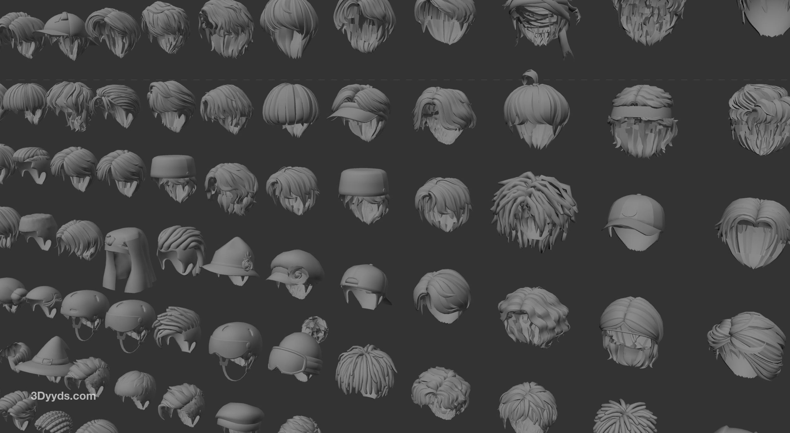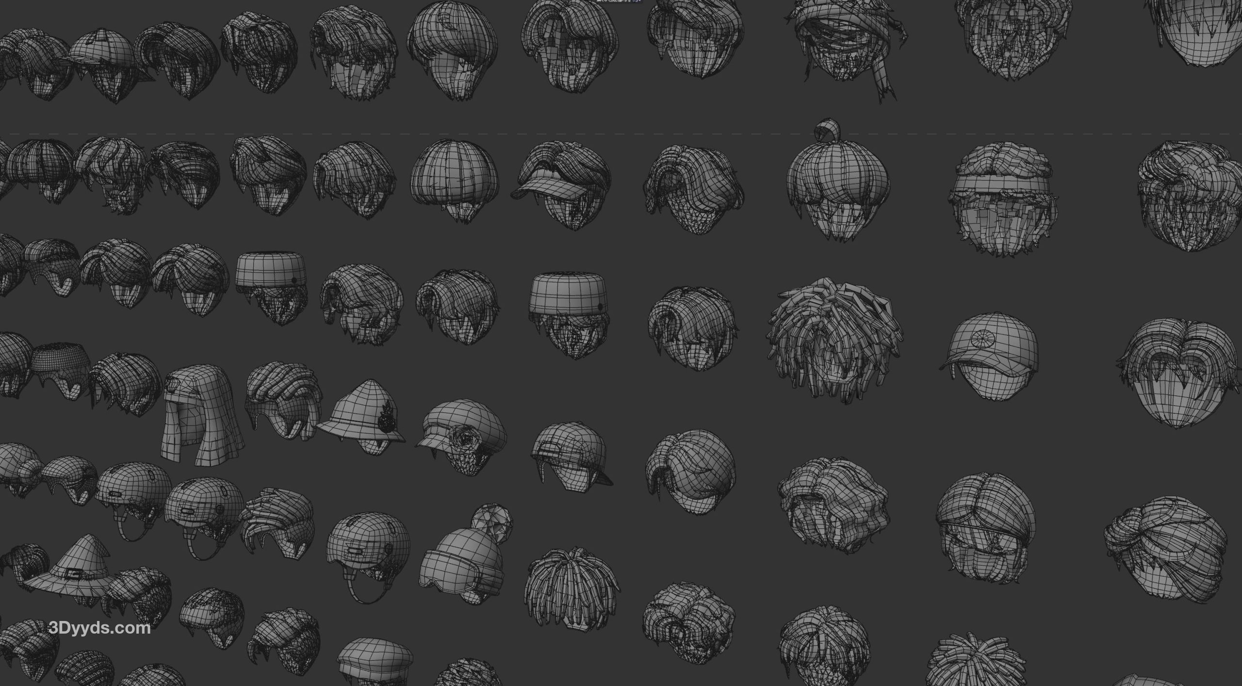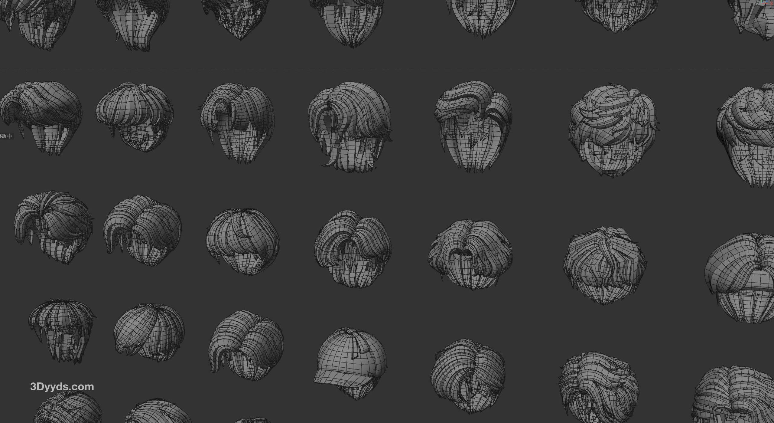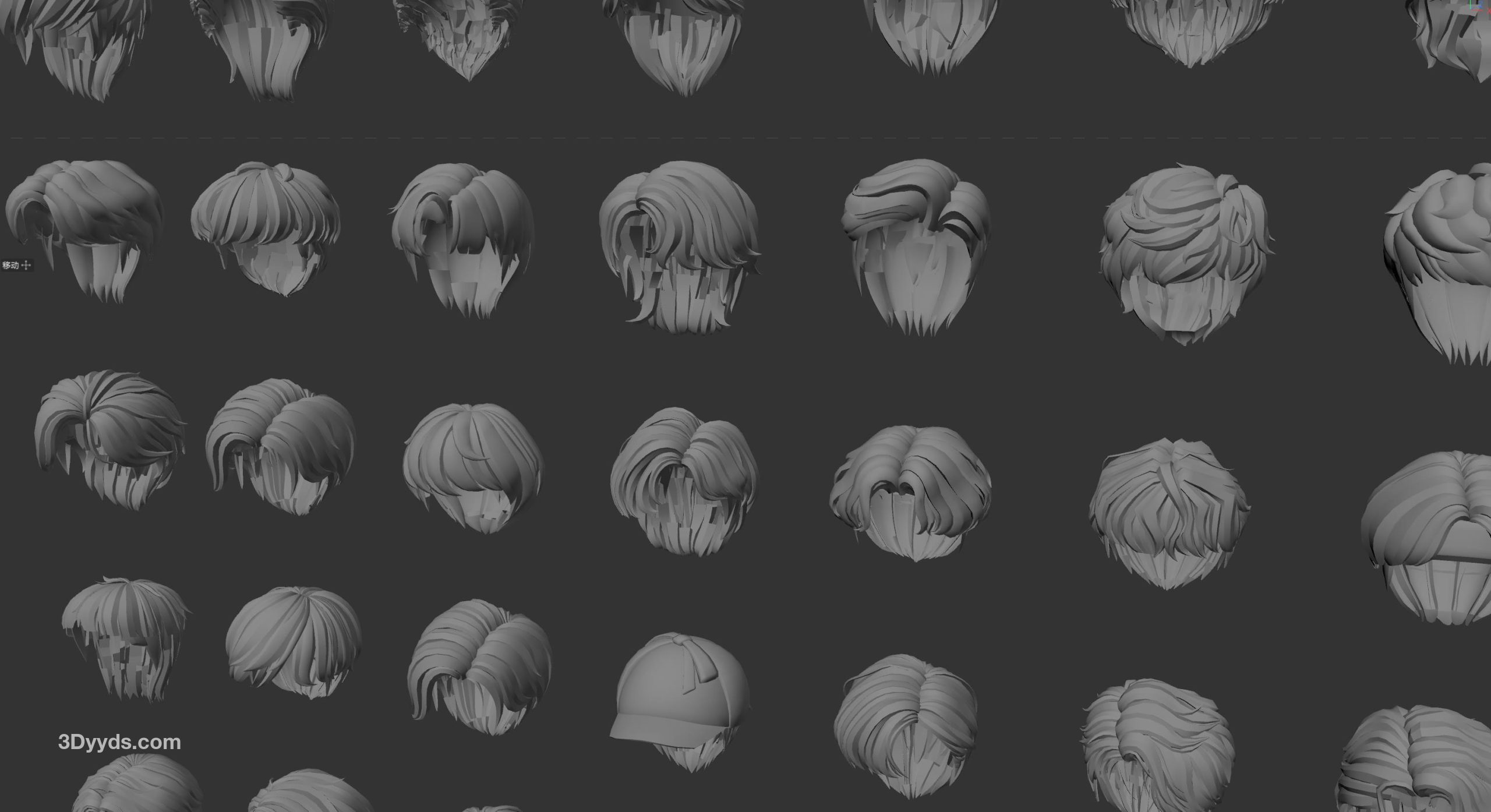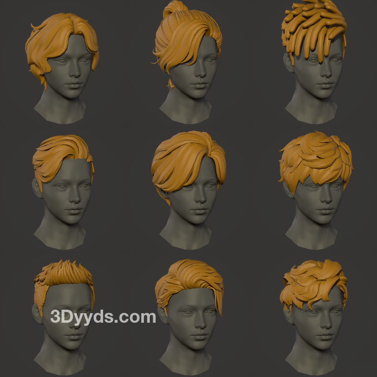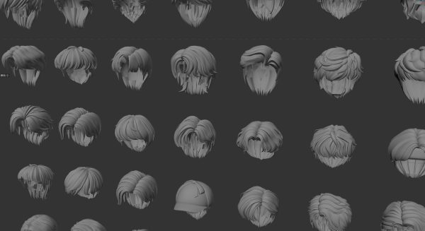 200套卡通男生头发发型四边面3d模型fbx格式