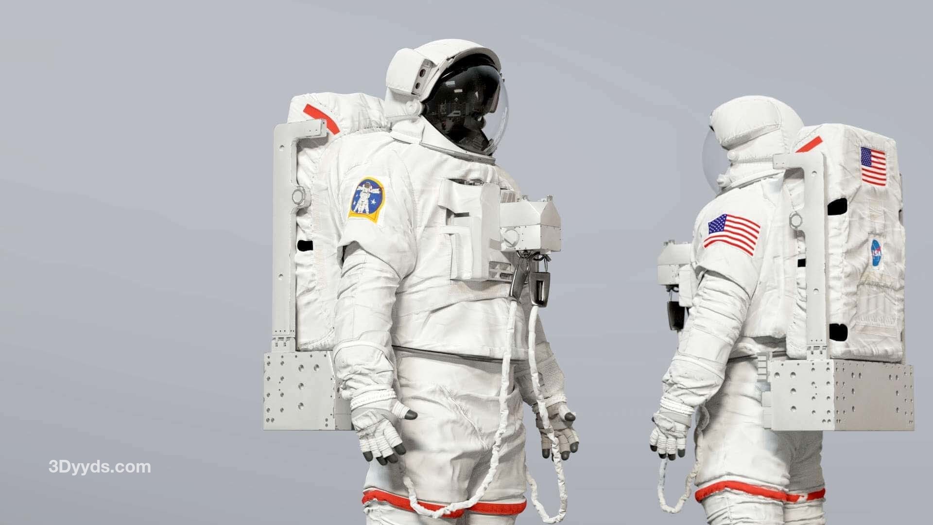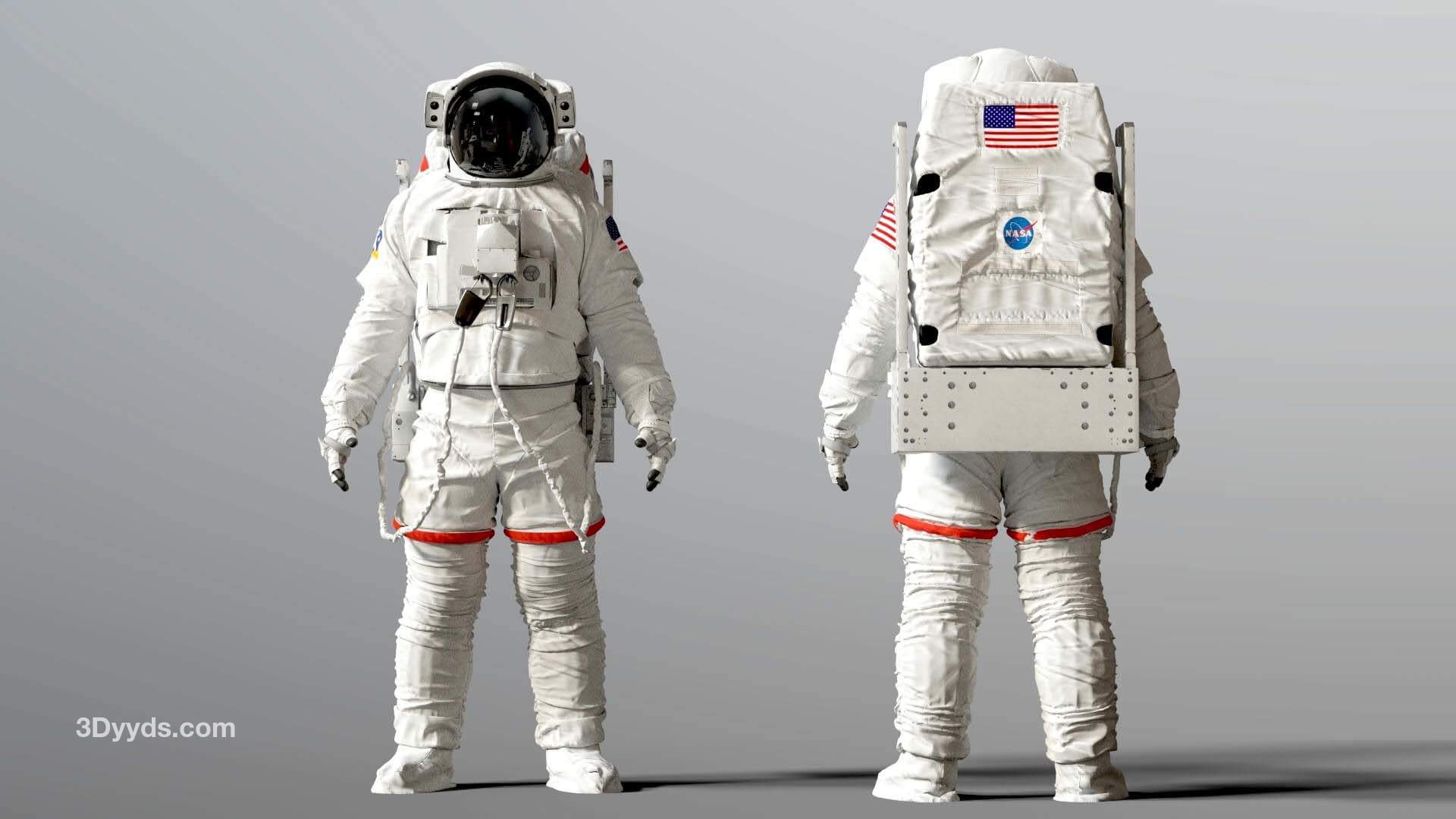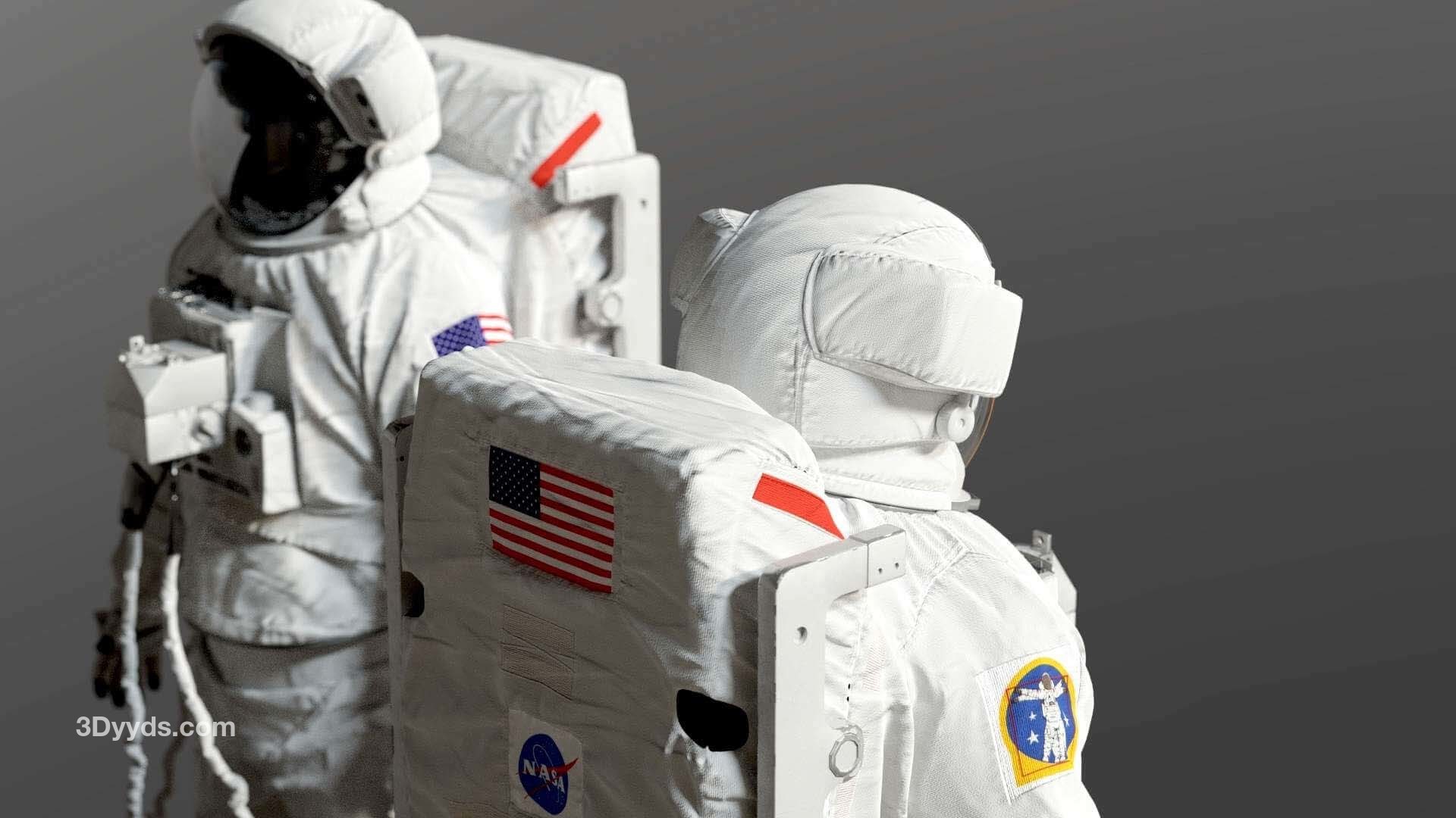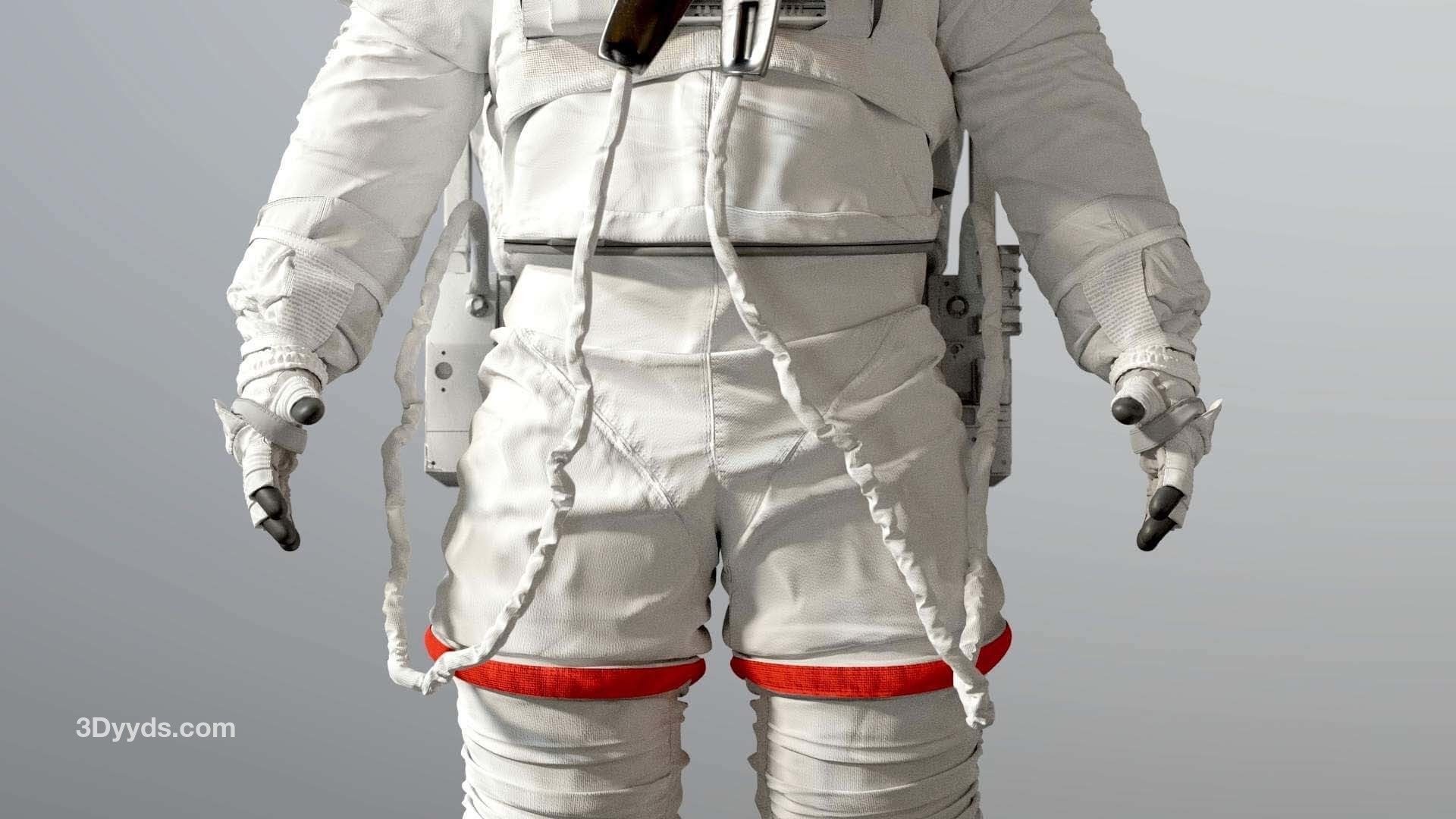 高精度建模的 3D 舱外移动装置 ( EMU ) 太空宇航员服。包括 Simplified Aid for EVA Rescue ( SAFER )。这是我找到的几个参考资料之间的混合。该模型已在 3D High Poly 中准确重建,以保留每一个细节。
