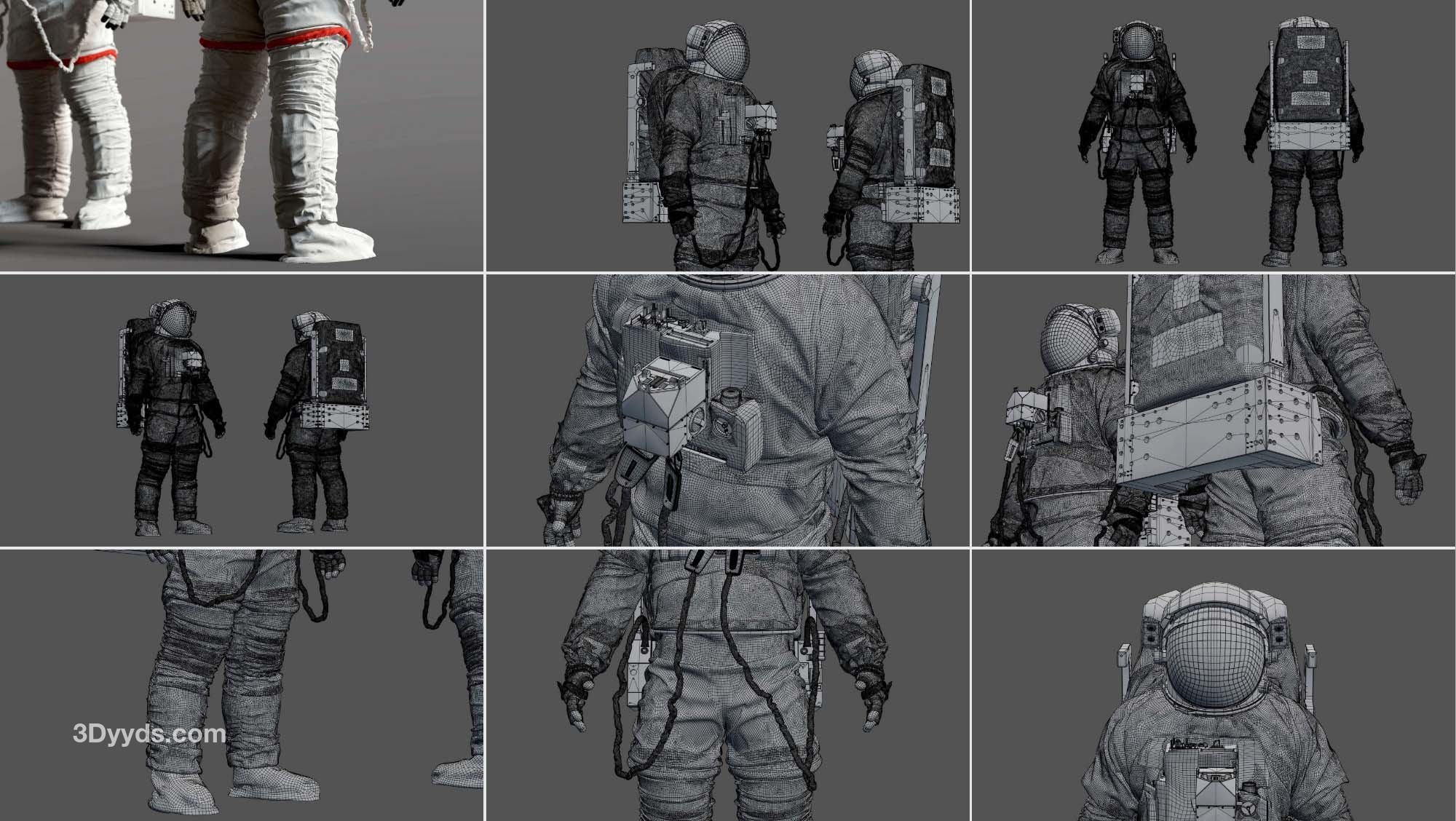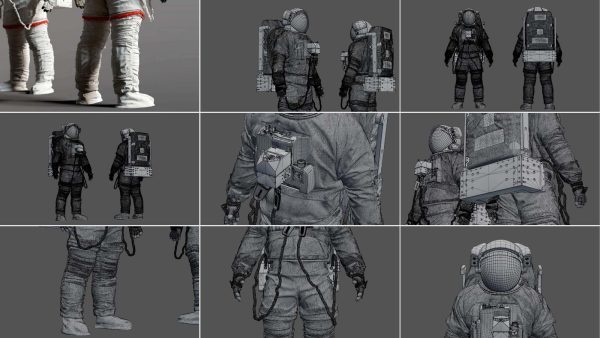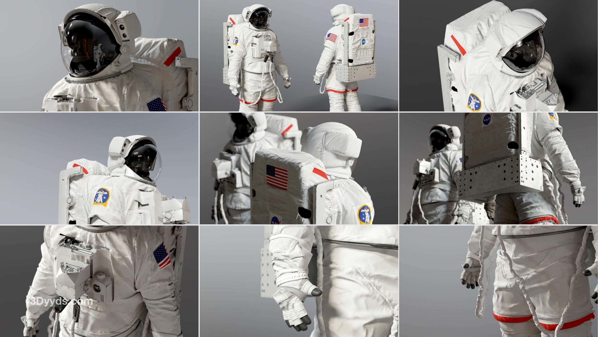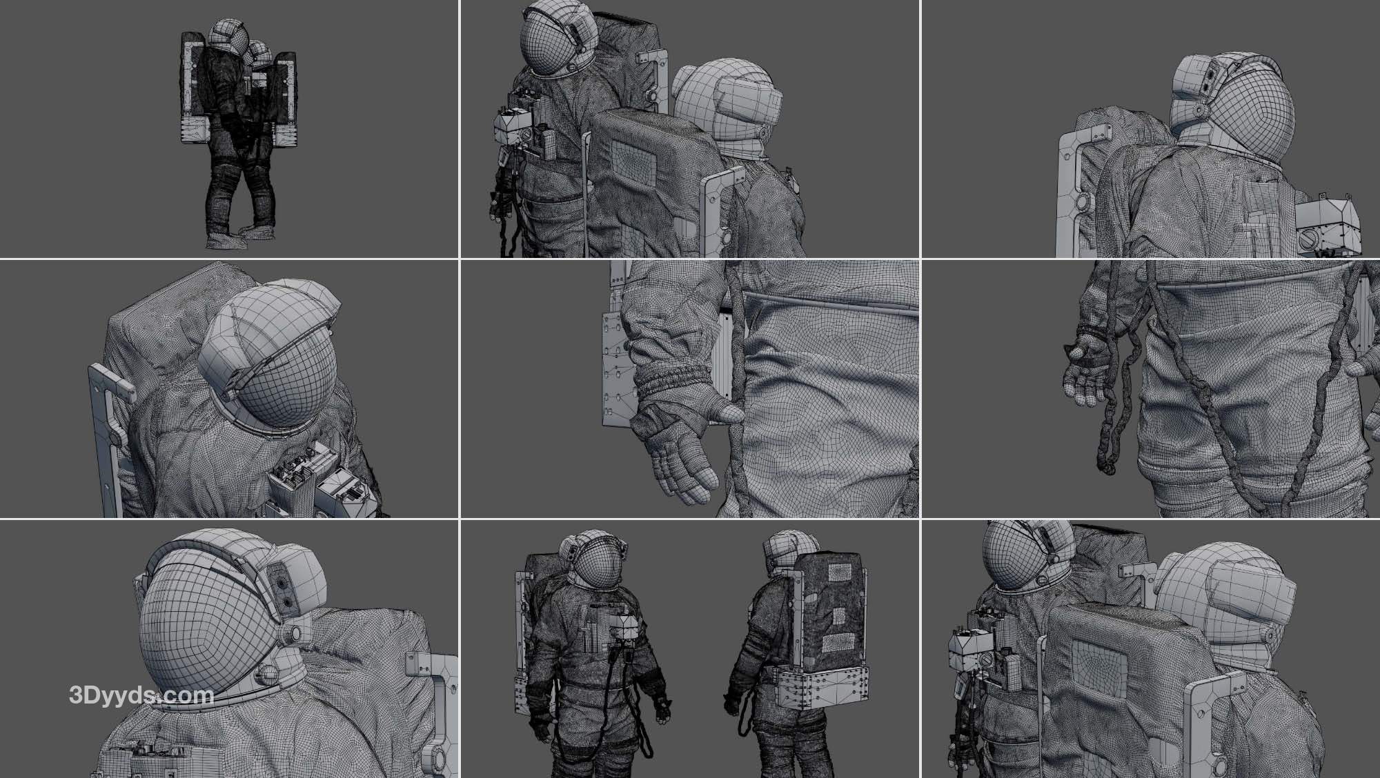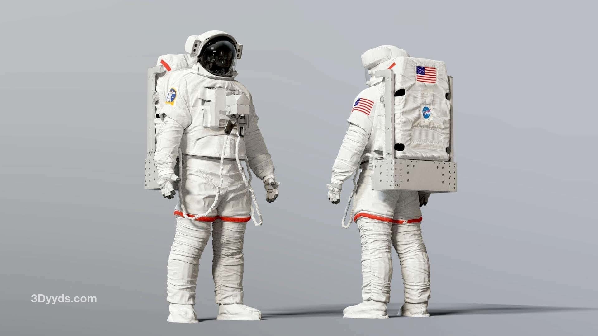 高精度建模的 3D 舱外移动装置 ( EMU ) 太空宇航员服。包括 Simplified Aid for EVA Rescue ( SAFER )。这是我找到的几个参考资料之间的混合。该模型已在 3D High Poly 中准确重建,以保留每一个细节。