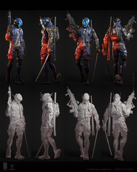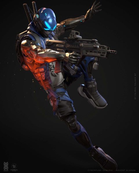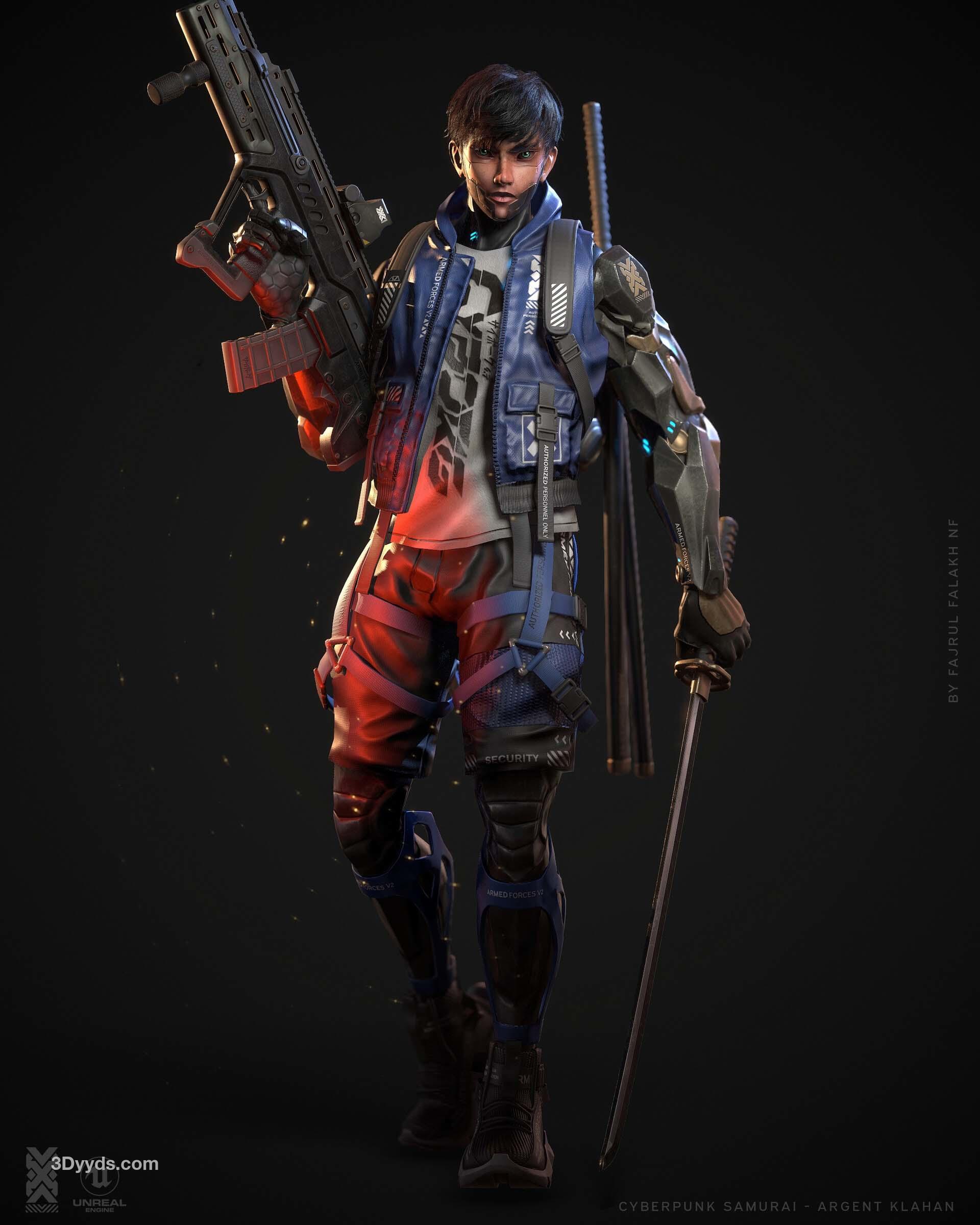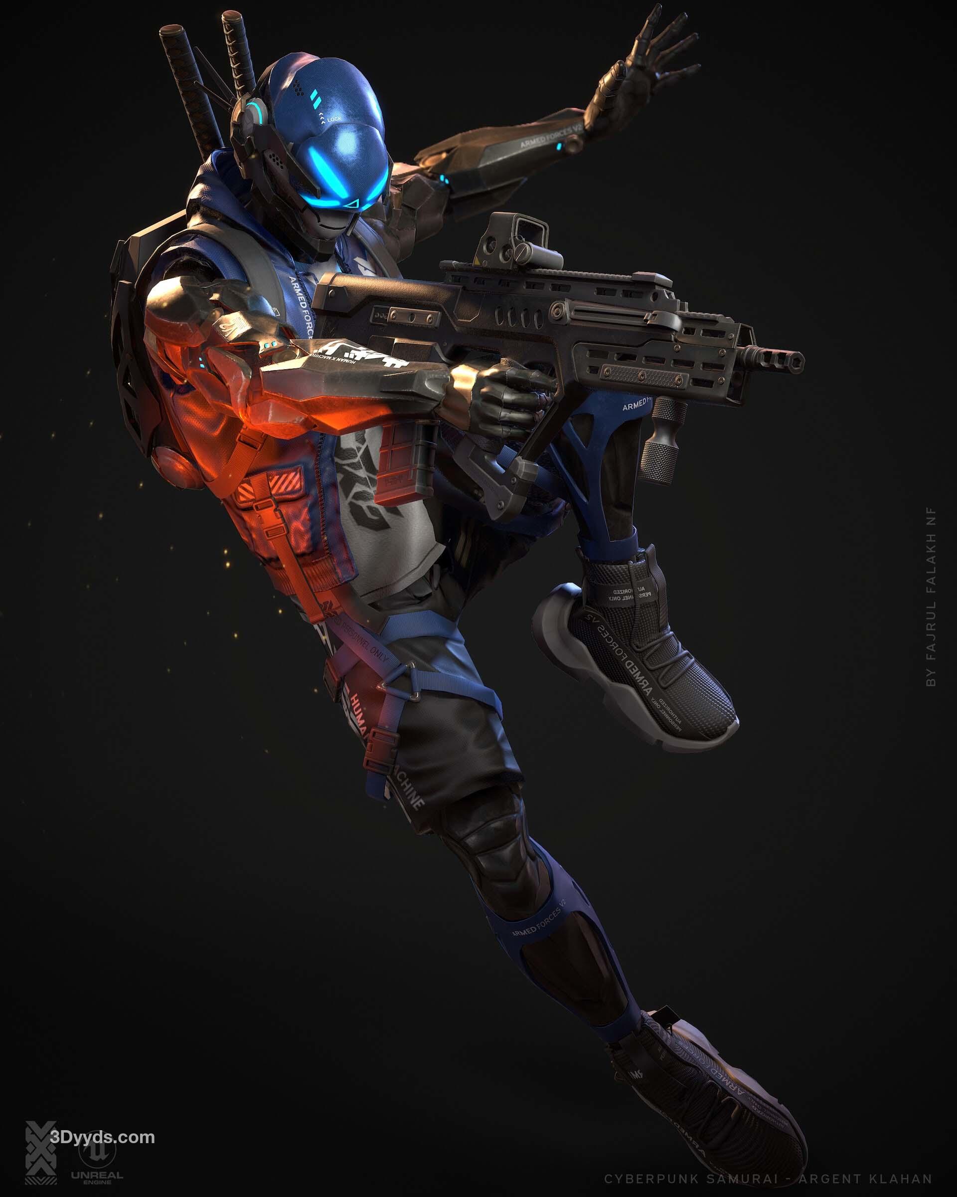赛博朋克人物枪手maya游戏角色模型杀手max未来战士FBX建模3D素材C4D