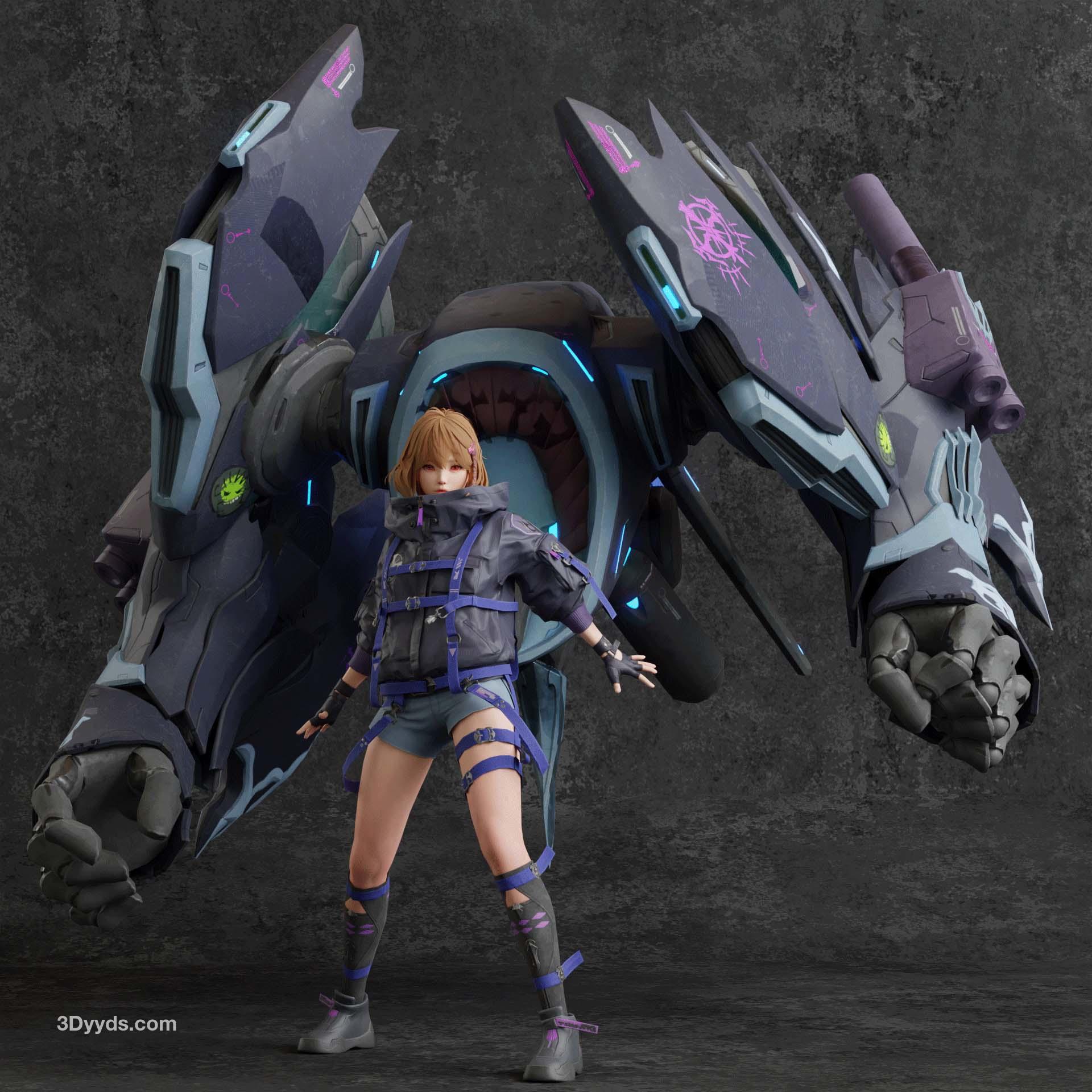 Blender卡通人物3D模型PBR角色动漫可爱少女战士带骨骼绑定CG素材