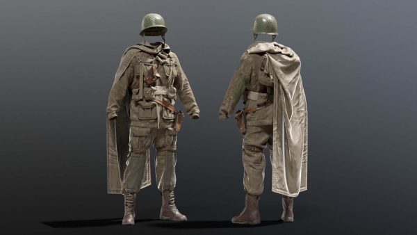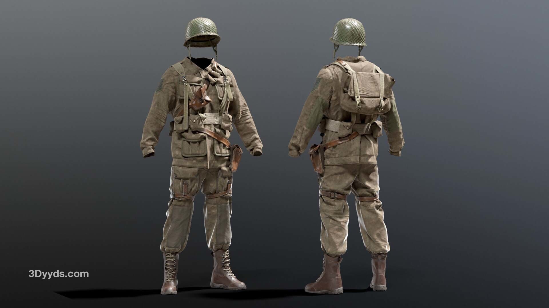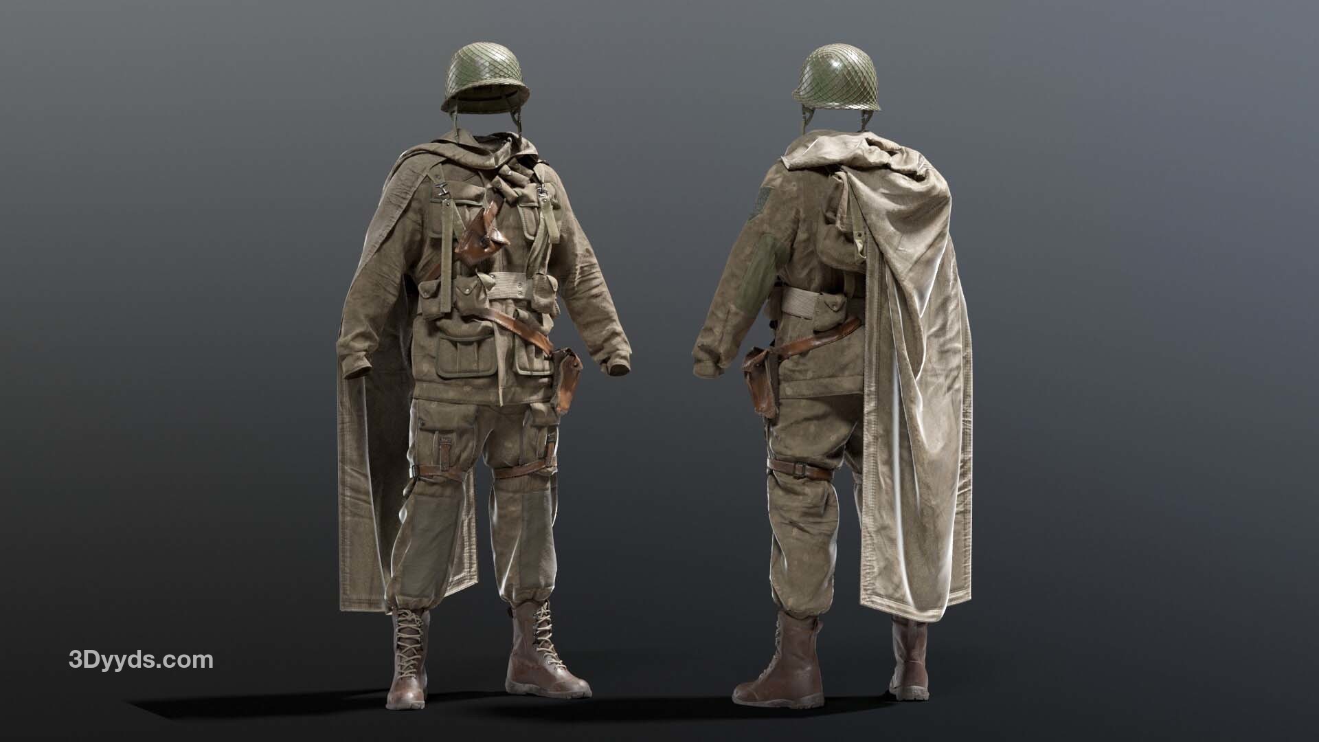美国-德国 二战士兵 + 斗篷3D士兵二战西装模型。