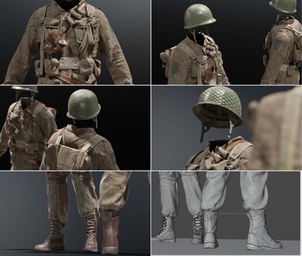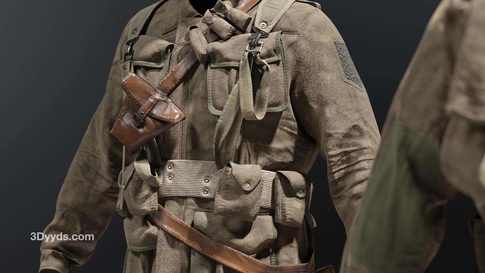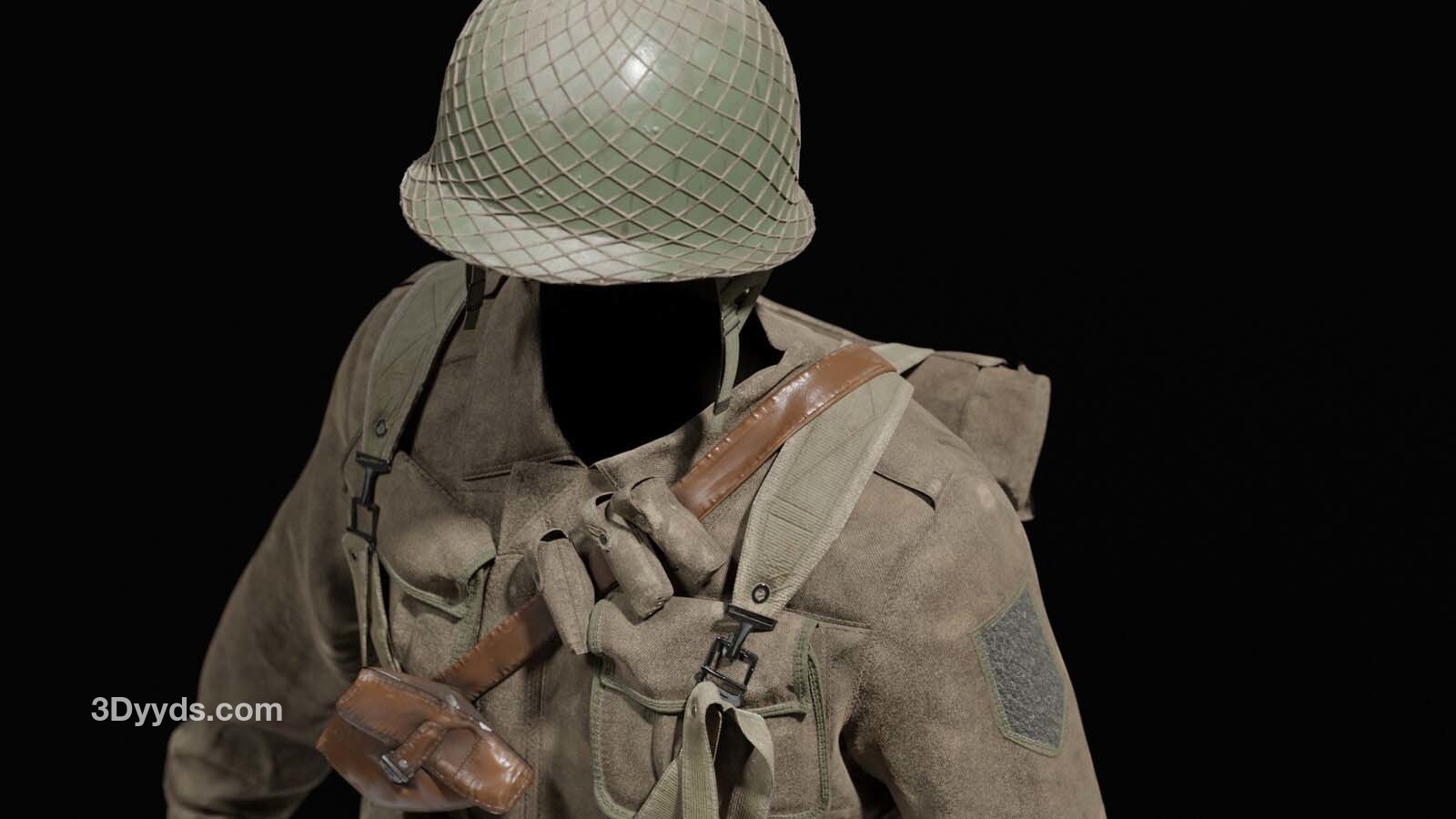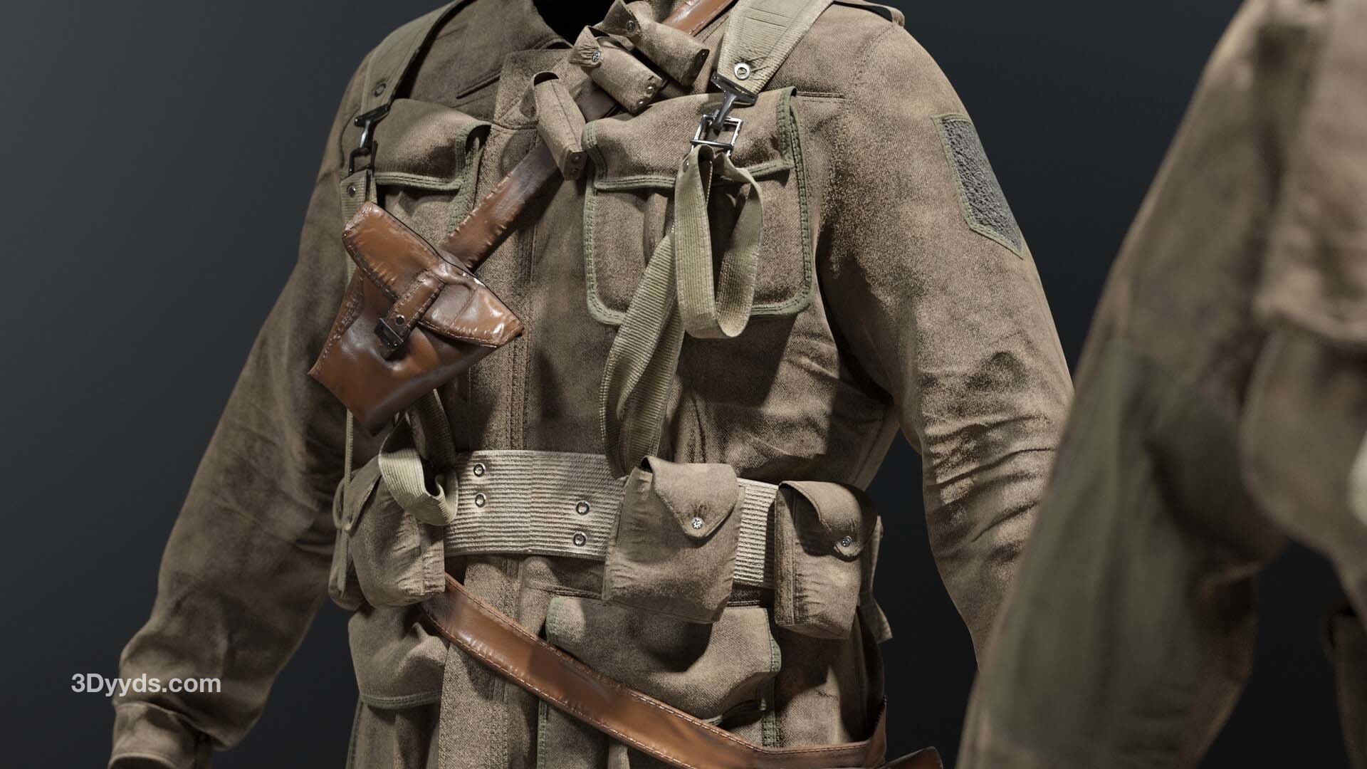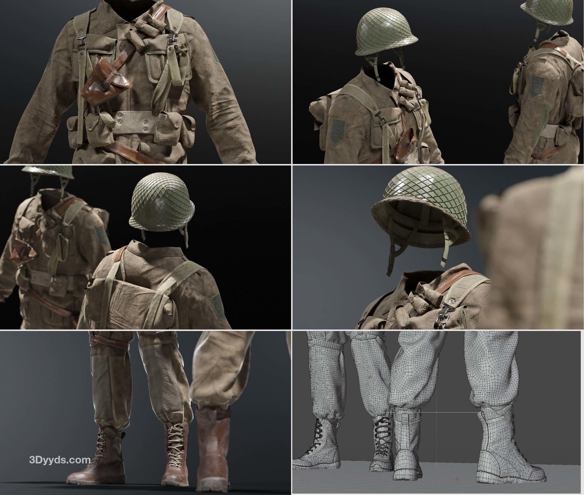 Blend二战士兵服装3D模型MAX写实PBR素材OBJ格式FBX建模渲染