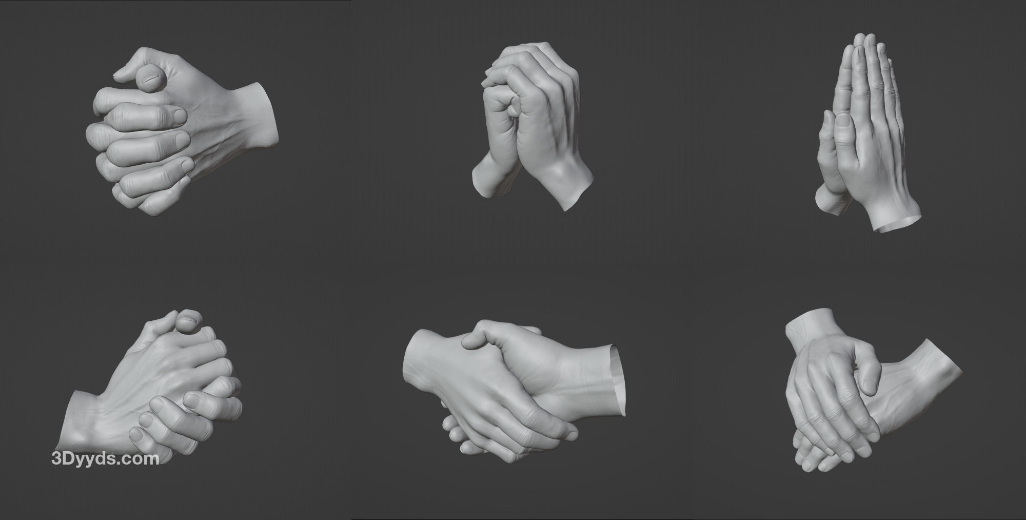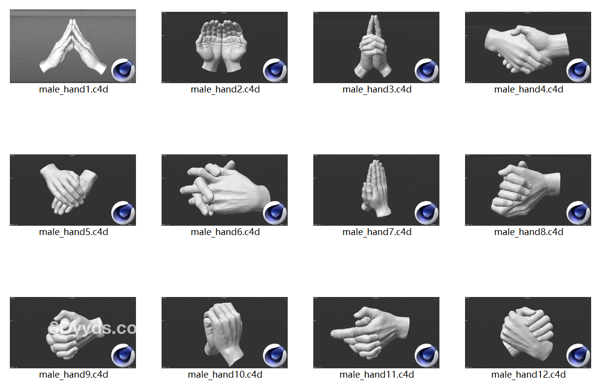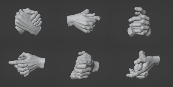 C4D男士扫描手部手掌手势握手3D模型FBX素材OBJ格式Blend建模ZTL雕刻