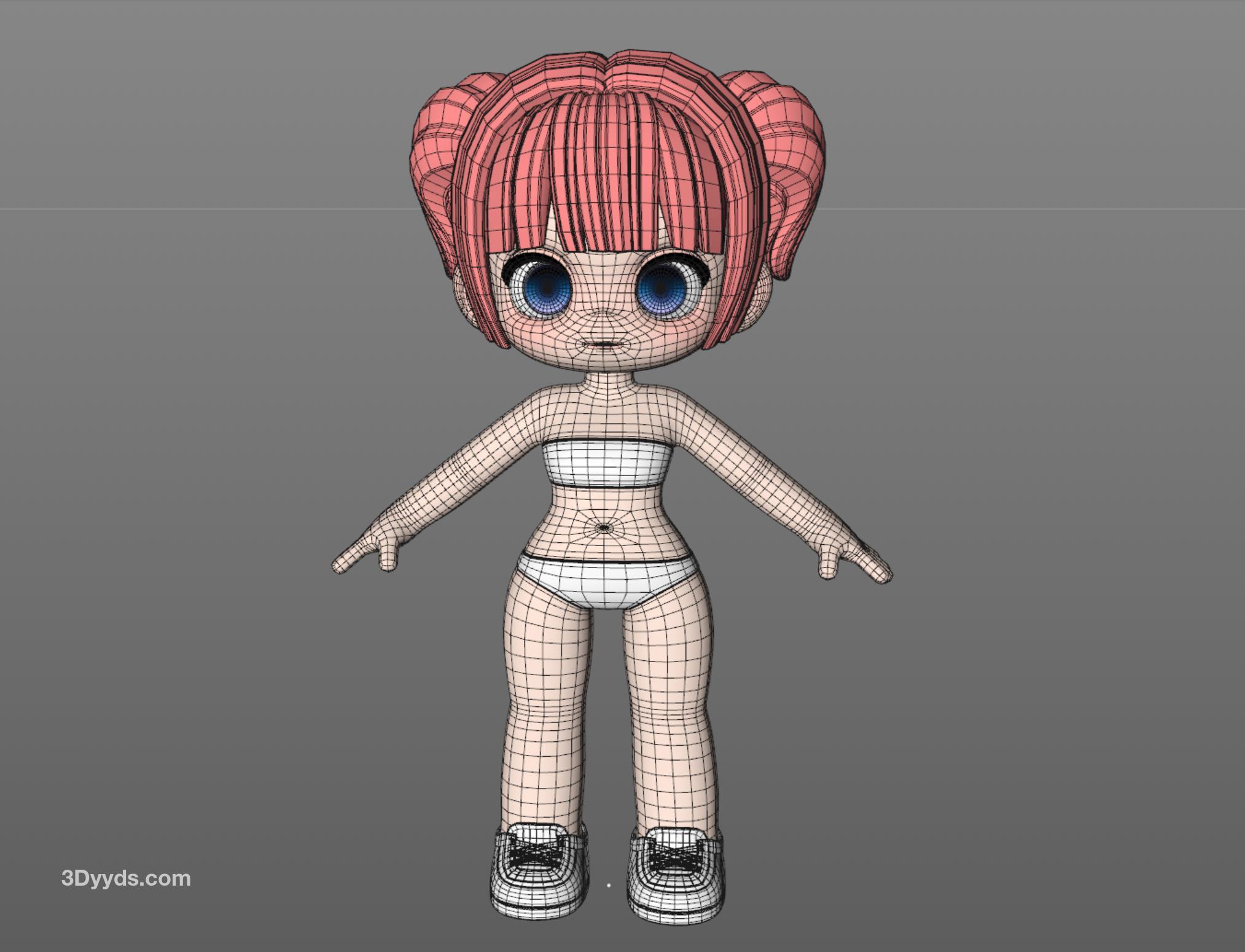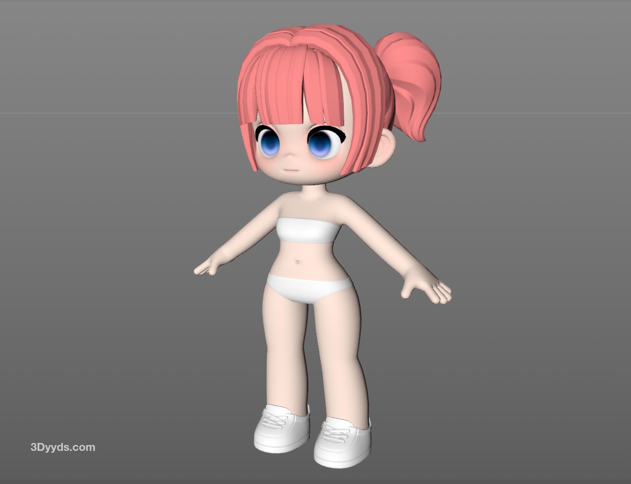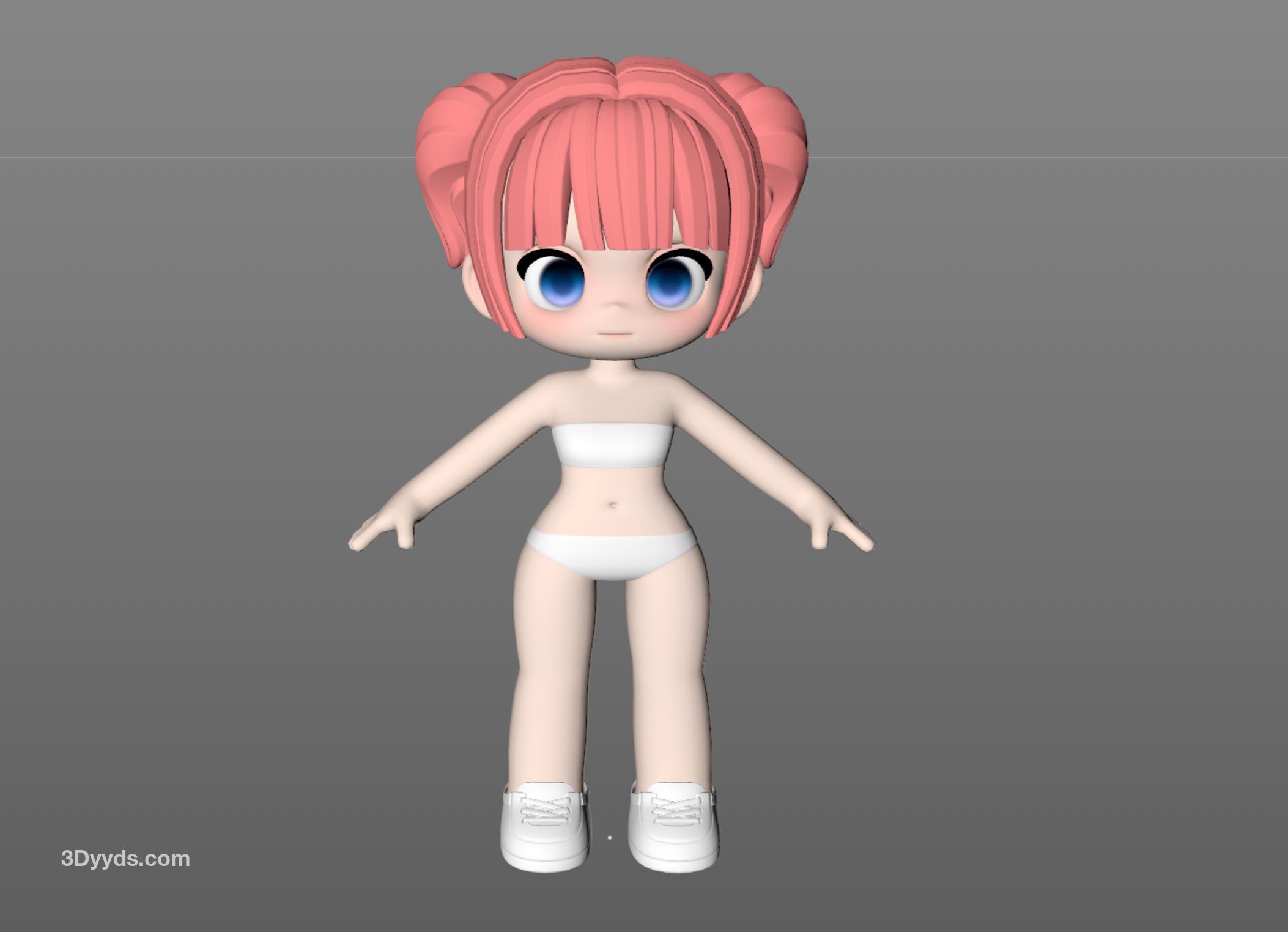 卡通可爱Q版小女孩3D模型Blender人物建模C4D-FBX-OBJ-MAX