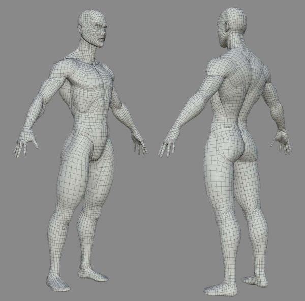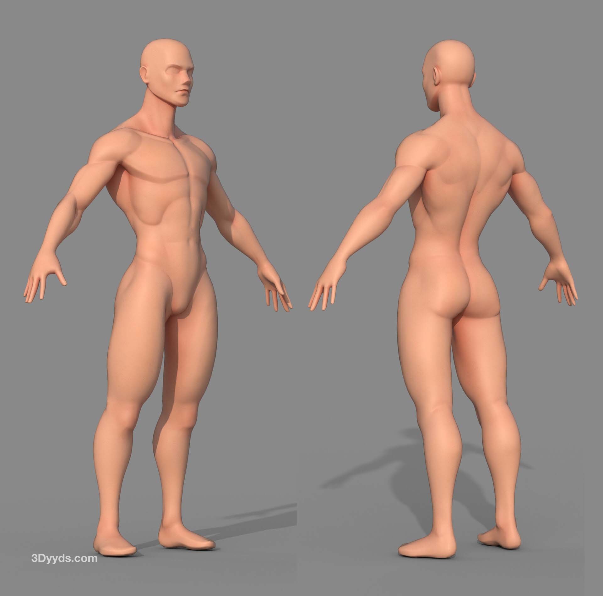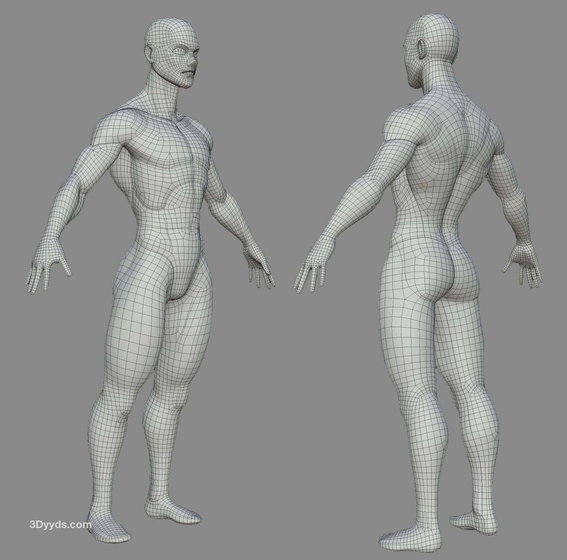 风格化男性基础网格模型3D动漫人物角色C4D-Blender-MAX低模OBJ