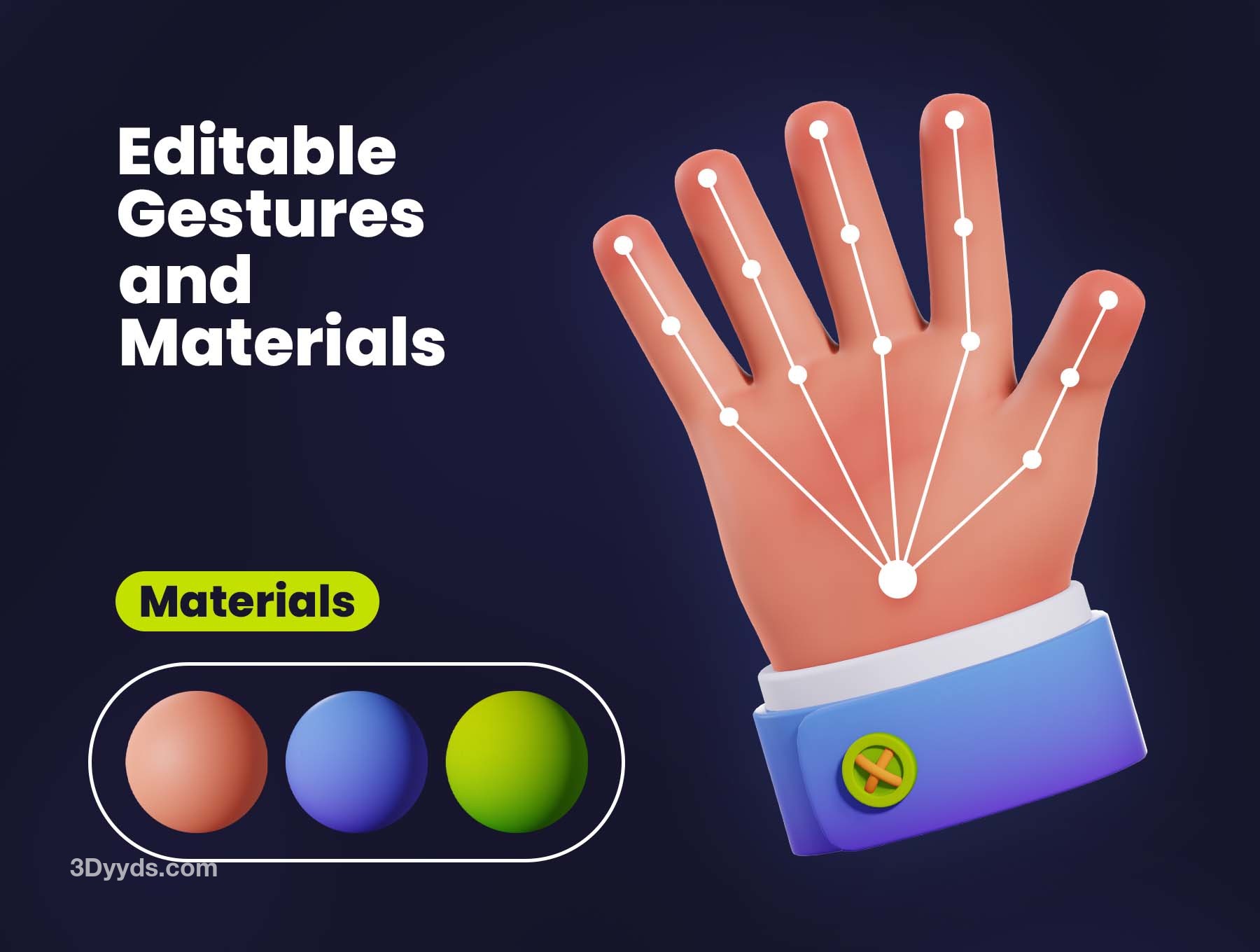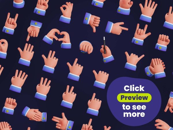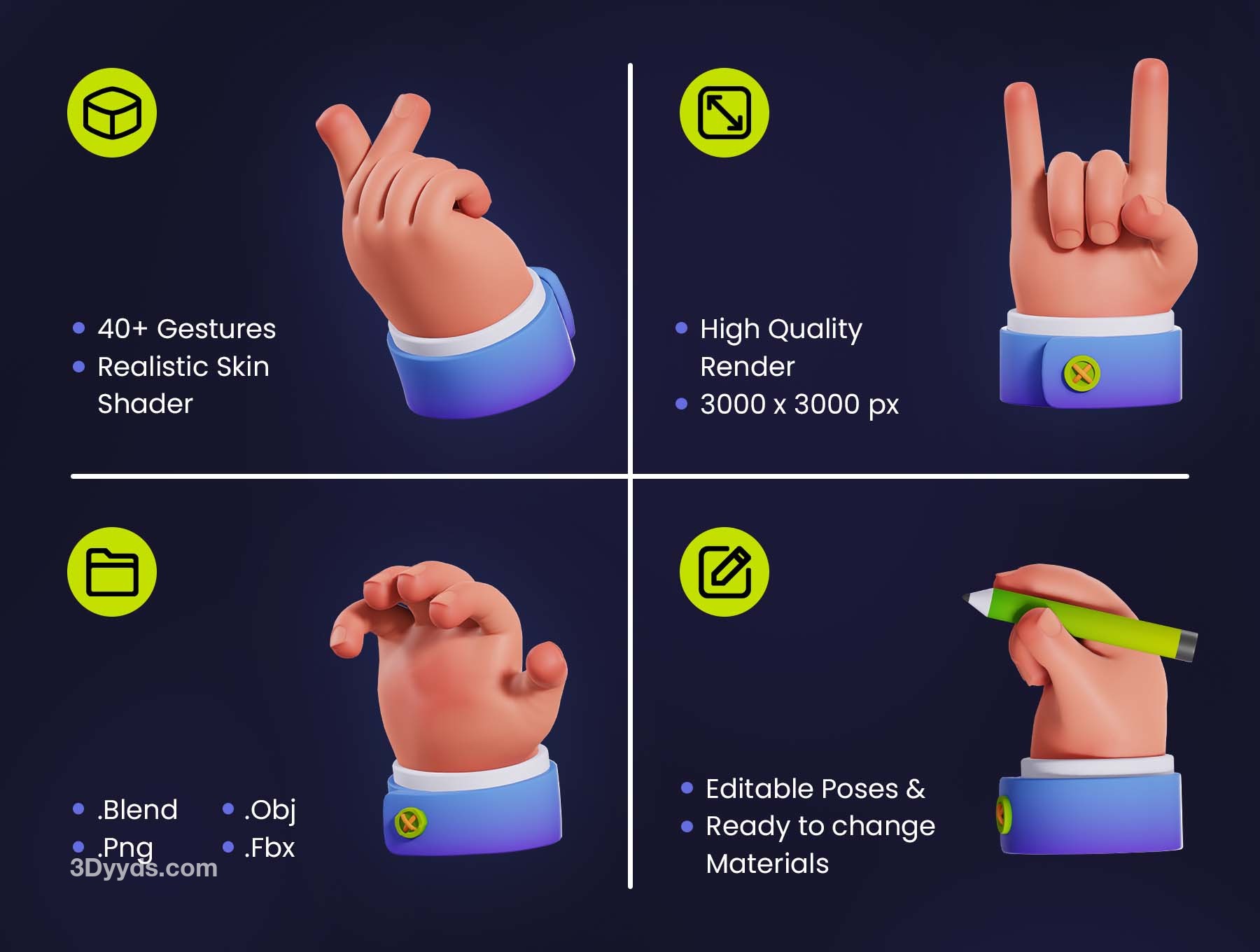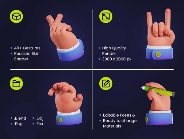 41个卡通3D手势ICON图标C4D模型PNG手指FBX握手比心拳头OBJ