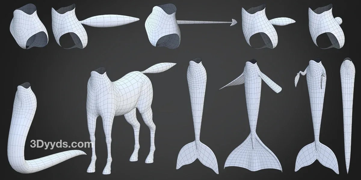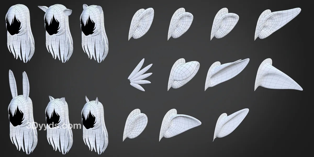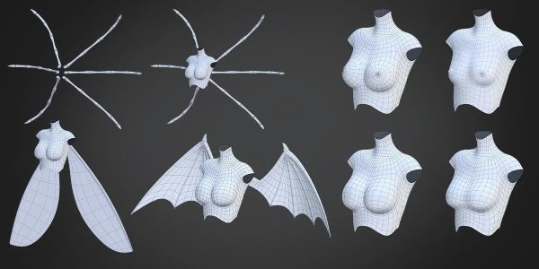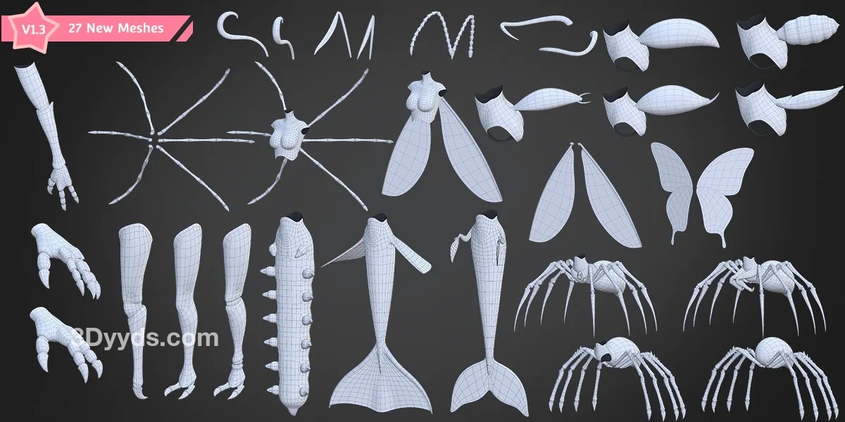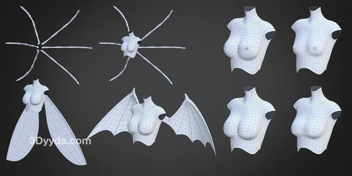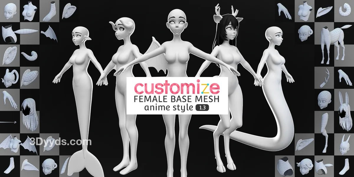 动漫风格3D女性角色模型妖精怪物自定义拼装基础网格