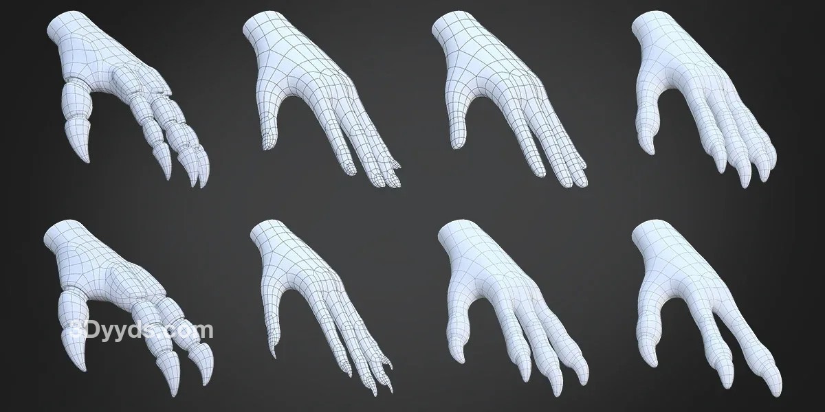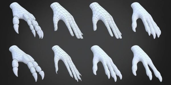 多边形数量少(适合游戏和雕刻后的重新拓扑)
