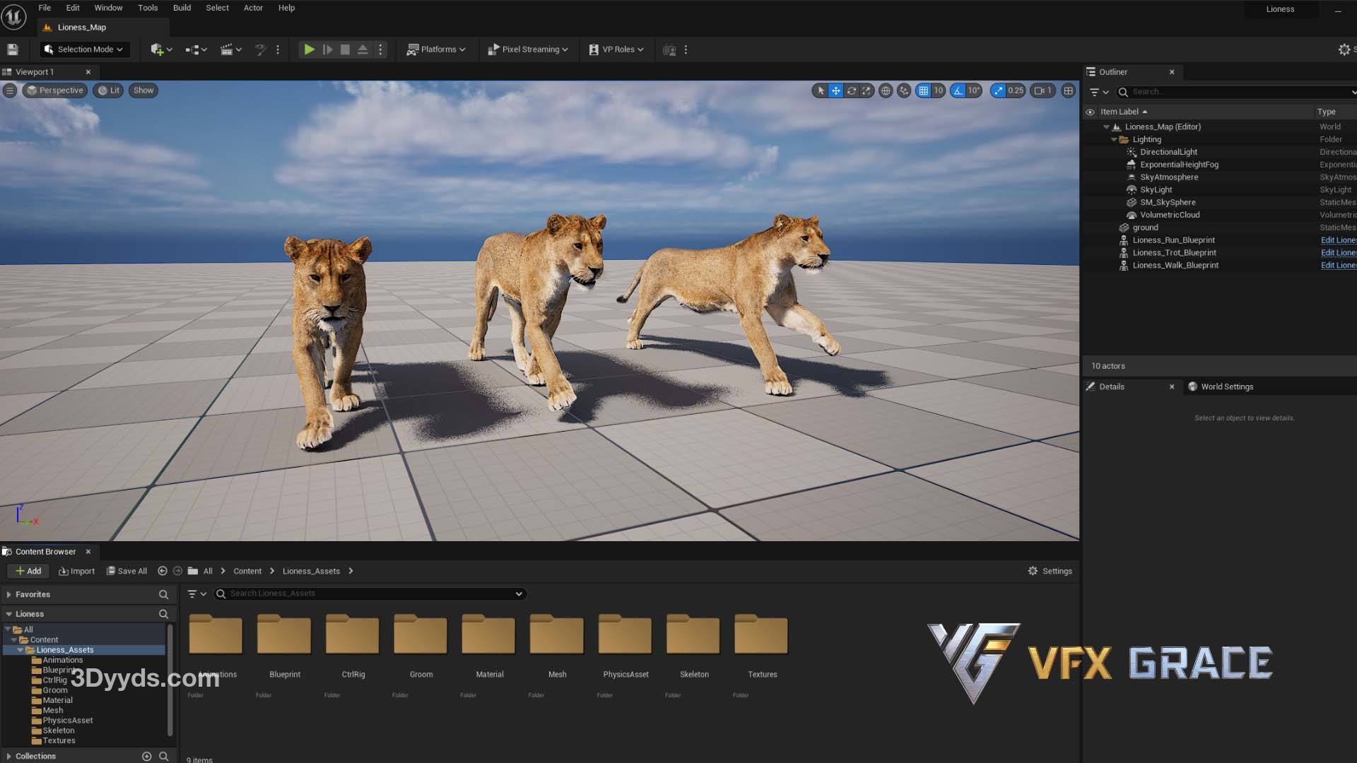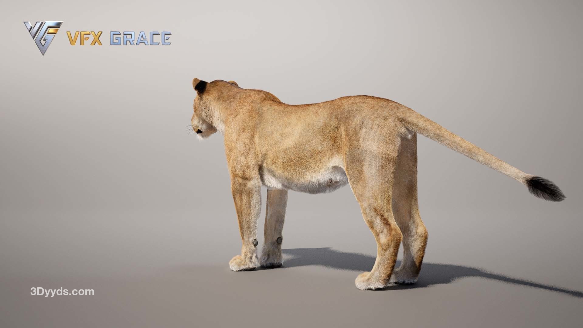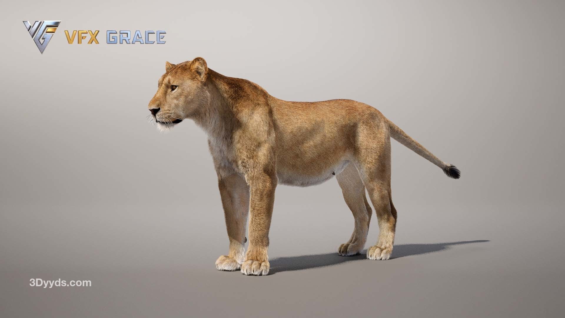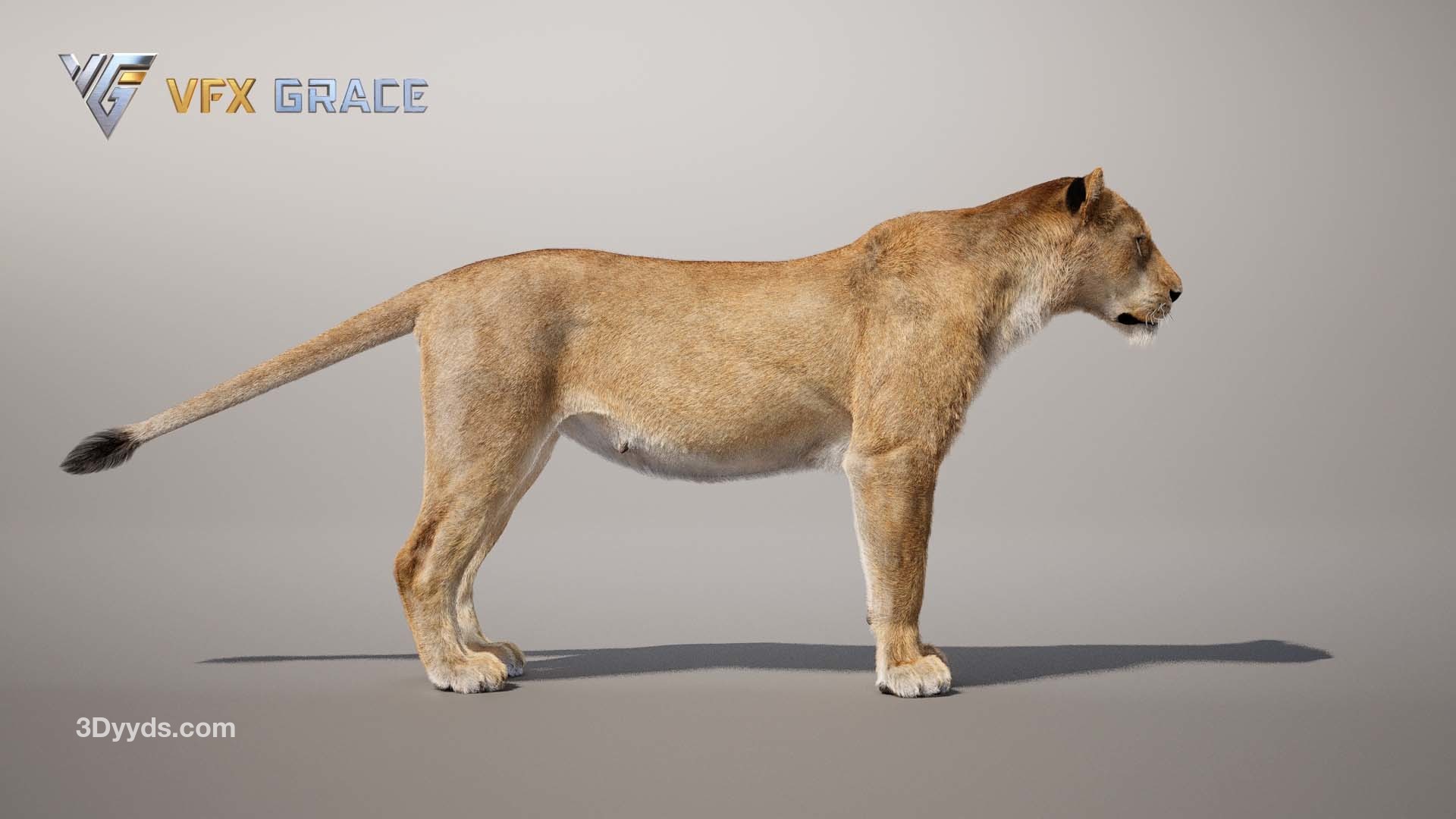 呈现高度逼真的雌狮角色资产,专为虚幻引擎5.2及更高版本制作