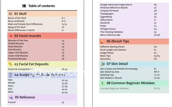 - 可作为 3D 美术爱好者系统学习角色头部创作的入门教材。