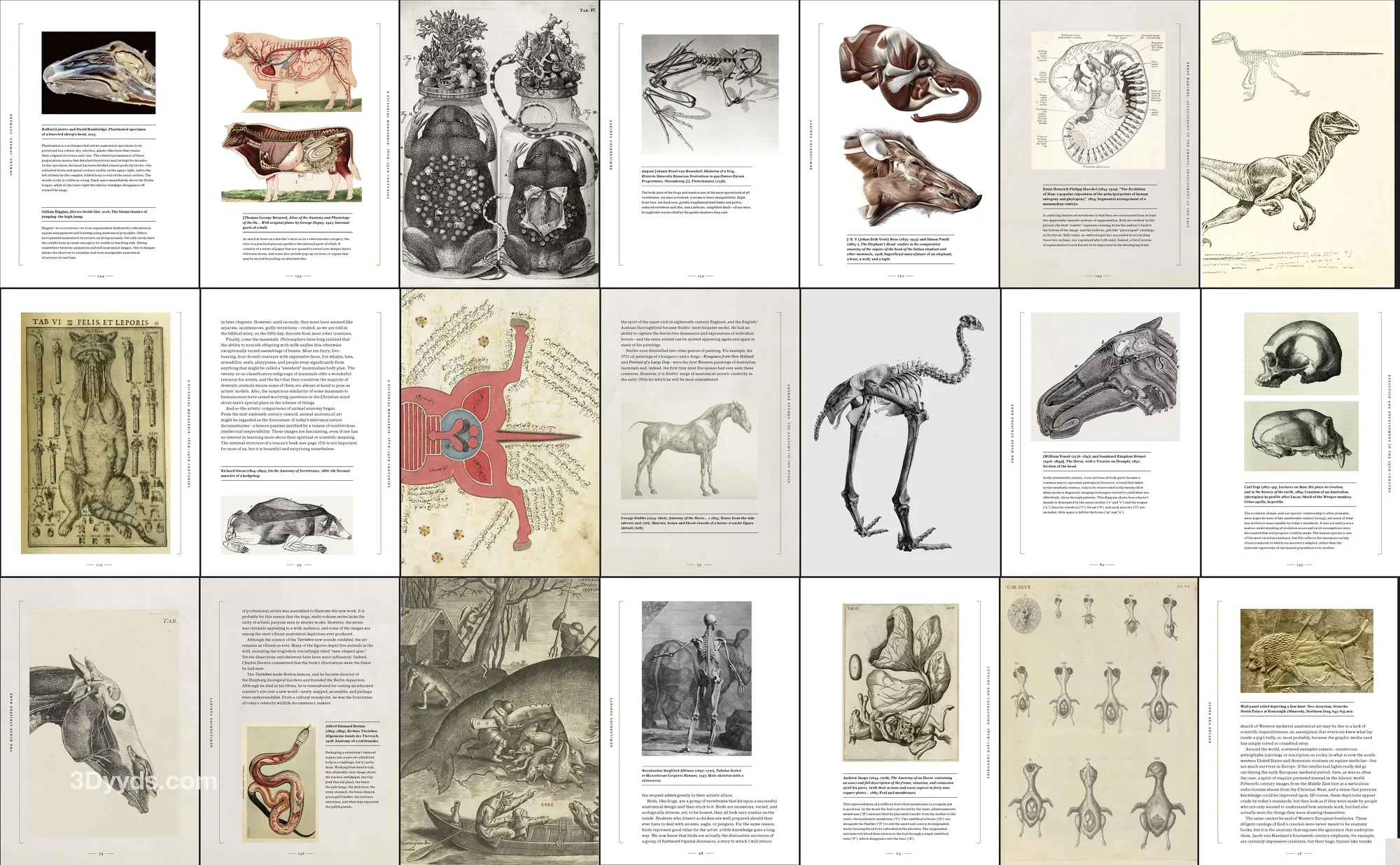 这是一部图文并茂的动物解剖学艺术史汇编,涵盖了从古代到现代的动物解剖学发展历程。