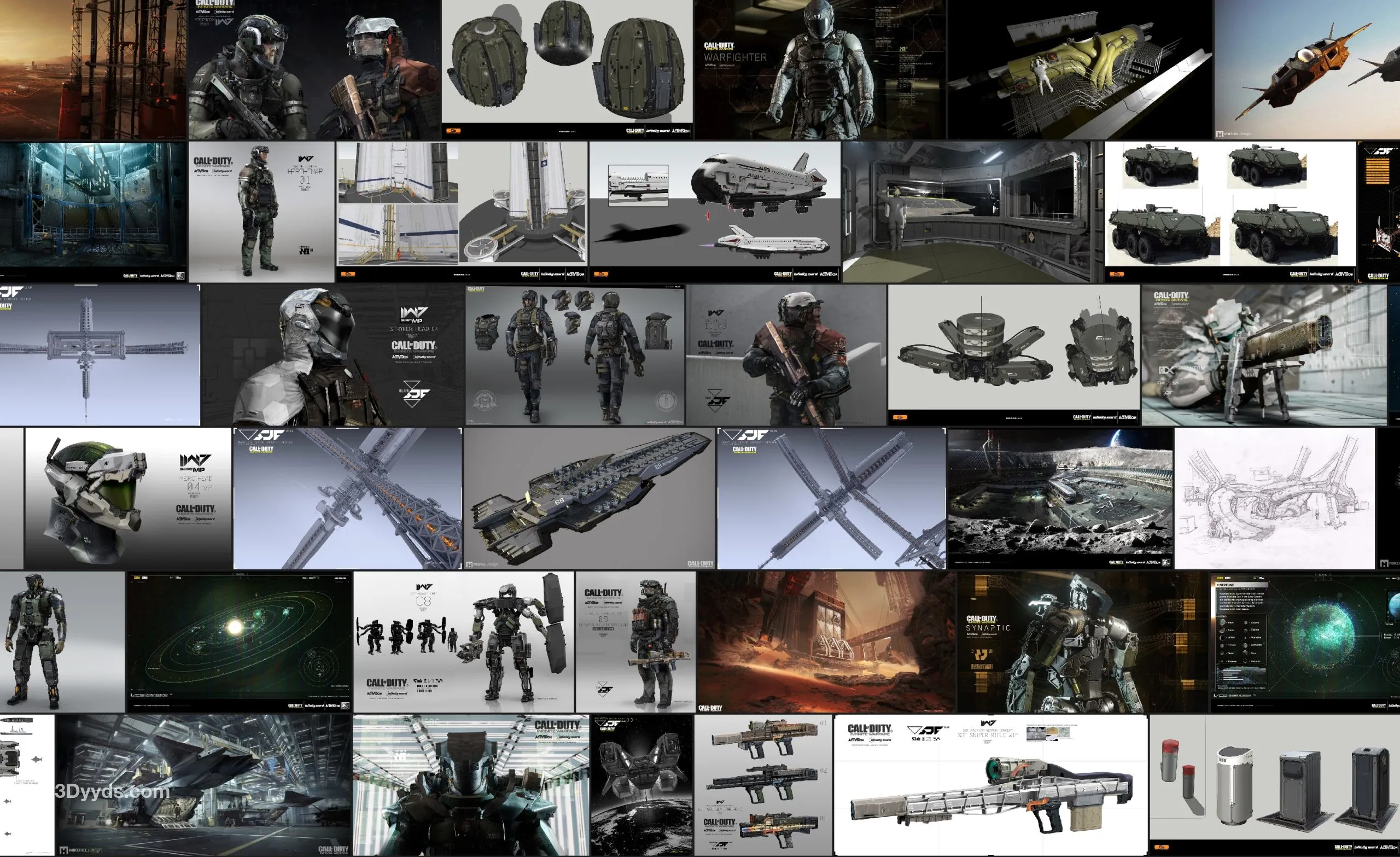 《使命召唤:无限战争》科幻机械原画设定图包含了游戏中多种未来战争载具、武器及机械装备的设计草图与概念图。这些原画不仅展现了极具冲击力的科幻美学风格,还对机械的结构细节、色彩搭配和功能设定进行了细致刻画,为游戏的世界观构建和视觉呈现提供了重要的设计依据,是科幻游戏美术设计爱好者不可错过的参考资料。