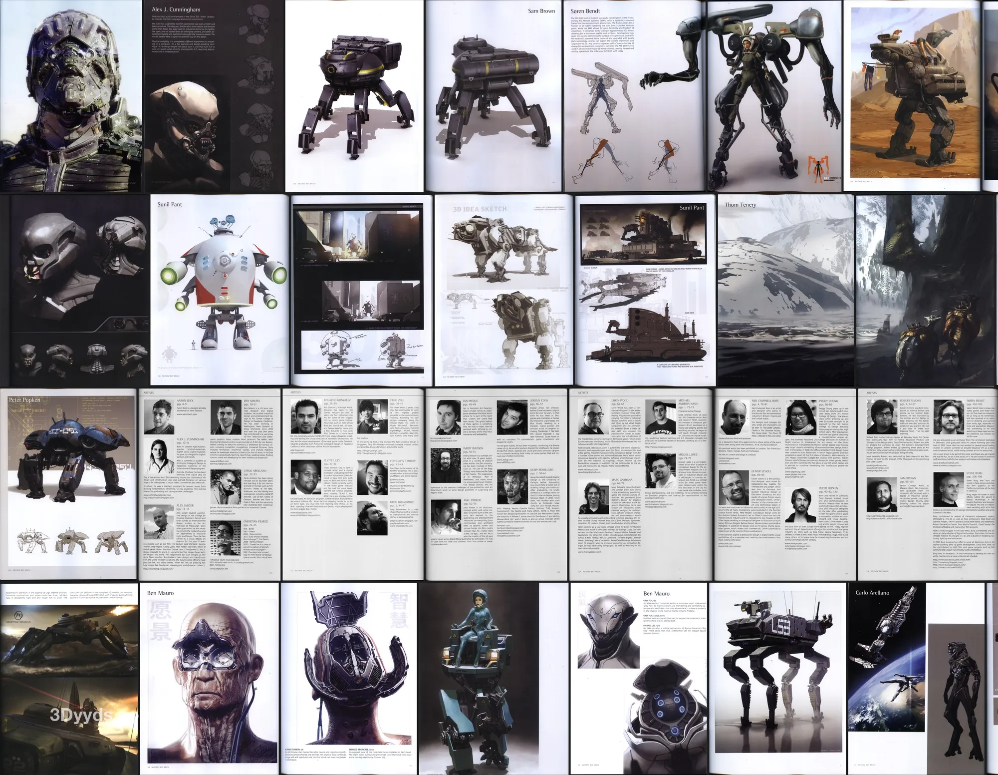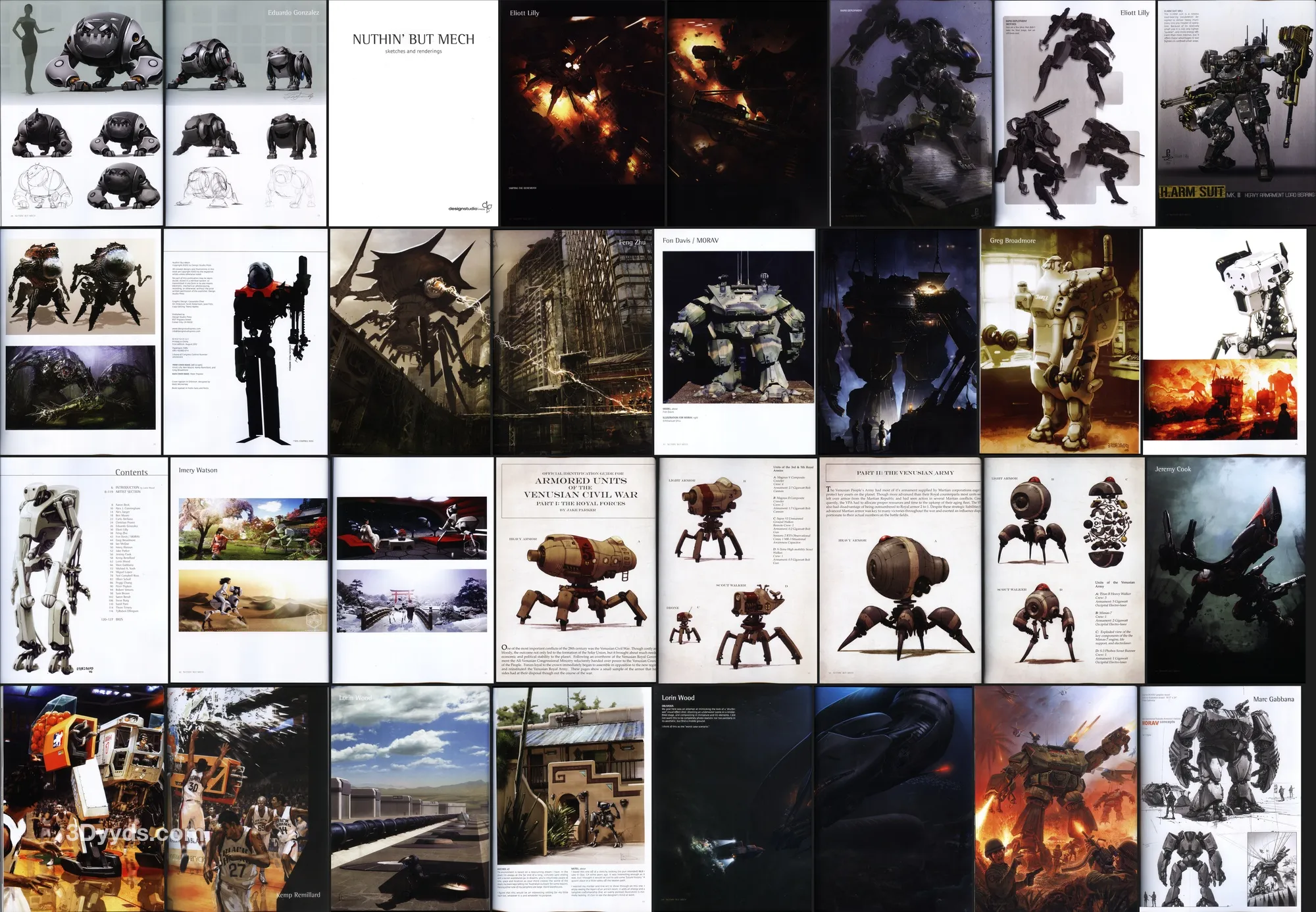 《Nuthin But Mech机械科幻设计作品集》汇聚了大量极具未来感的机械科幻设计作品,涵盖了各种风格的机械机甲、科幻载具、机械生物等设计。这些作品在造型上融合了硬核的机械结构与富有想象力的科幻元素,线条硬朗且细节丰富,色彩搭配既体现了金属的冷峻质感,又通过独特的配色方案展现出科幻世界的绚丽与神秘。无论是用于游戏概念设计、影视美术设定,还是科幻主题的艺术创作参考,都具有极高的价值,为相关领域的创作者提供了丰富的灵感源泉。