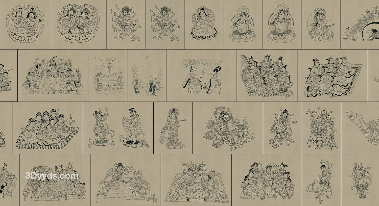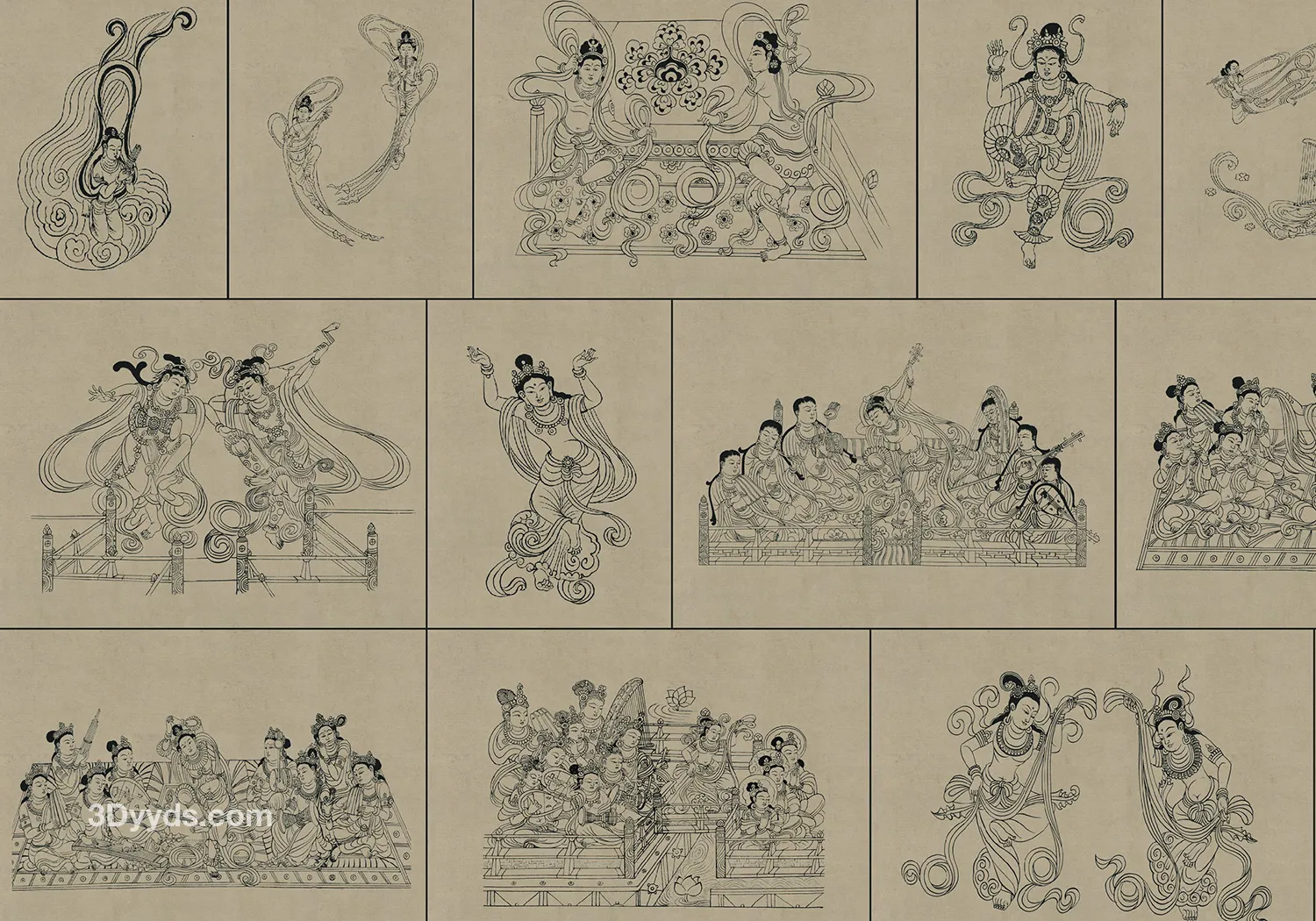 这套156幅敦煌线描稿高清图片,涵盖了敦煌壁画中经典的图案花纹,线条流畅细腻,细节丰富。每一幅线描稿都展现了敦煌艺术的独特魅力,可广泛应用于艺术创作、设计参考、文化研究等领域,为相关从业者和爱好者提供了宝贵的素材资源。无论是用于传统纹样的学习临摹,还是现代设计的灵感启发,都具有极高的价值。