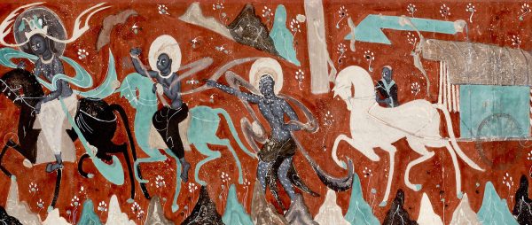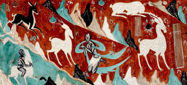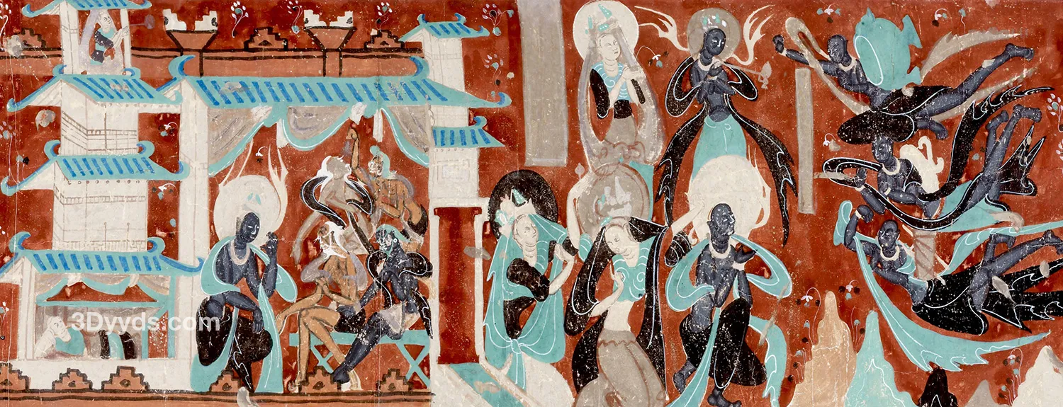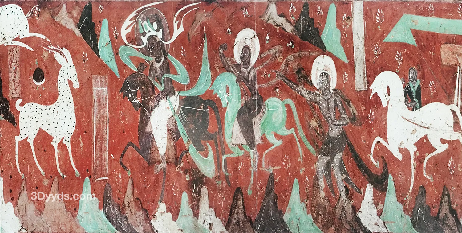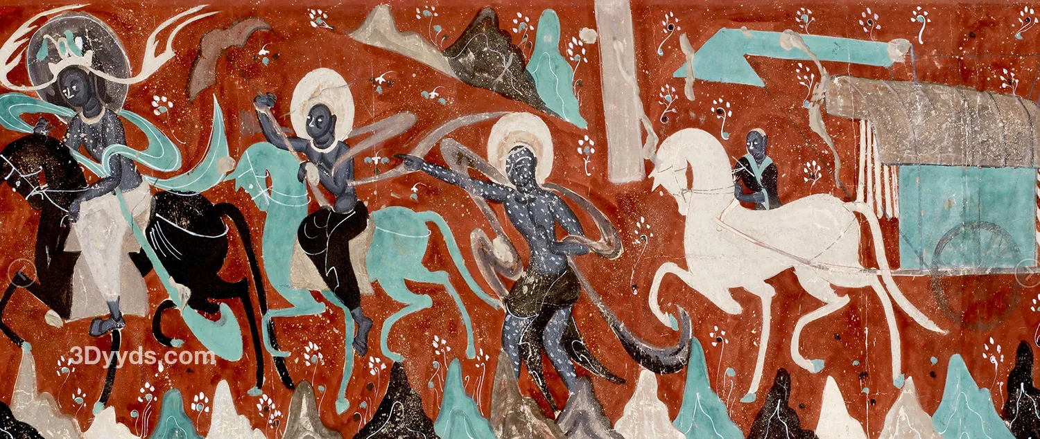 这是一幅九色鹿原壁画的高清打印免抠图资源。图片源自经典的九色鹿壁画,色彩丰富,细节清晰,已进行高清处理和免抠处理,方便用户直接应用于各类设计场景,如文创产品设计、装饰画制作、数字媒体创作等。