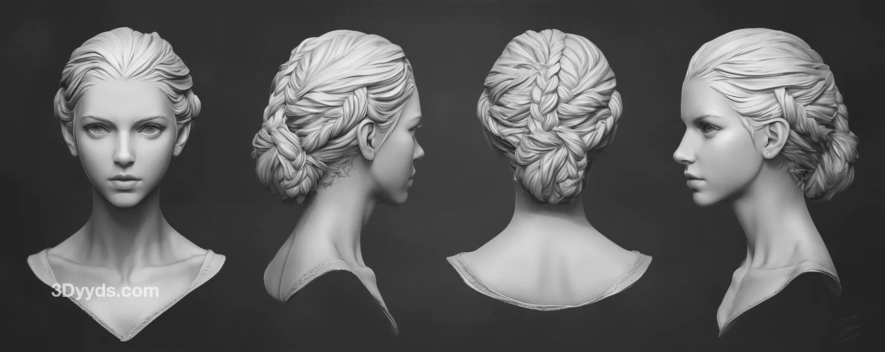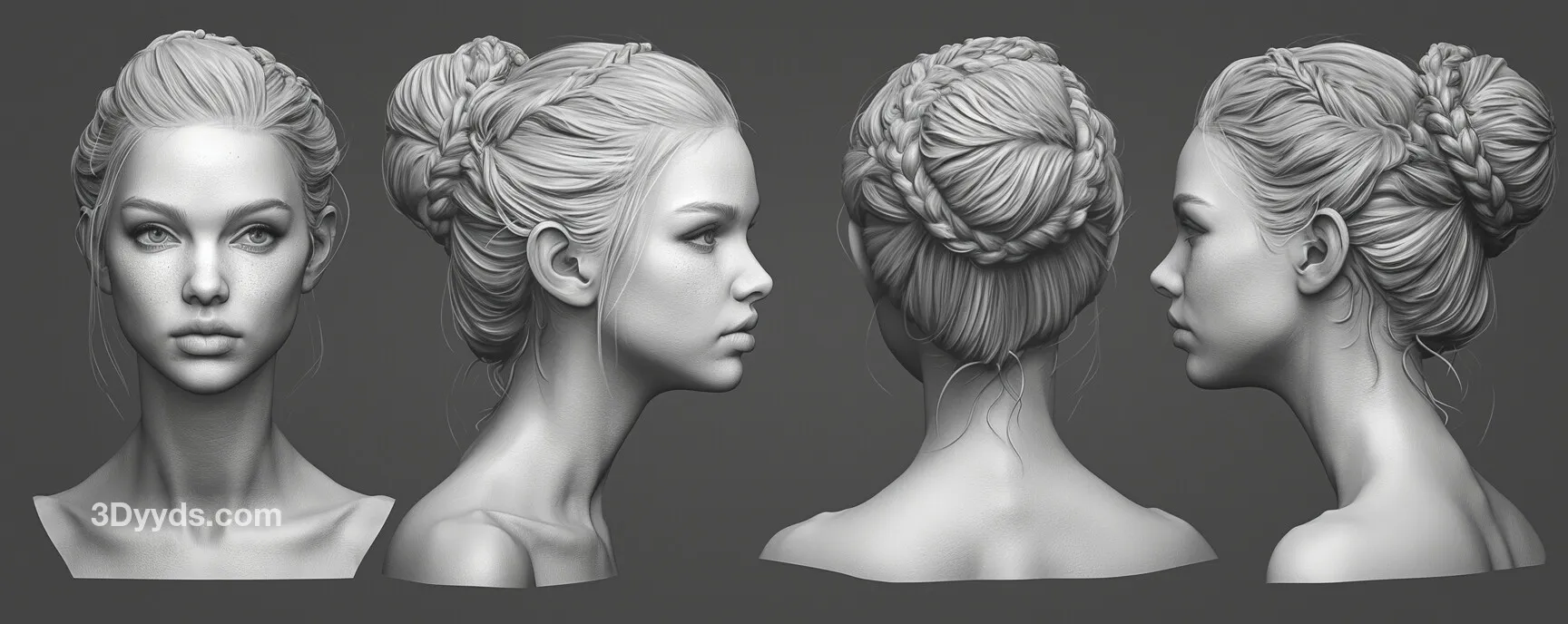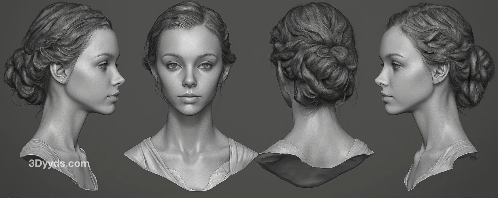 本参考图集适用于角色设计、影视级角色建模、游戏角色开发、数字雕塑练习、肖像艺术创作以及任何需要高质量女性头部参考的3D艺术项目。