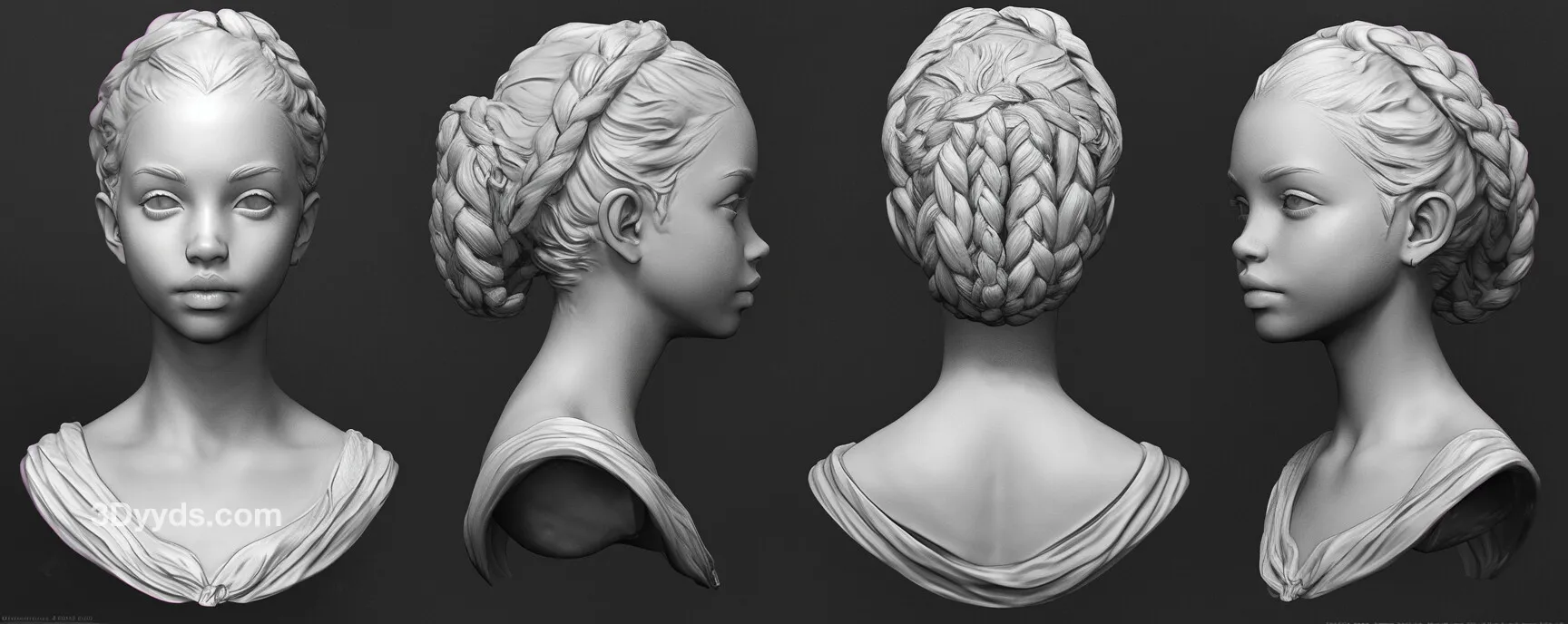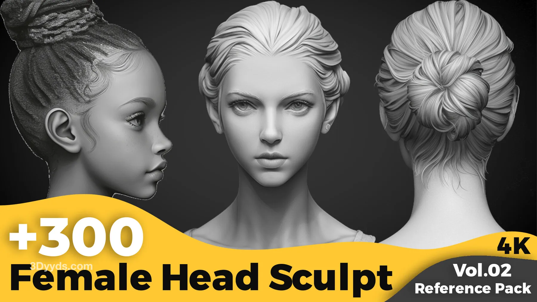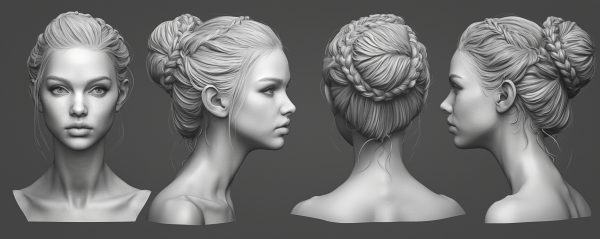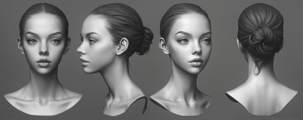 本资源包含超过300张AI生成并精心编辑的4K女性头部参考图像,专为数字雕刻艺术家设计,提供多角度、高清晰度的视觉参考,是角色头部雕刻的绝佳辅助素材。