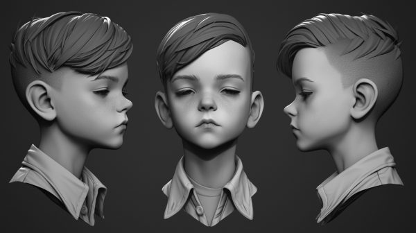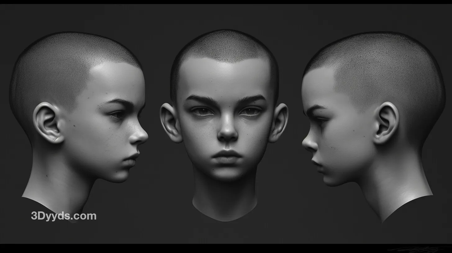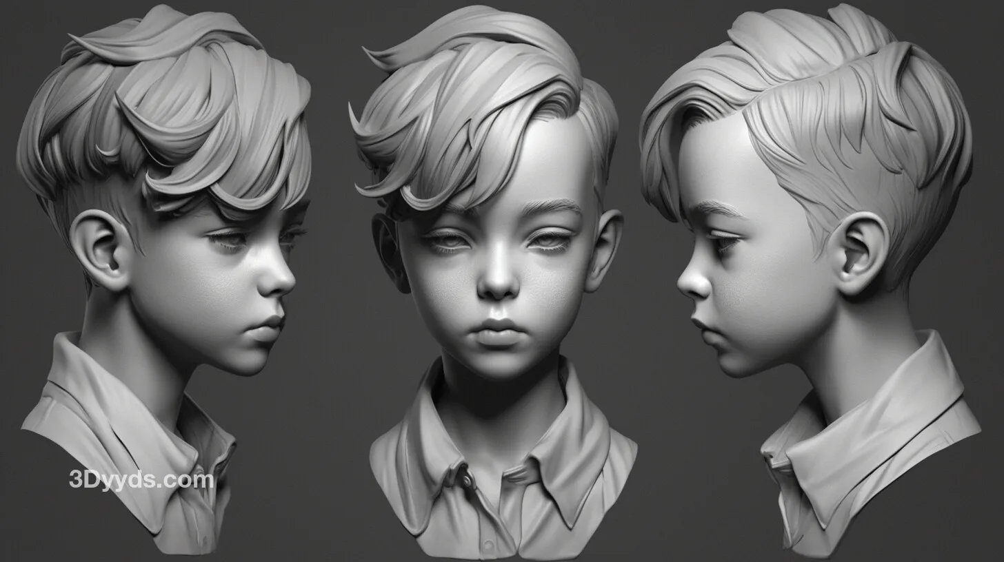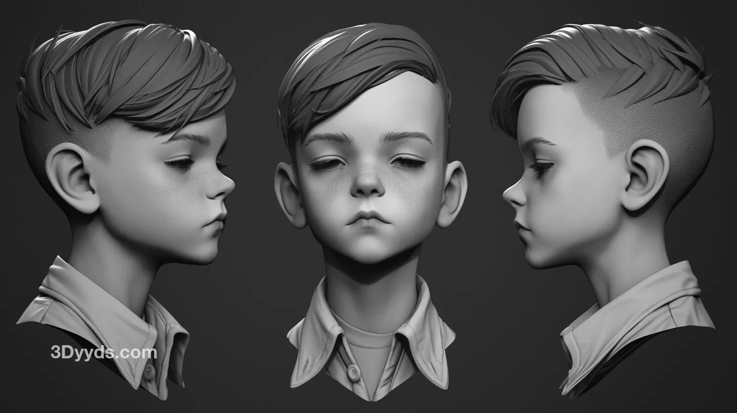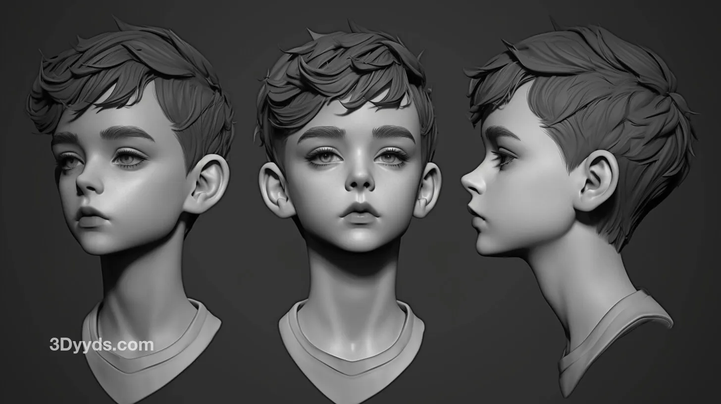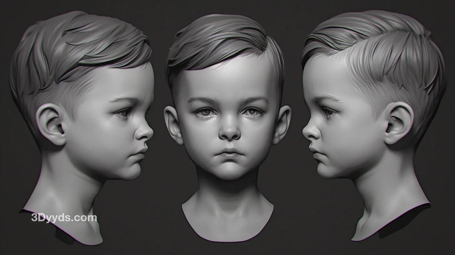 这套高清参考图非常适合用于游戏角色开发、影视角色概念设计、3D数字雕塑练习、手办原型雕刻以及任何需要精确儿童头部结构的创意项目。